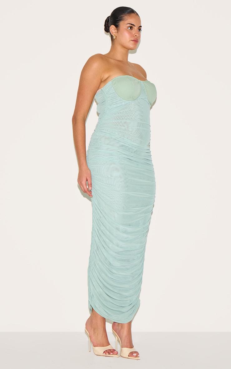 Get ready to shine in this plus sage mesh ruched cup detail maxi dress. Crafted with care from sage green mesh, this dress has intricate cup detailing, flattering ruching and a classic maxi fit. Style it with your favorite neutral heels, minimalistic gold jewelry and a structural shoulder bag for a look we're loving. (Based on sample size US 12)Model wears size UK 16/ EU 44/ AUS 16/ US 12Model Height - 5ft 9inchp]:!mb-4inch>Brand: PrettyLittleThingCategory: DressesProduct type: Bodycon DressColor: SageMaterial: MeshDesign: PlainNeckline: BandeauSleeves: SleevelessOccasion: Evening