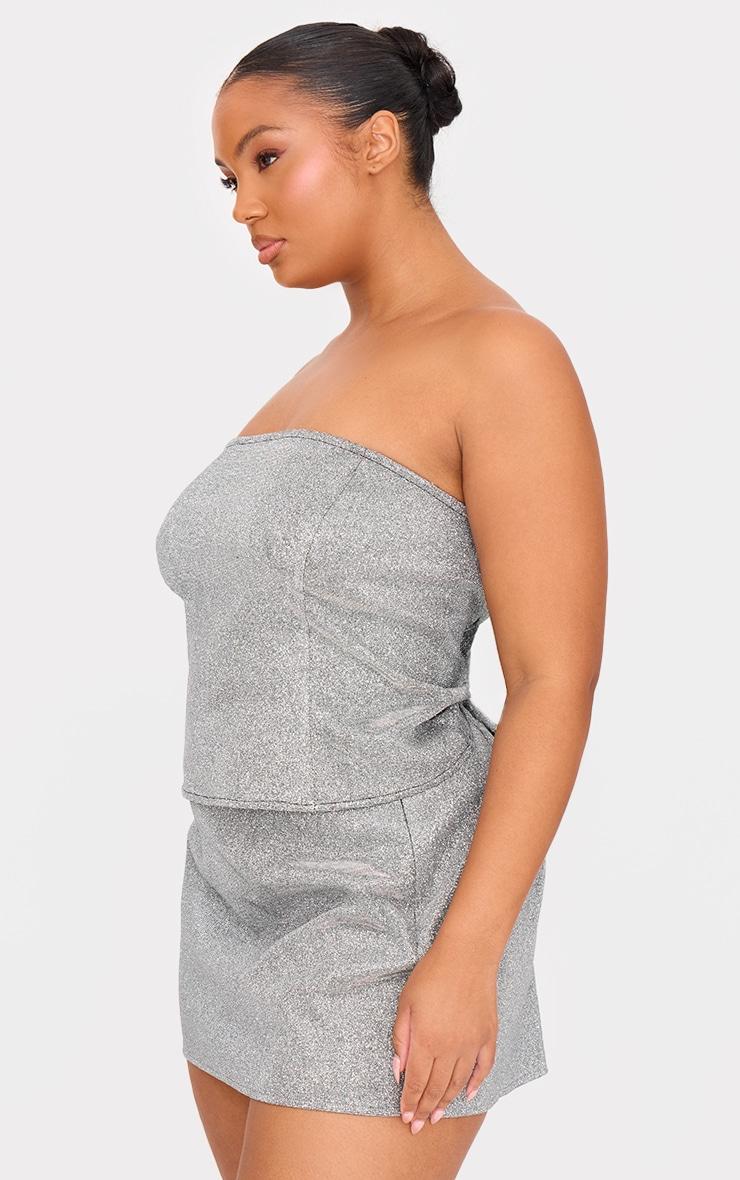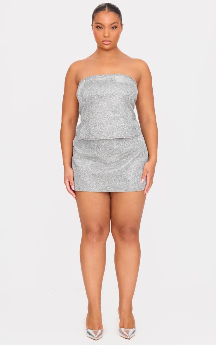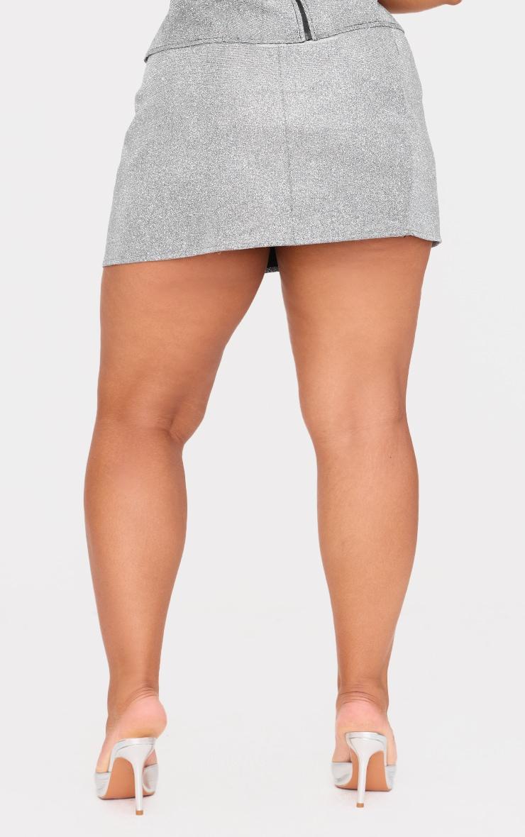 Make heads turn in this plus silver glitter detail mini skirt. Made from a silver hue material with glitter detailing and a flattering mini fit, how can you resist? Style this mini skirt with the matching top and just add heels for a weekend-worthy look that won't be forgotten. Length approx 48cm/19inch (Based on a sample size UK 16) Model wears size UK 16/ EU 44/ AUS 16/ US 12Model Height - 5ft 6inchp]:!mb-0inch>Category: BottomsProduct type: Mini SkirtColor: SilverMaterial: Tailored WovenOccasion: Evening