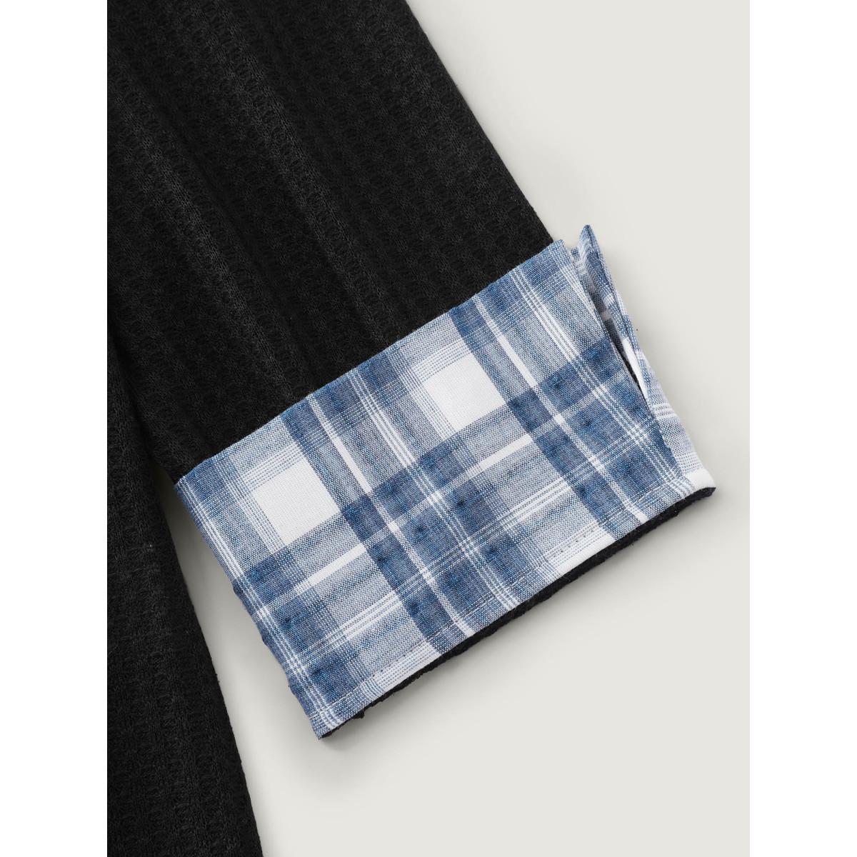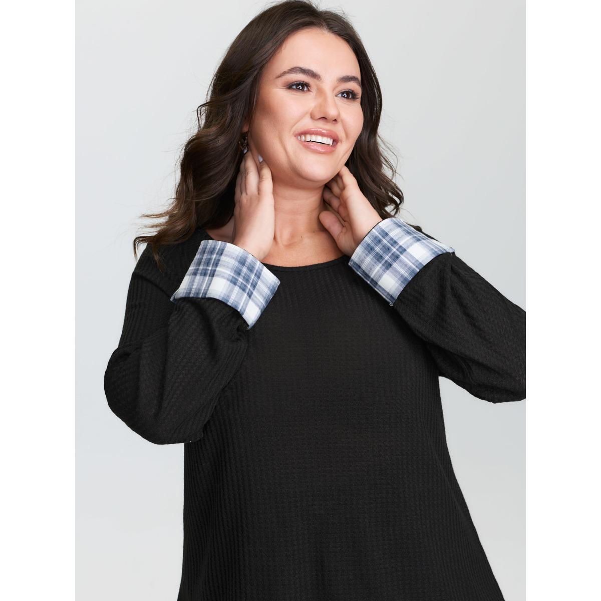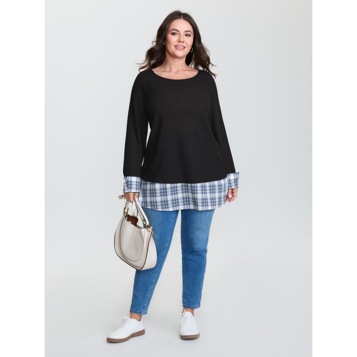 Plus Size 2-in-1 Checkered T-Shirt Black Women Leisure Texture Round Neck Casual T-shirts BloomChic 18-20/2X