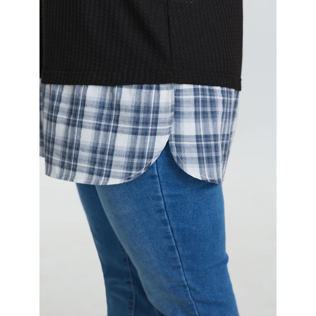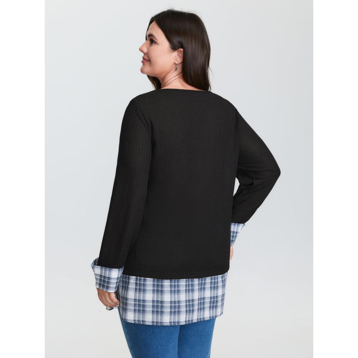 Plus Size 2-in-1 Checkered T-Shirt Black Women Leisure Texture Round Neck Casual T-shirts BloomChic 18-20/2X Product Image