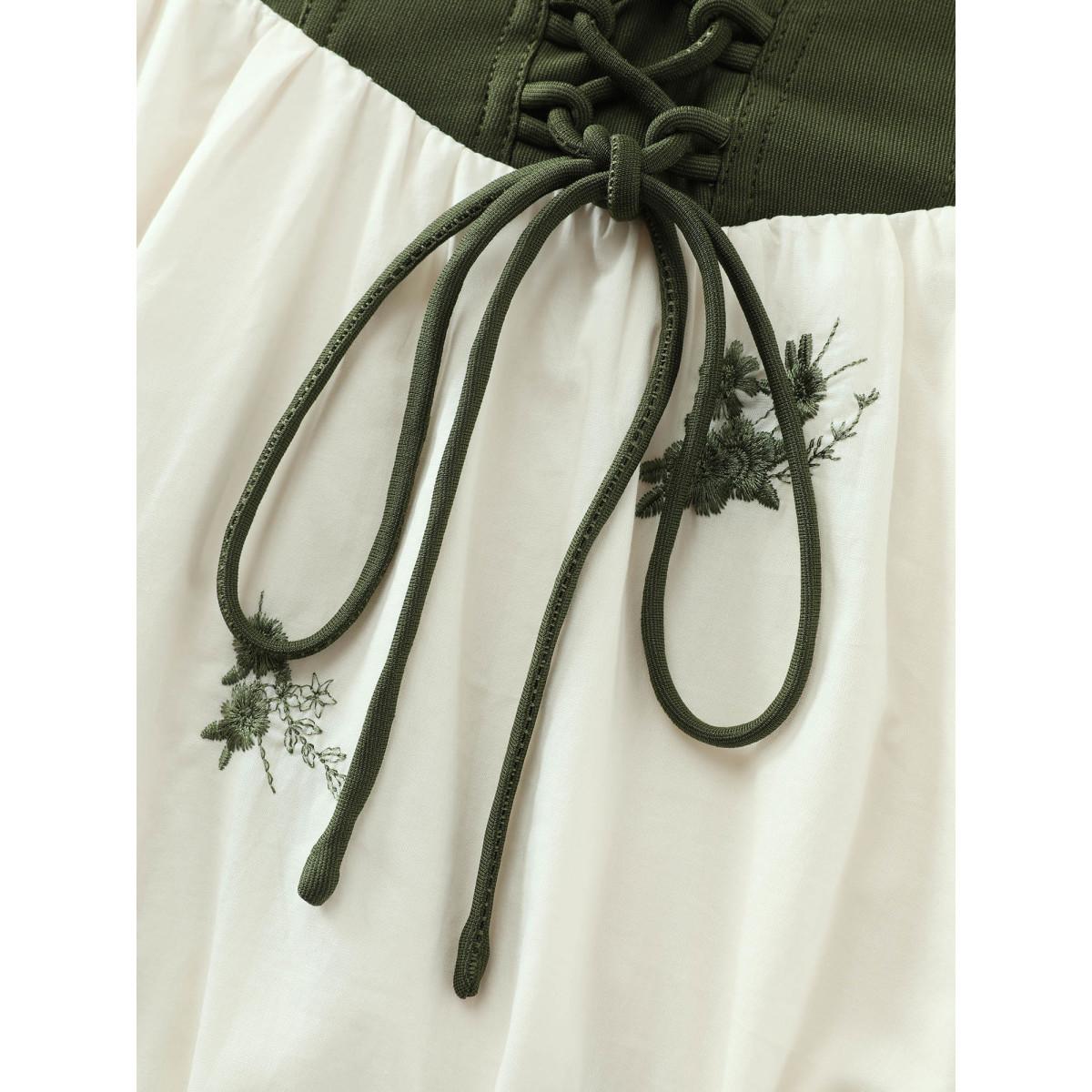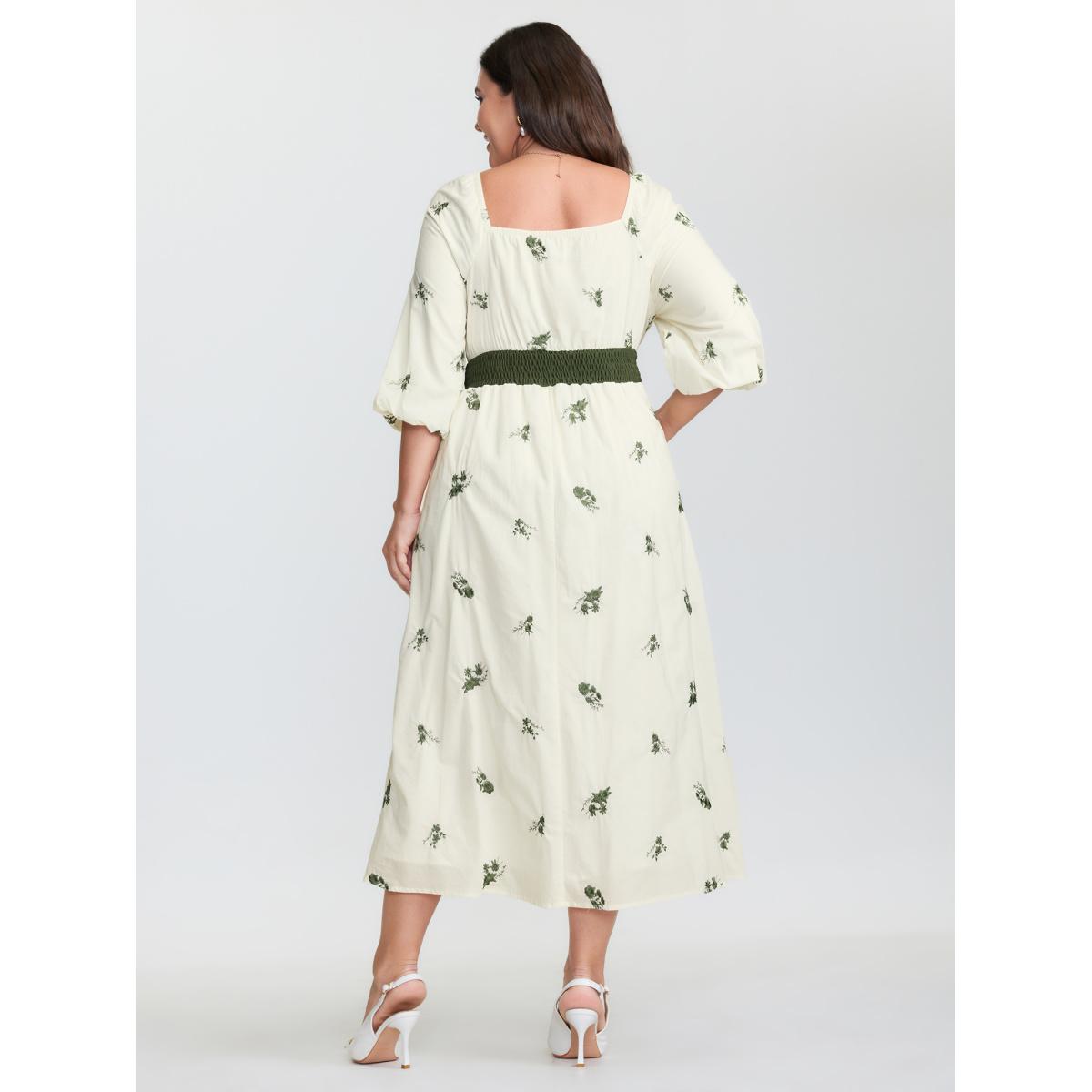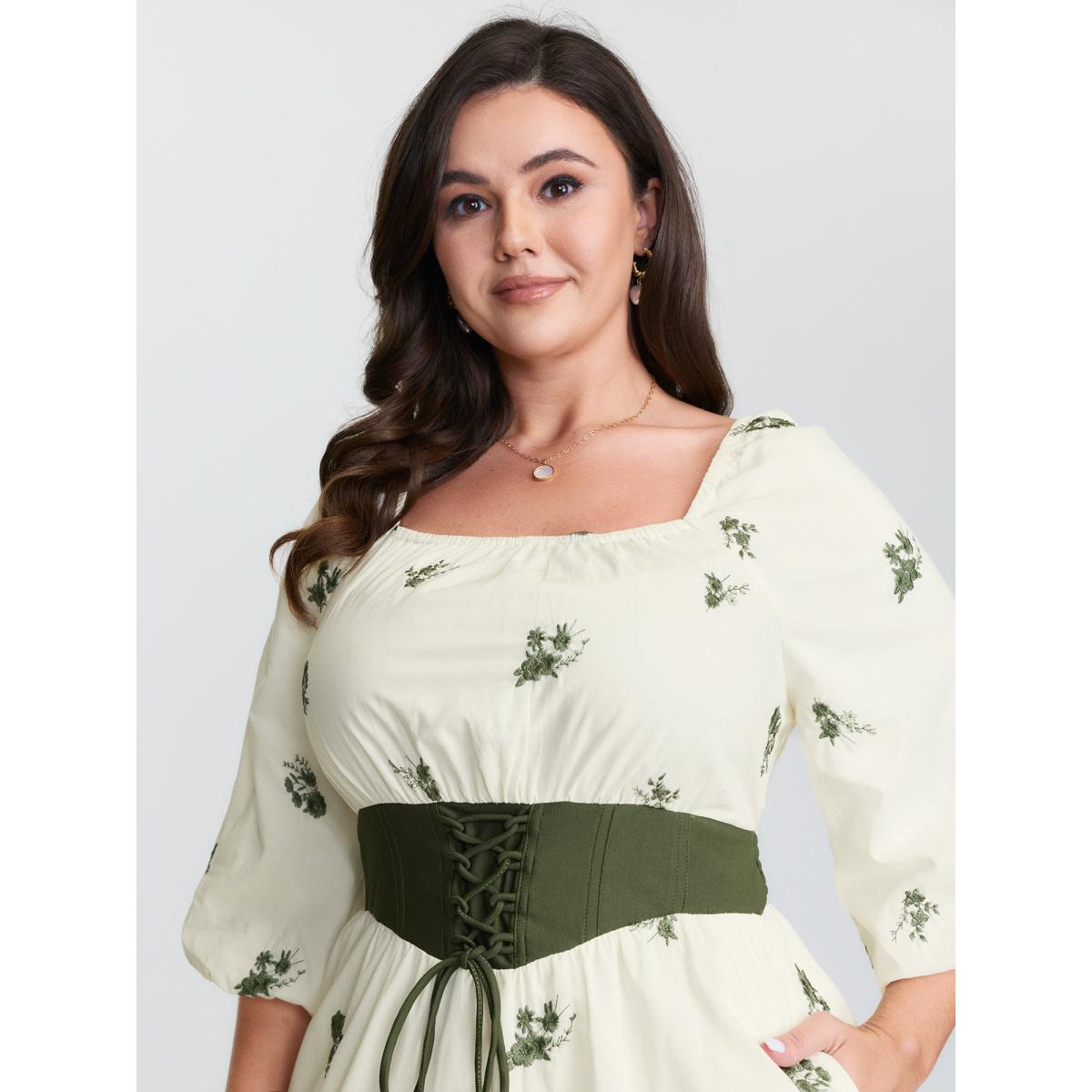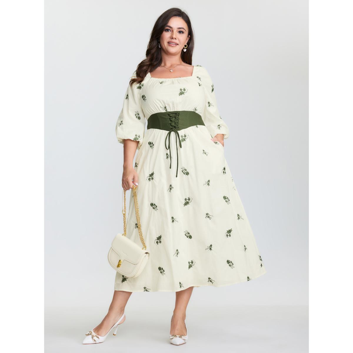 Plus Size Cotton Lace collar Lantern Sleeve Midi Dress Originalwhite Women Elegant Embroidered Lace collar Short sleeve Curvy BloomChic 28/5X