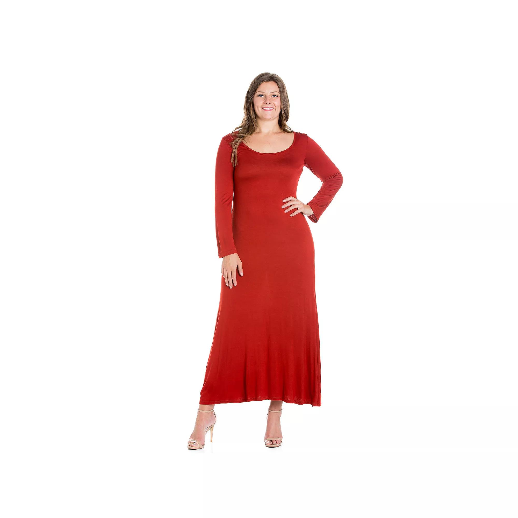 A chic rounded scoop neckline, long sleeves and a classic A-line cut make this juniors maxi dress from 24seven Comfort Apparel a superb addition to any wardrobe. A chic rounded scoop neckline, long sleeves and a classic A-line cut make this womens maxi dress from 24seven Comfort Apparel a superb addition to any wardrobe. Scoopneck Long sleeves No pockets Unlined Jersey constructionFIT & SIZING Maxi silhouette 53.5-in. approximate lengthFABRIC & CARE Polyester, spandex Machine wash Imported Size: 3X. Color: Orange. Gender: female. Age Group: adult. Pattern: Solid.