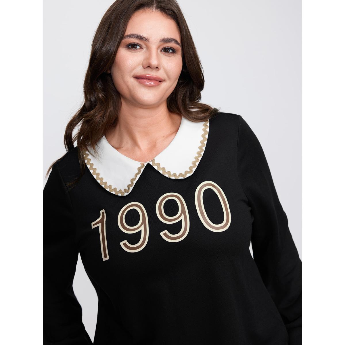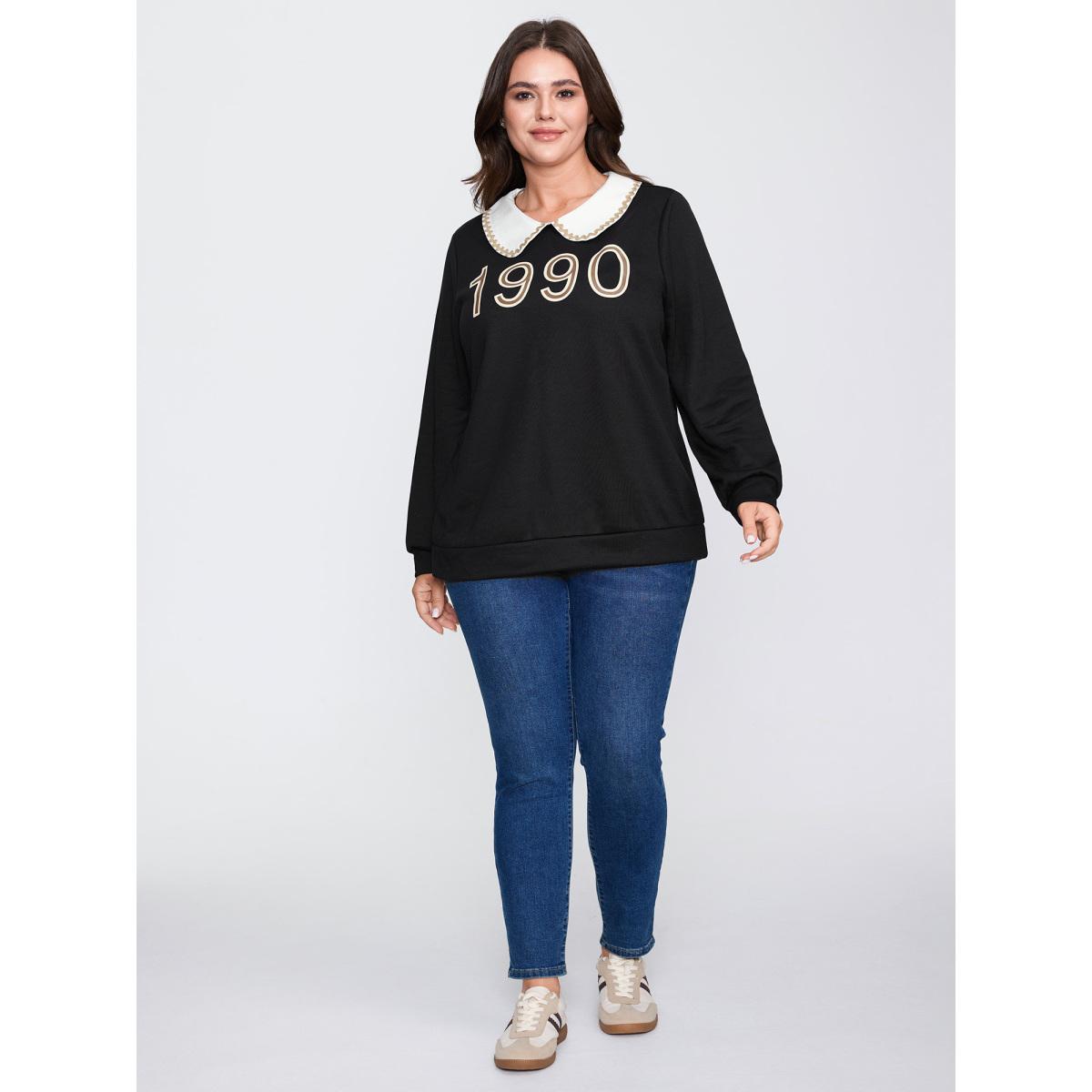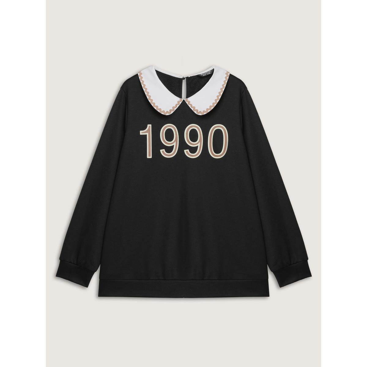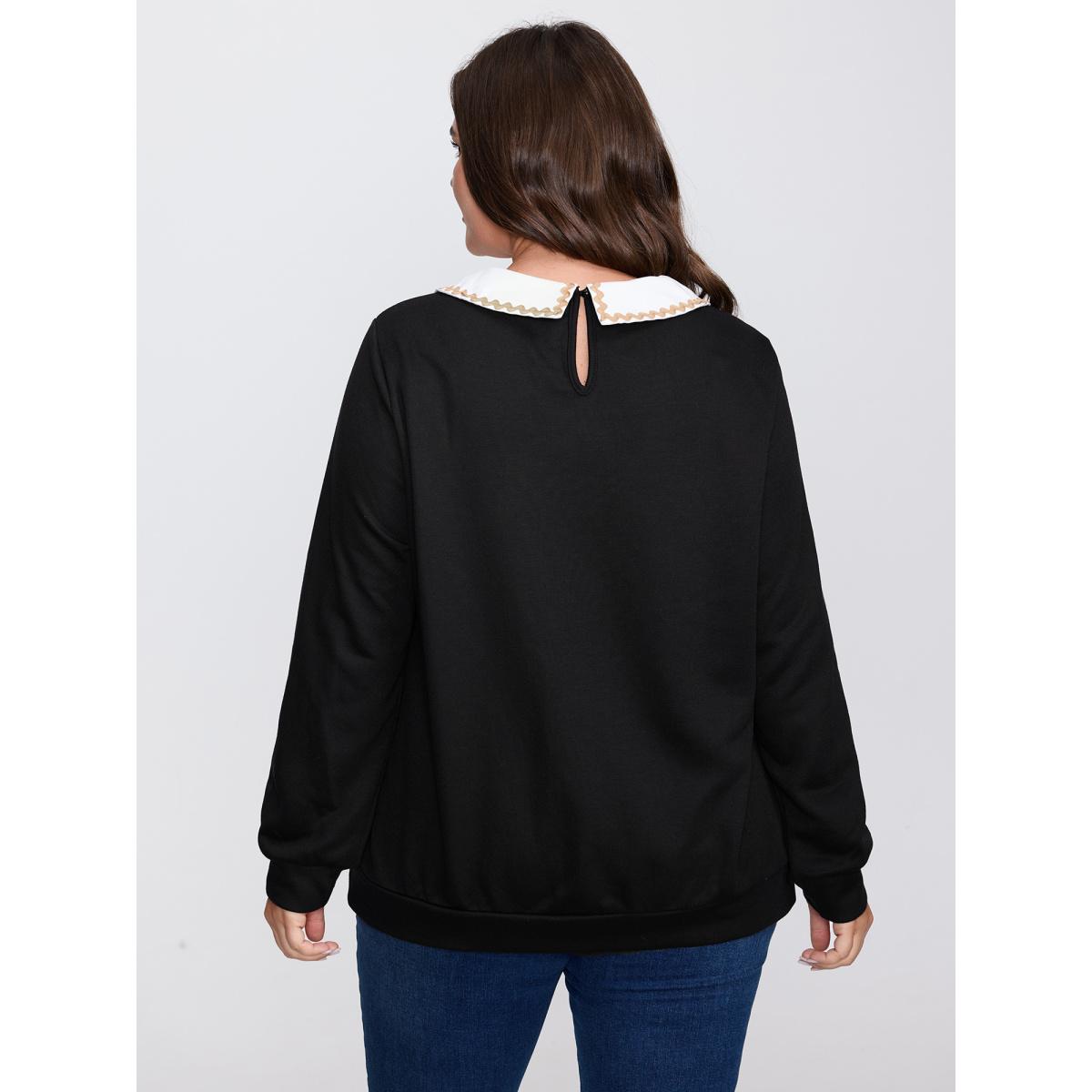 Plus Size 90's Dream Color Contrast Sweatshirt Women Black Leisure Contrast Peter Pan collar Casual Sweatshirts BloomChic 18-20/2X
