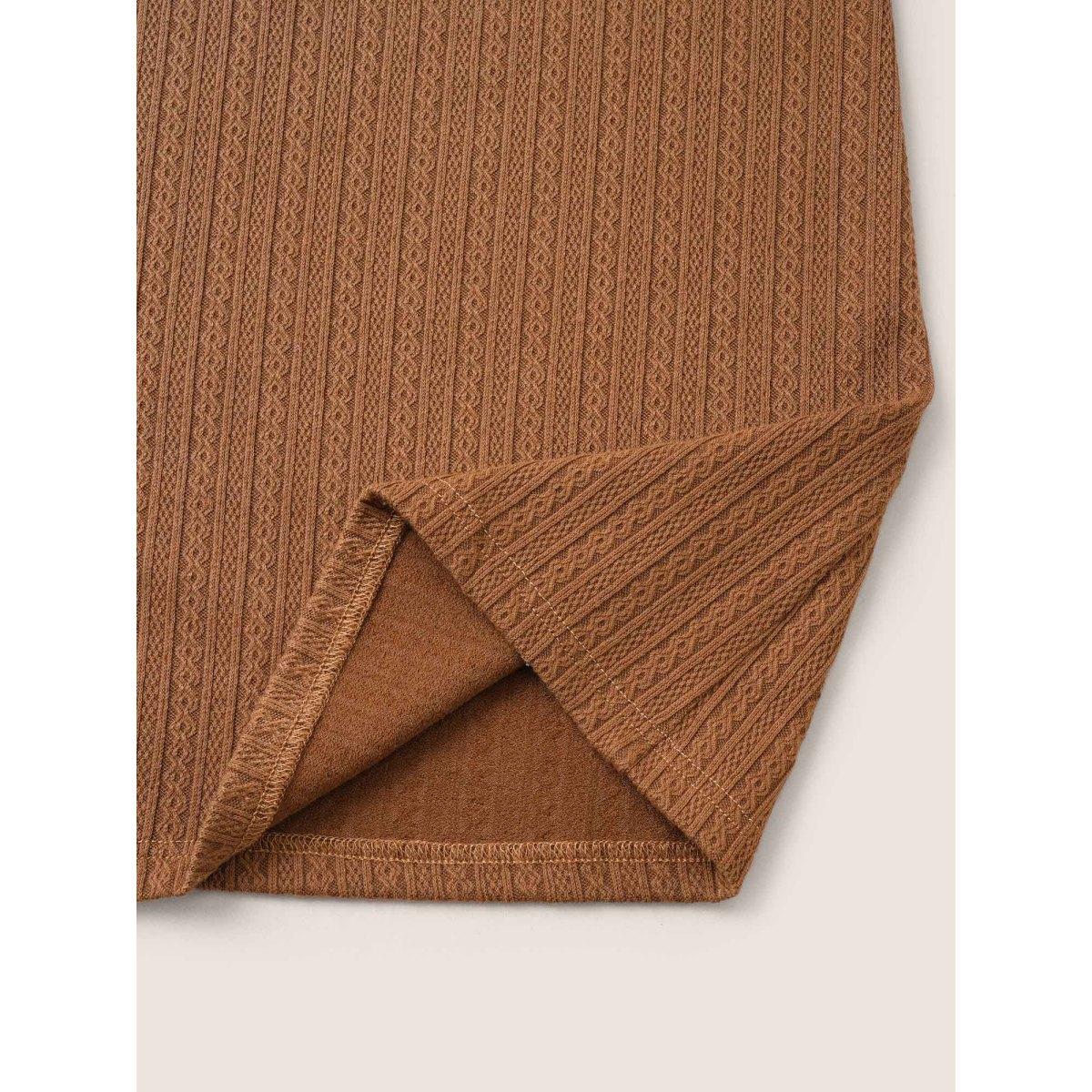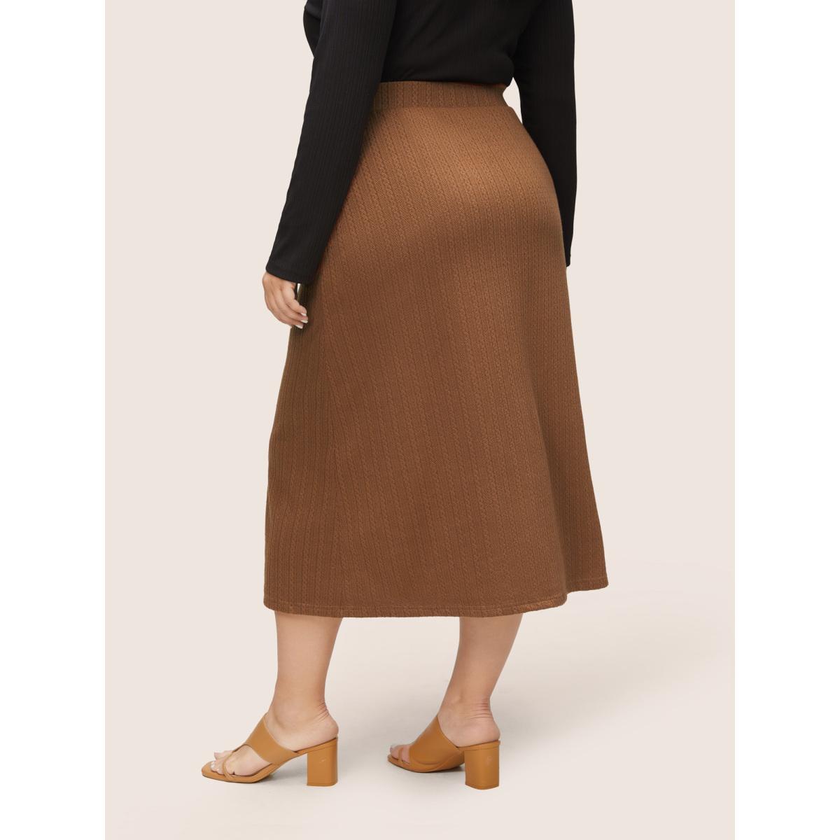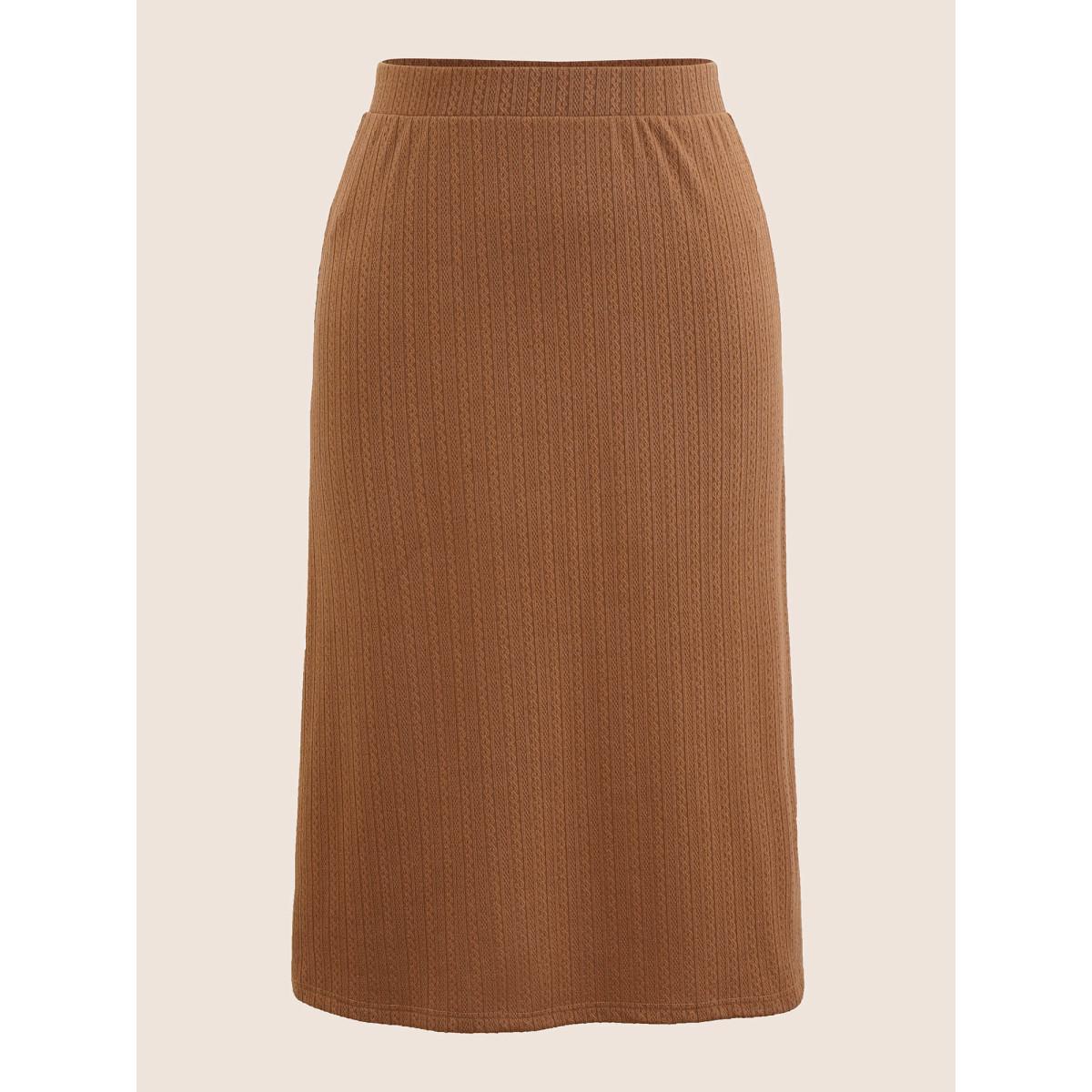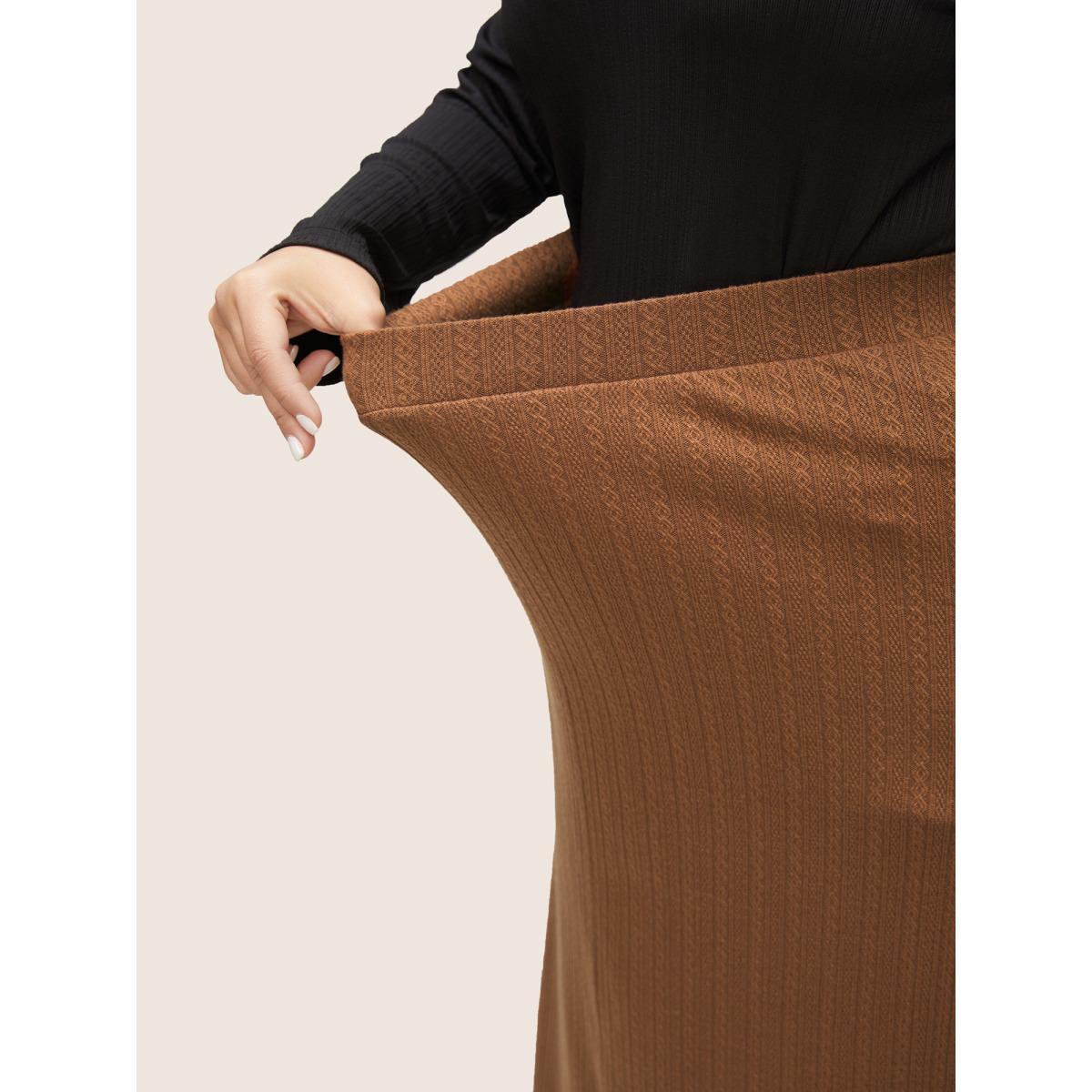 Plus Size A Line Elastic Waist Knit Jacquard Skirt Women Tan Workwear Essentials Texture Low stretch Office Skirts BloomChic 30/6X