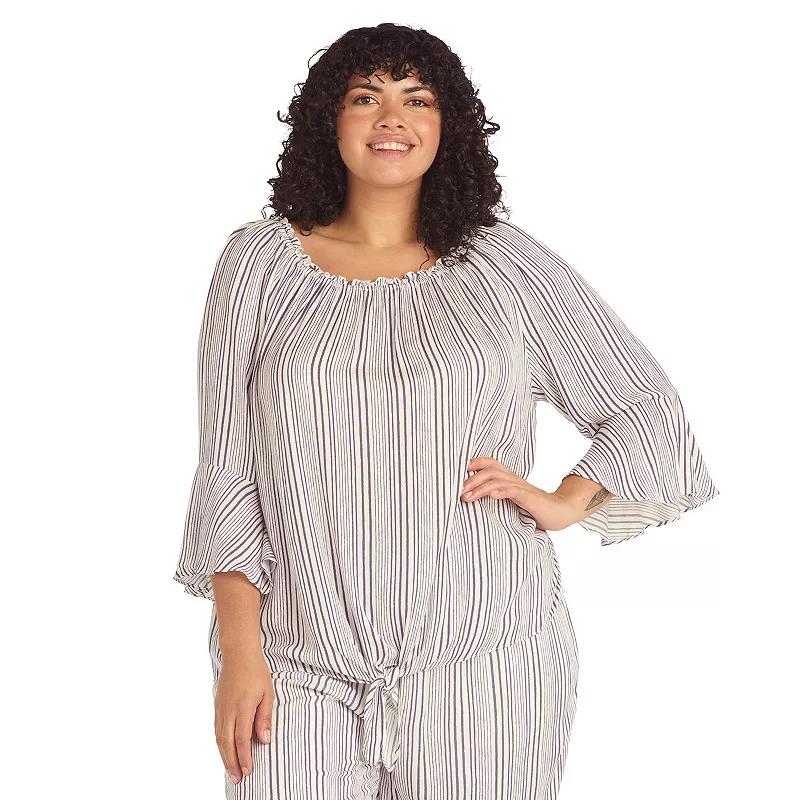 Find your perfect style with this women's top from AB Studio.Click on this WOMEN'S GUIDE to find the perfect fit and more!Find your perfect style with this women's top from AB Studio. Click on this WOMEN'S GUIDE to find the perfect fit and more!FEATURES Soft crinkle woven fabric Off-the-shoulder neckline No closure - pullover styling Long bell sleeves Unlined High-low hemFIT & SIZING Loose Fit 27-in. length from shoulder to hemFABRIC & CARE Rayon Machine wash delicate and line dry Imported Size: 0X. Color: Denim Ow Stripe. Gender: female. Age Group: adult.
