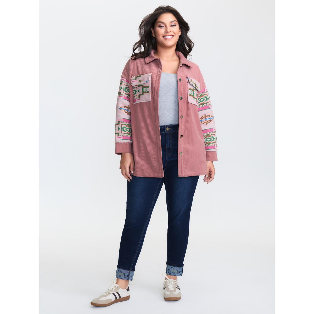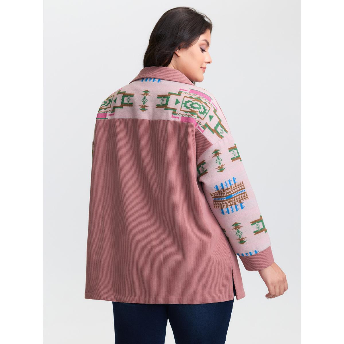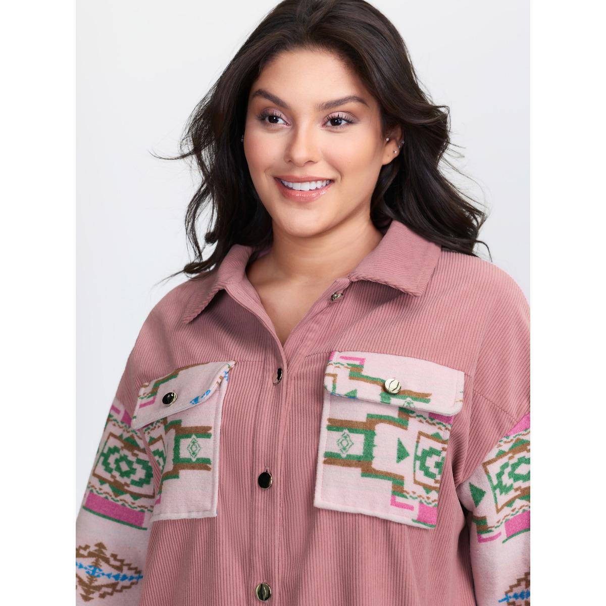 Plus Size Abstract Print Color Contrast Button-Down Shirt Women Beanpastepowder Leisure Texture Loose Ladies Casual Winter Coats BloomChic 30/6X