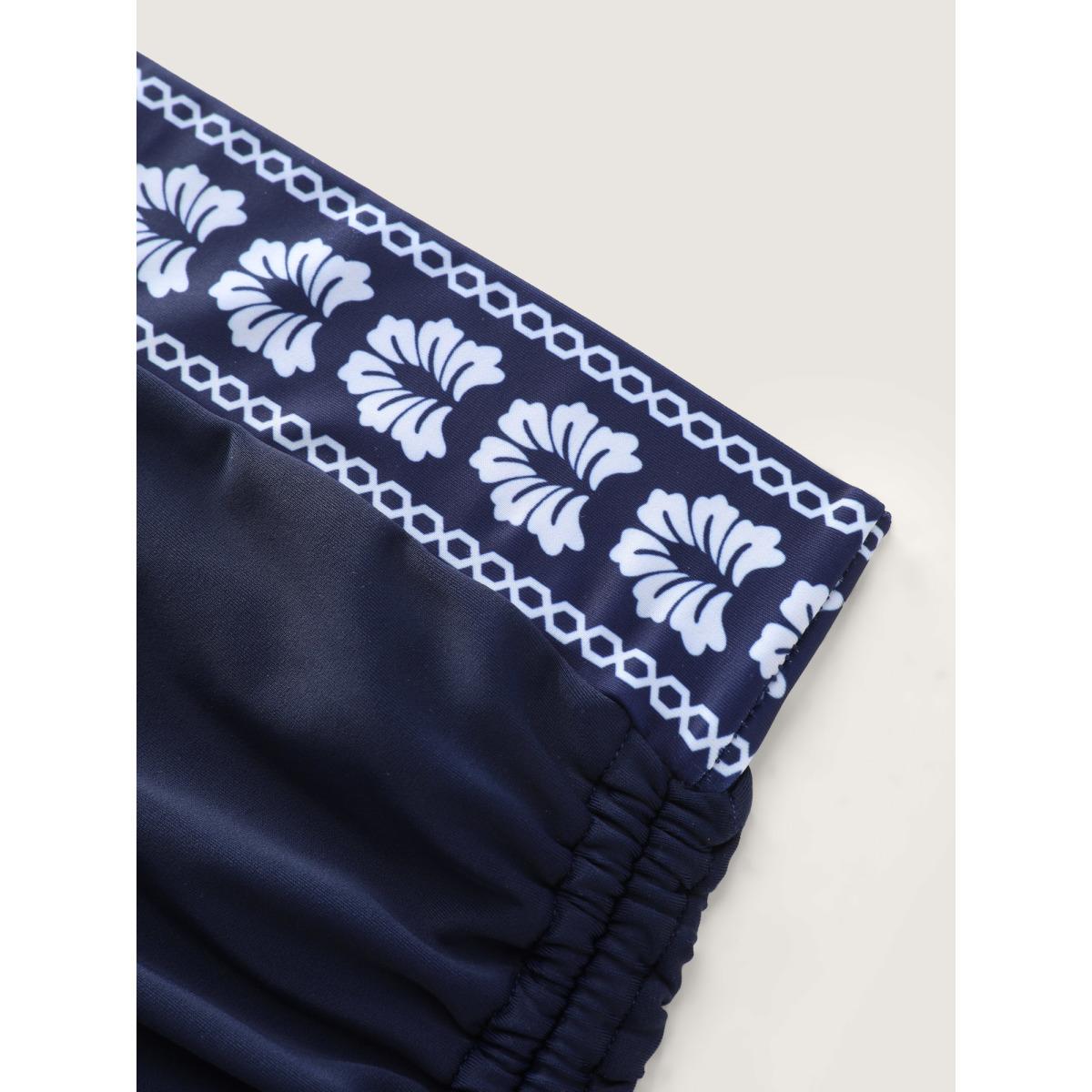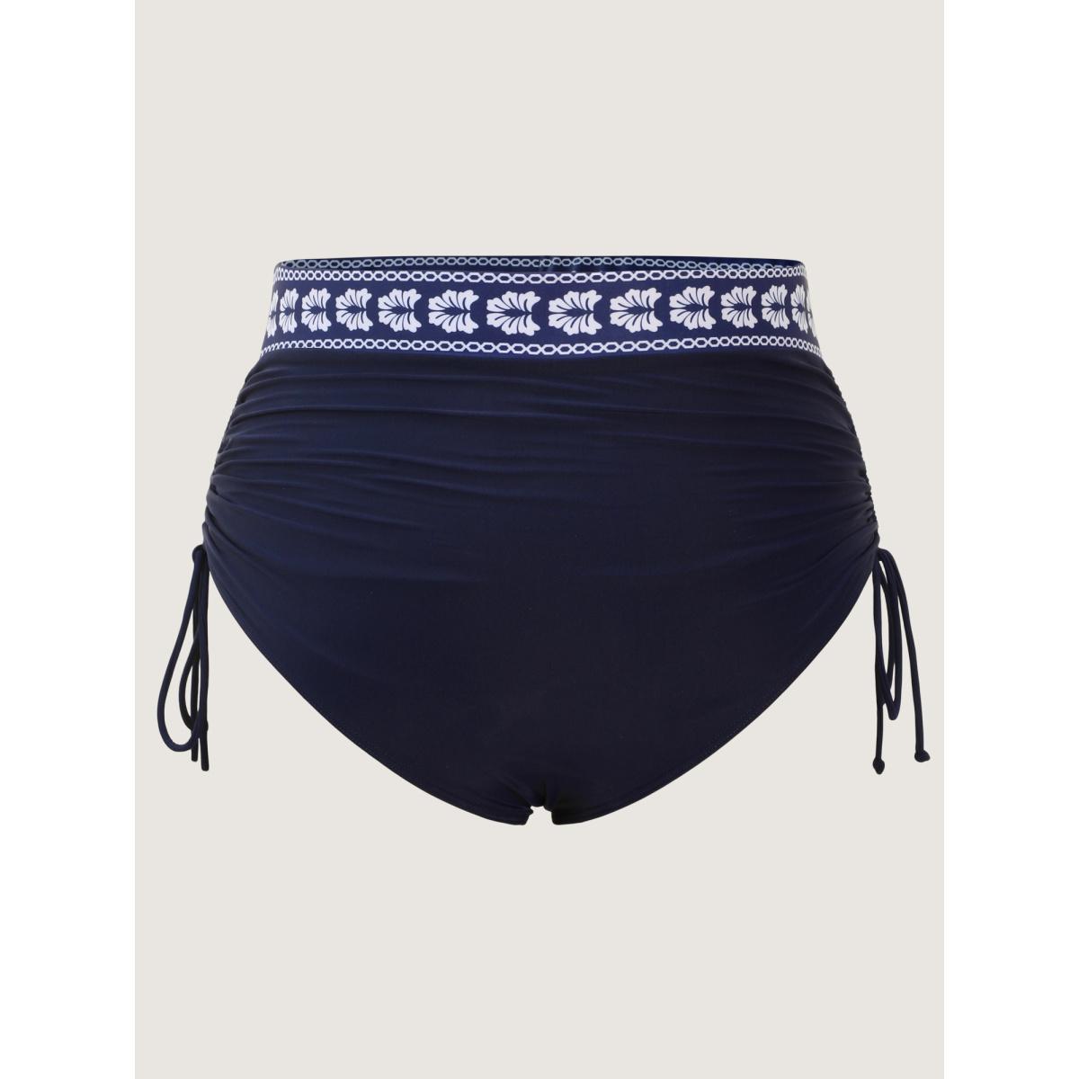 Plus Size Adjustable Side Drawstring Printed Swim Bottoms Women's Swimwear Indigo Resort Drawstring High stretch Skinny High Rise Curve Swim Bottoms BloomChic 14-16/1X