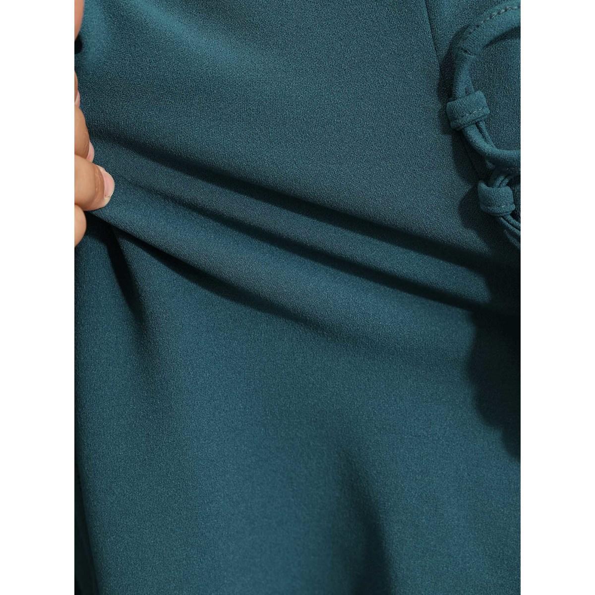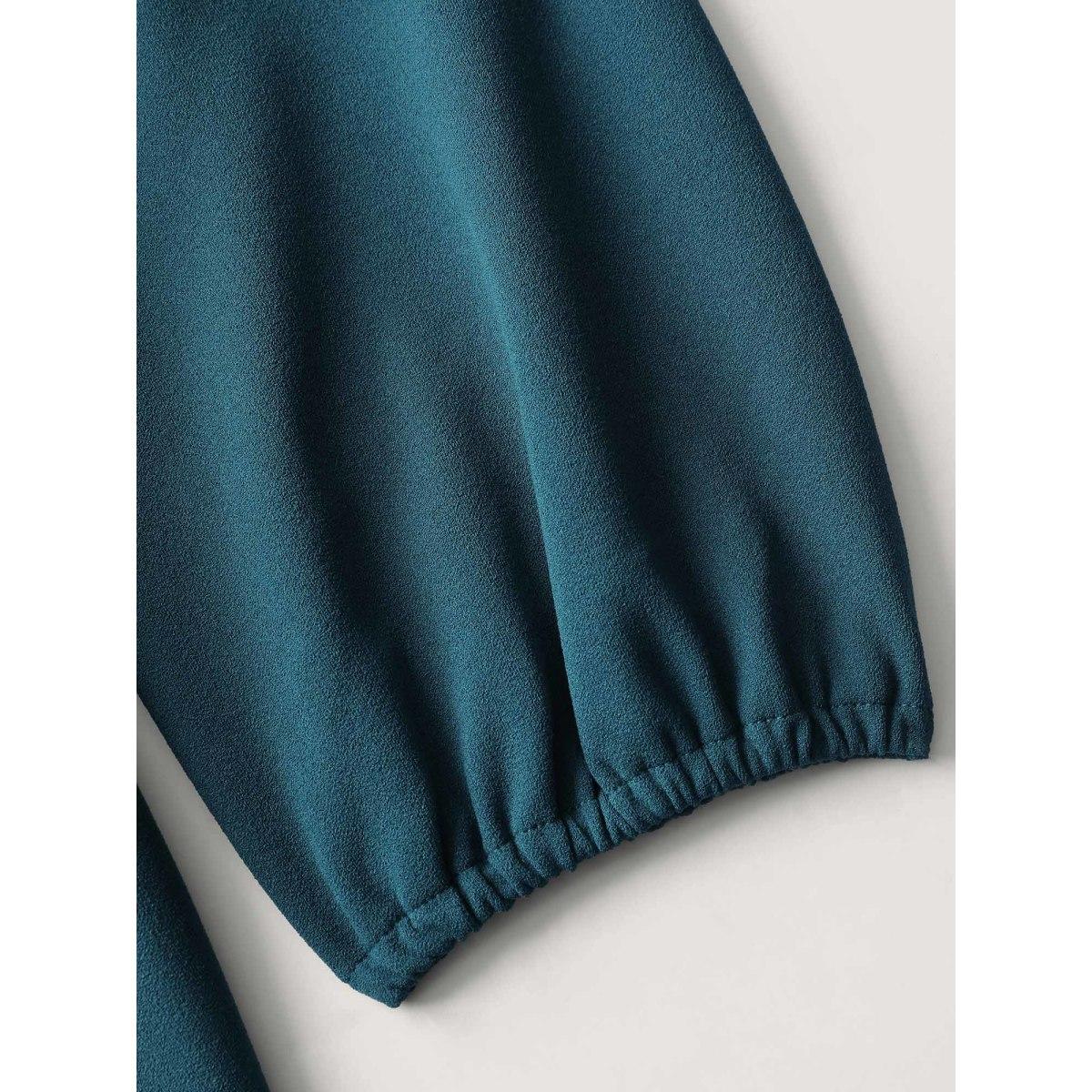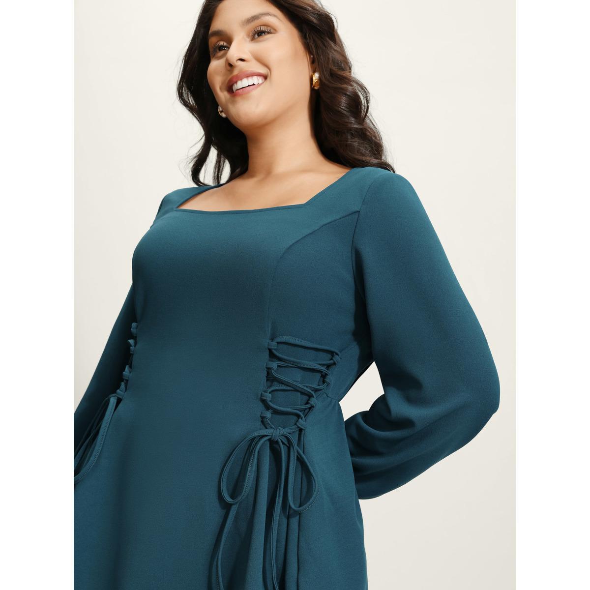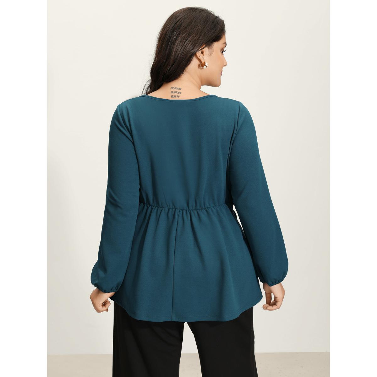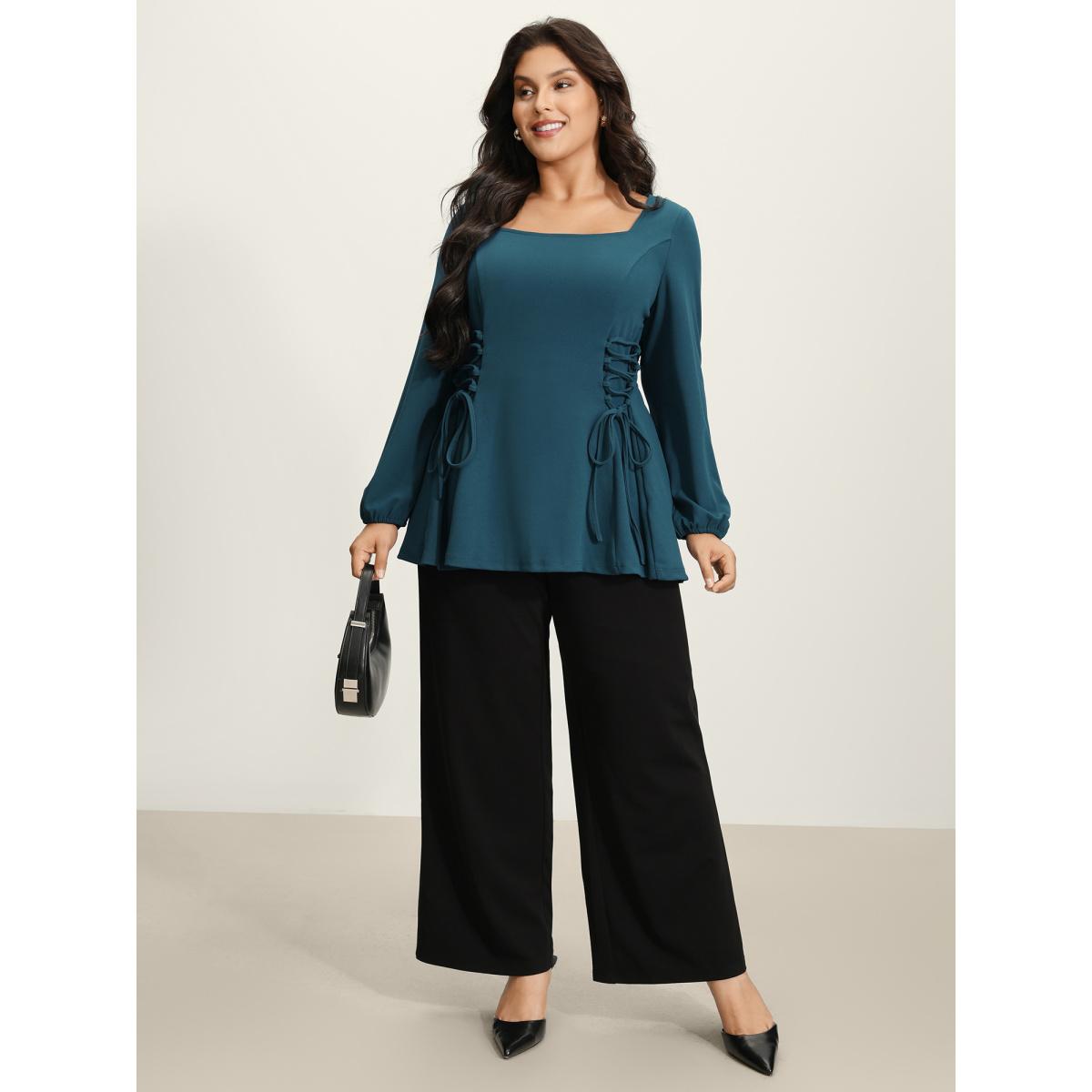 Plus Size Aegean Cinched-Waist Cross-Tie Stretchy Blouse Women Office Extra Long Sleeve Square Neck Office Blouses BloomChic 14-16/1X