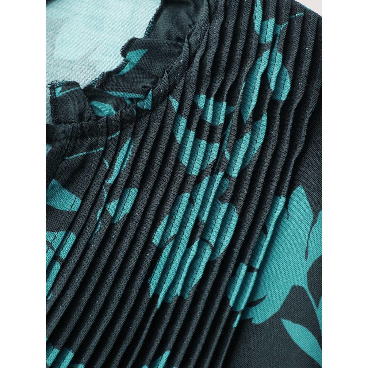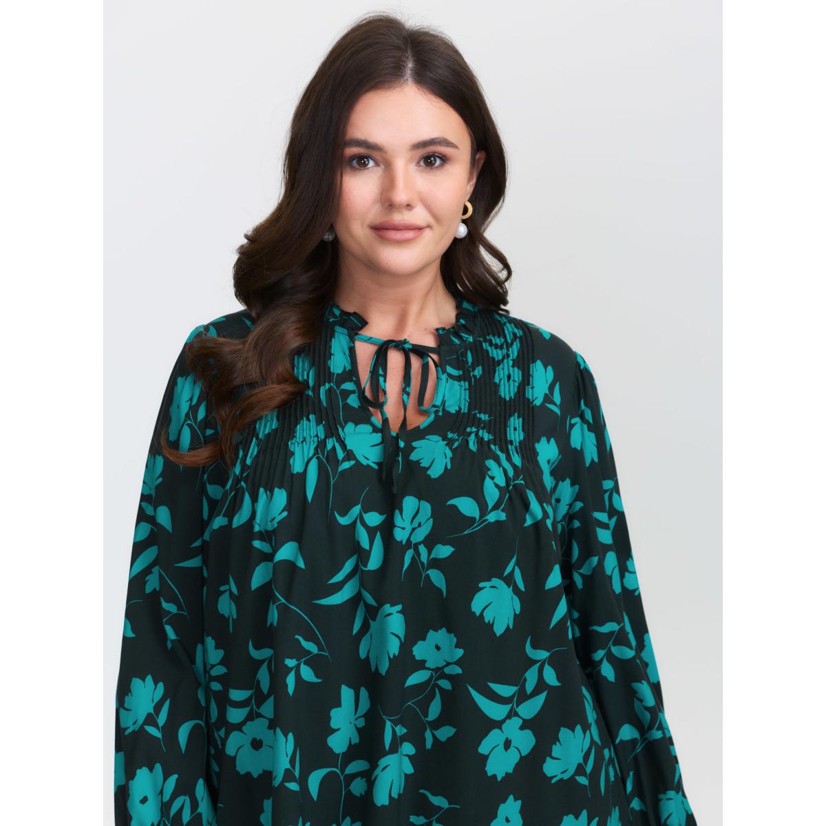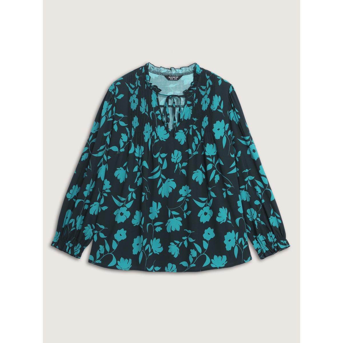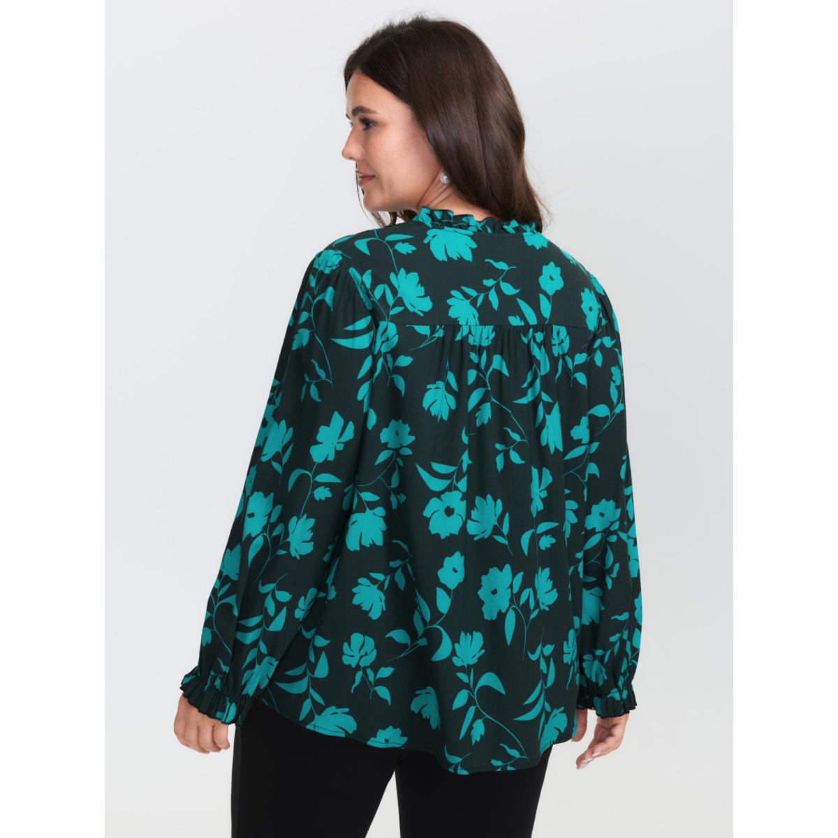 Plus Size Aegean Flower Silhouette Neck-Tie Blouse Women Timeless Extra Long Sleeve Flat collar with V-notch Elegant Blouses BloomChic 26/4X