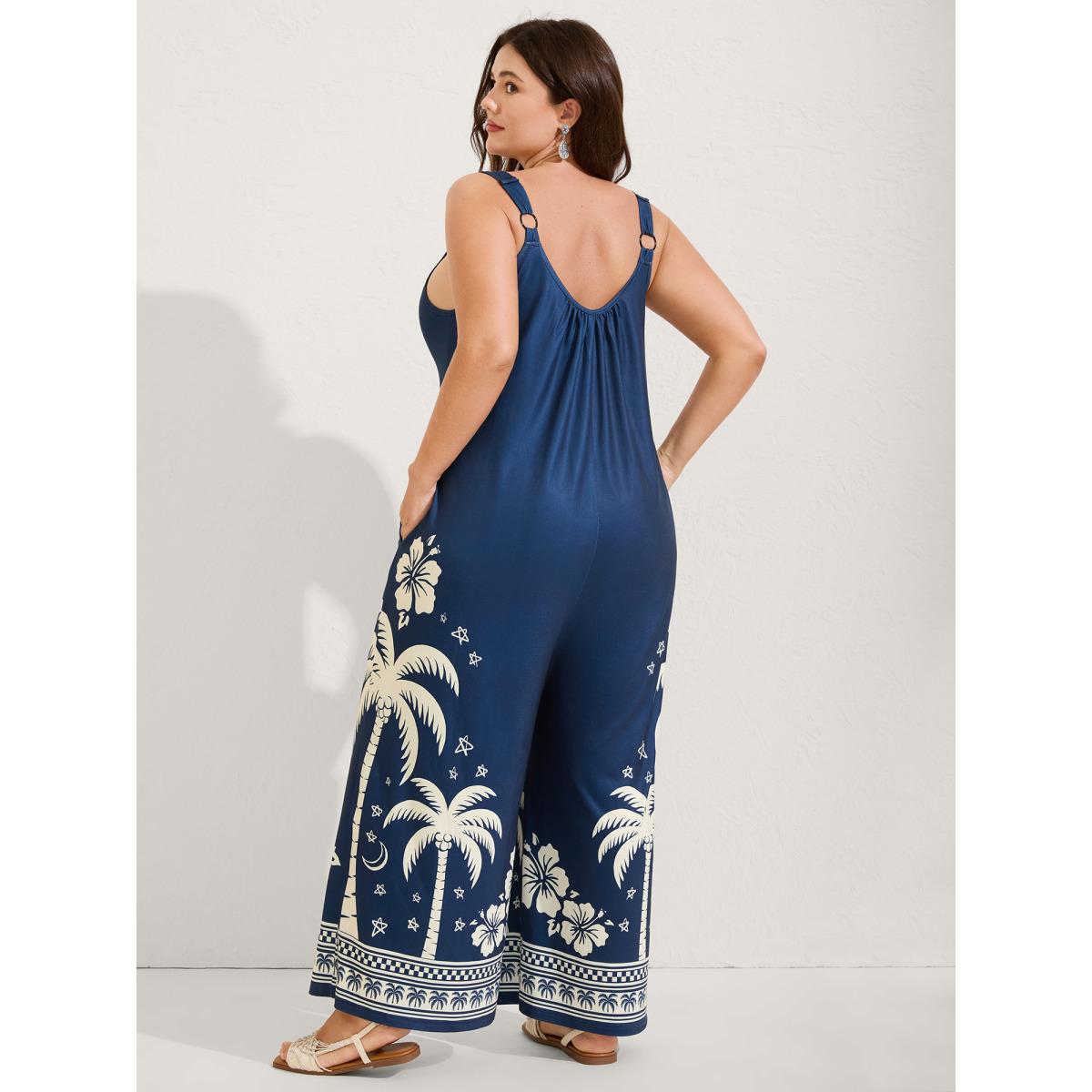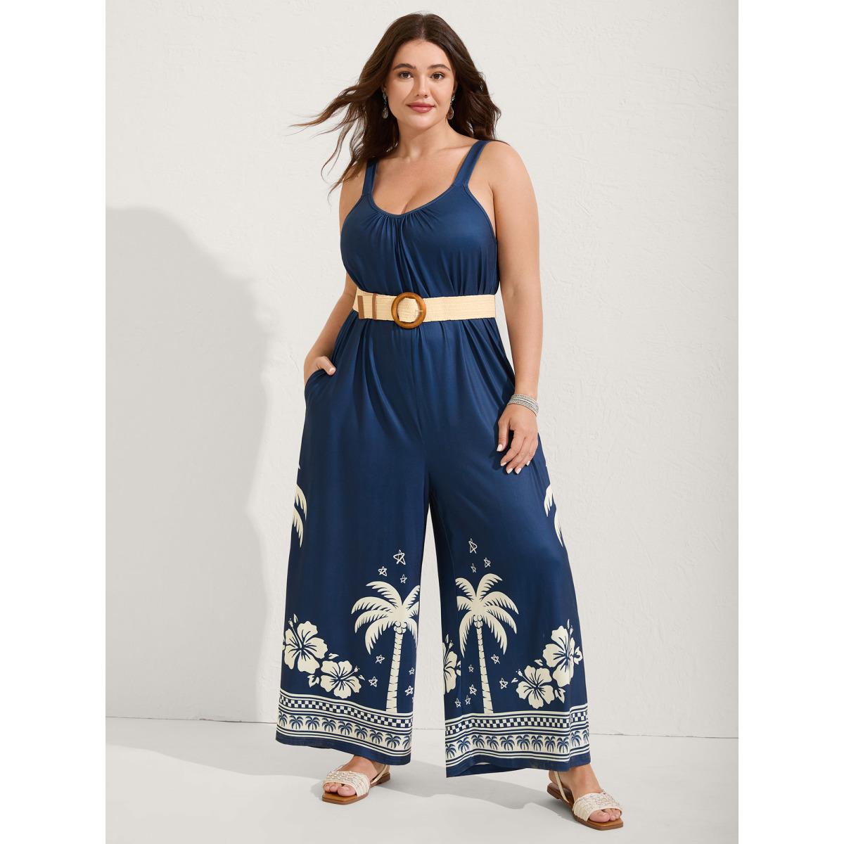 Plus Size Aegean Supersoft Tropical Adjustable Solid Jumpsuit Women Resort Sleeveless Non Vacation Loose Jumpsuits BloomChic 18-20/2X