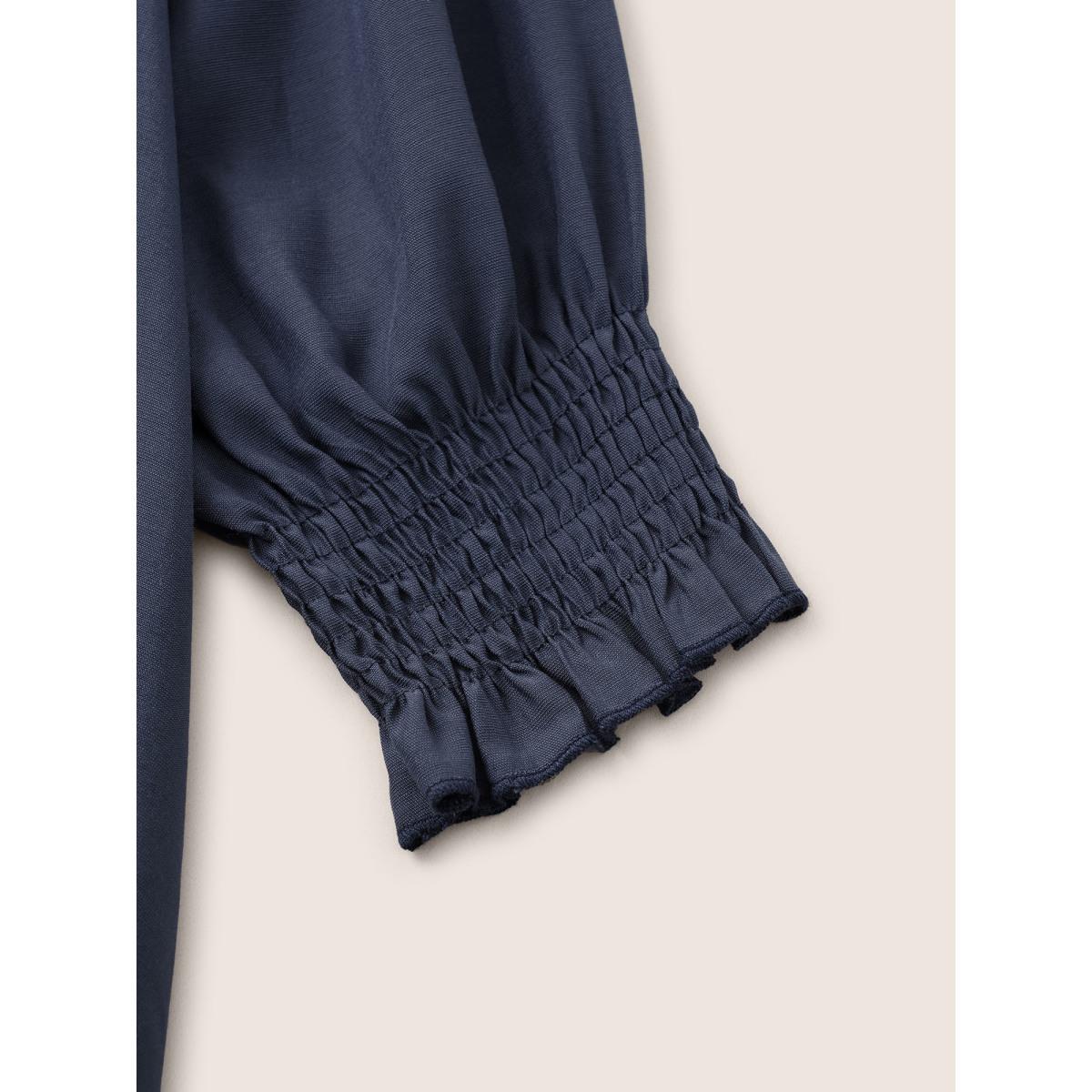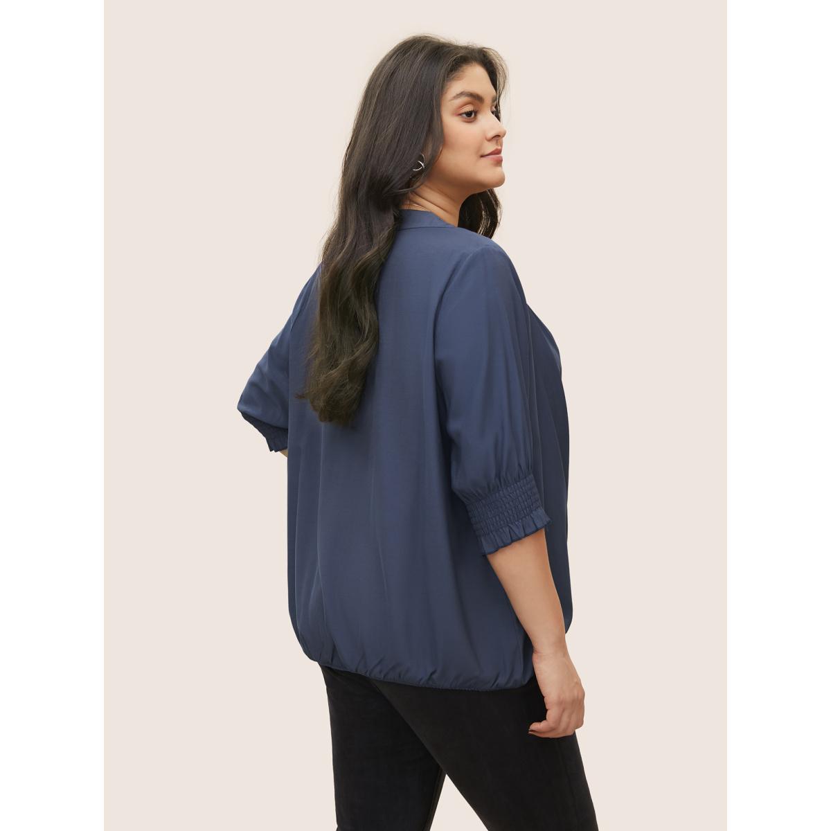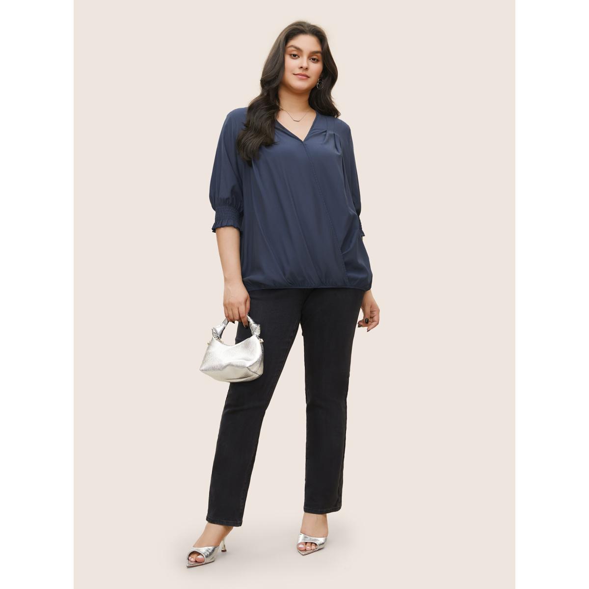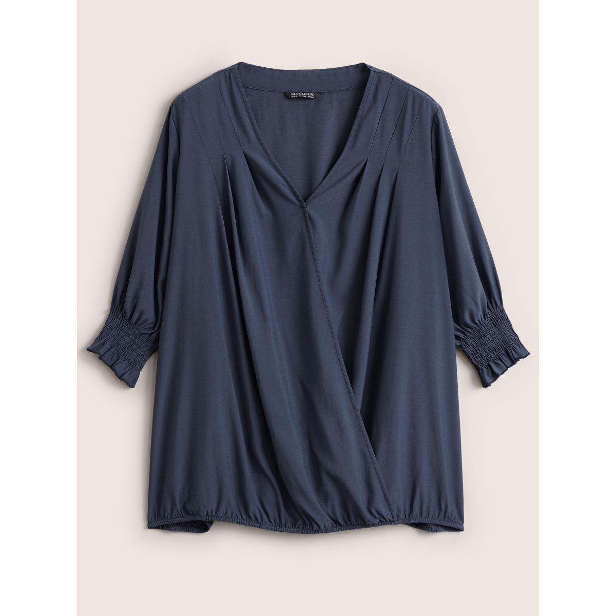 Plus Size Aegean Surplice Neck Shirred Sleeve Pleated Blouse Women Work From Home Half Sleeve Overlap Collar Work Blouses BloomChic 14-16/1X