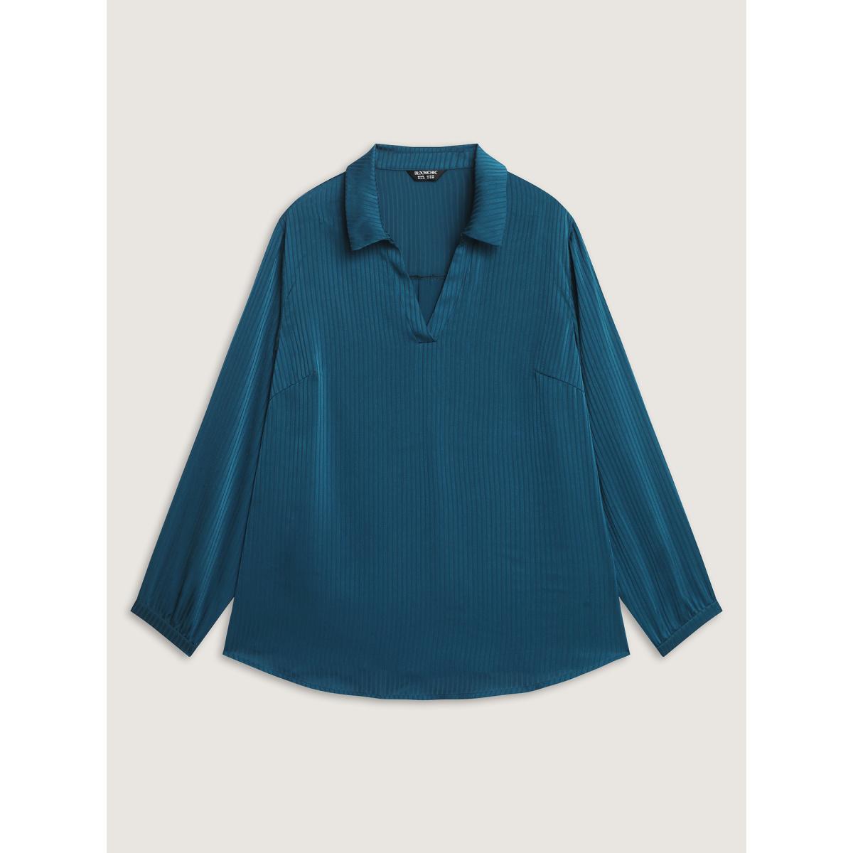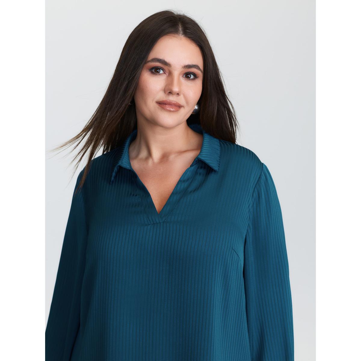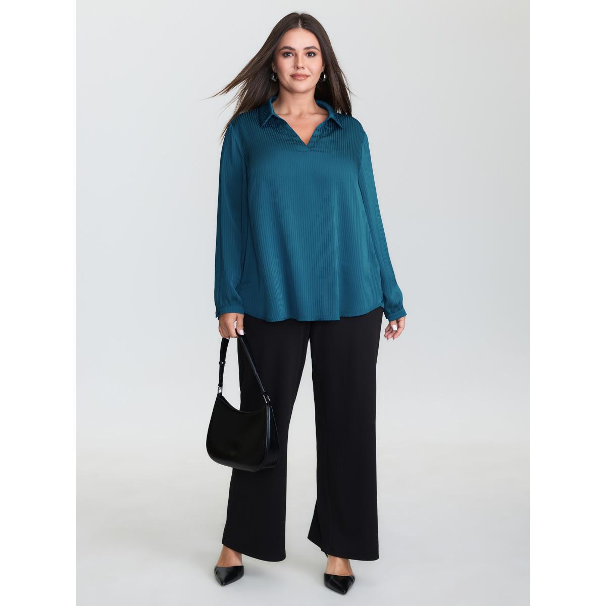 Plus Size Aegean Textured Collar Pleated Blouse Women Office Extra Long Sleeve Shirt collar Office Blouses BloomChic 10/M Product Image