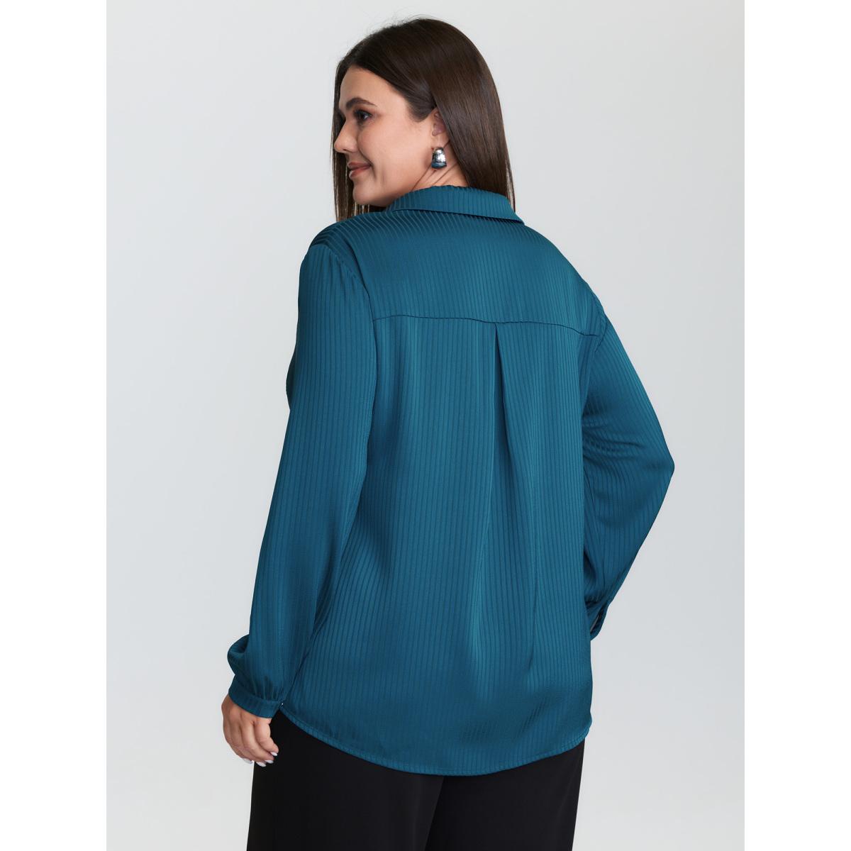 Plus Size Aegean Solid Shirt Collar Plicated Detail Blouse Women Office Long Sleeve Shirt collar Office Blouses BloomChic 10/M