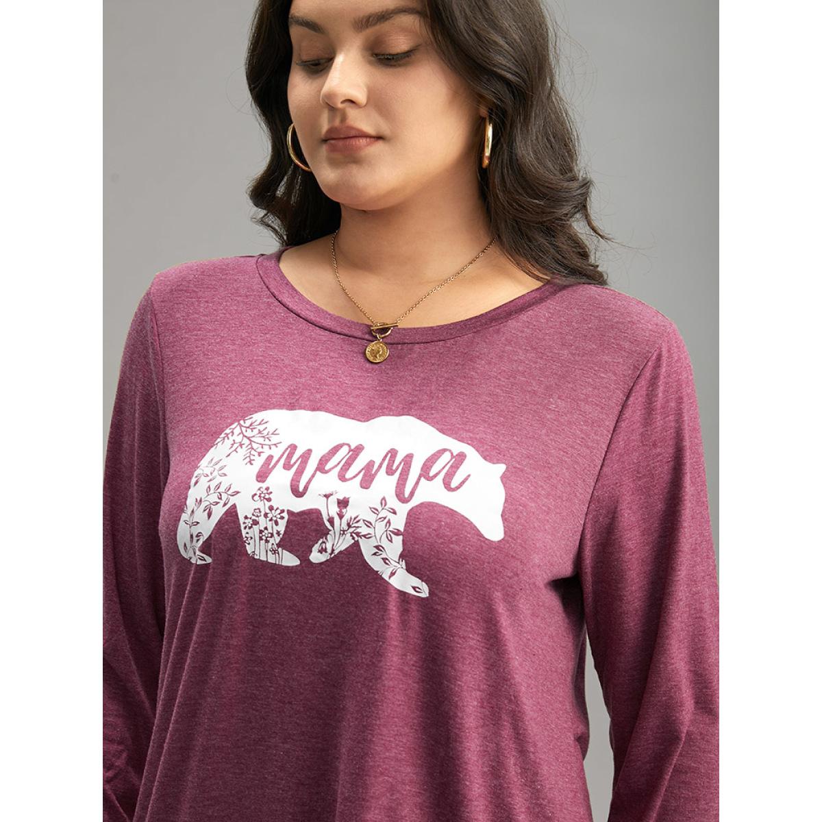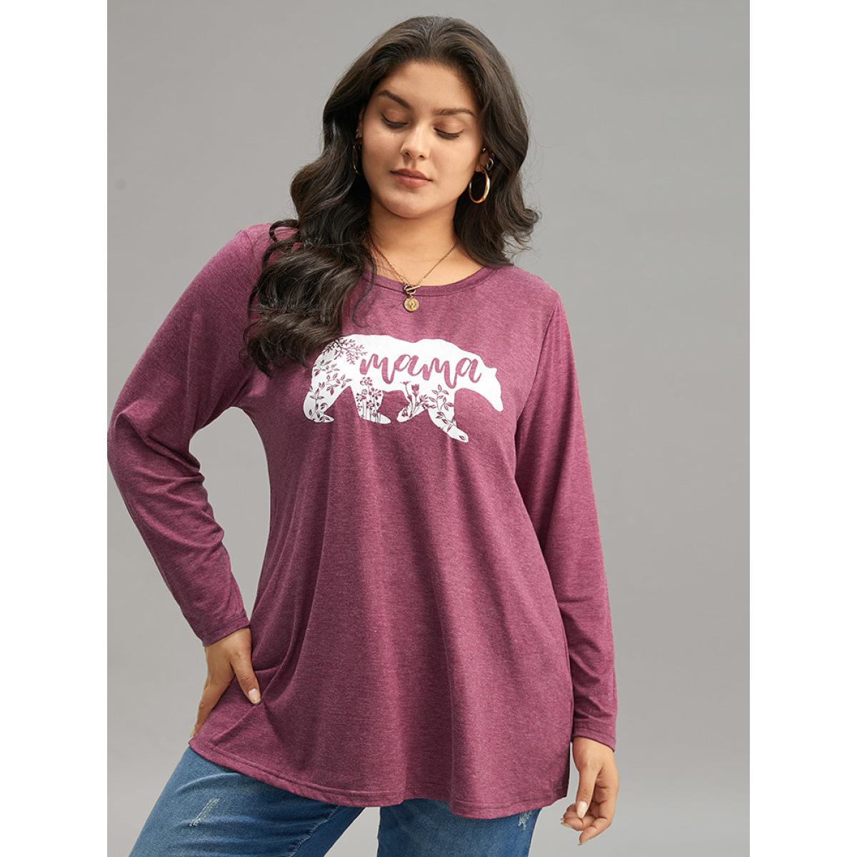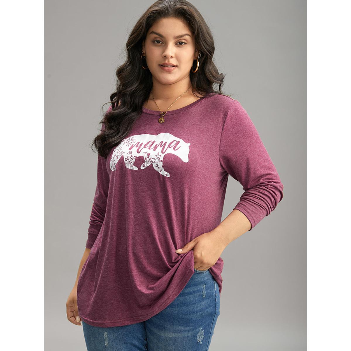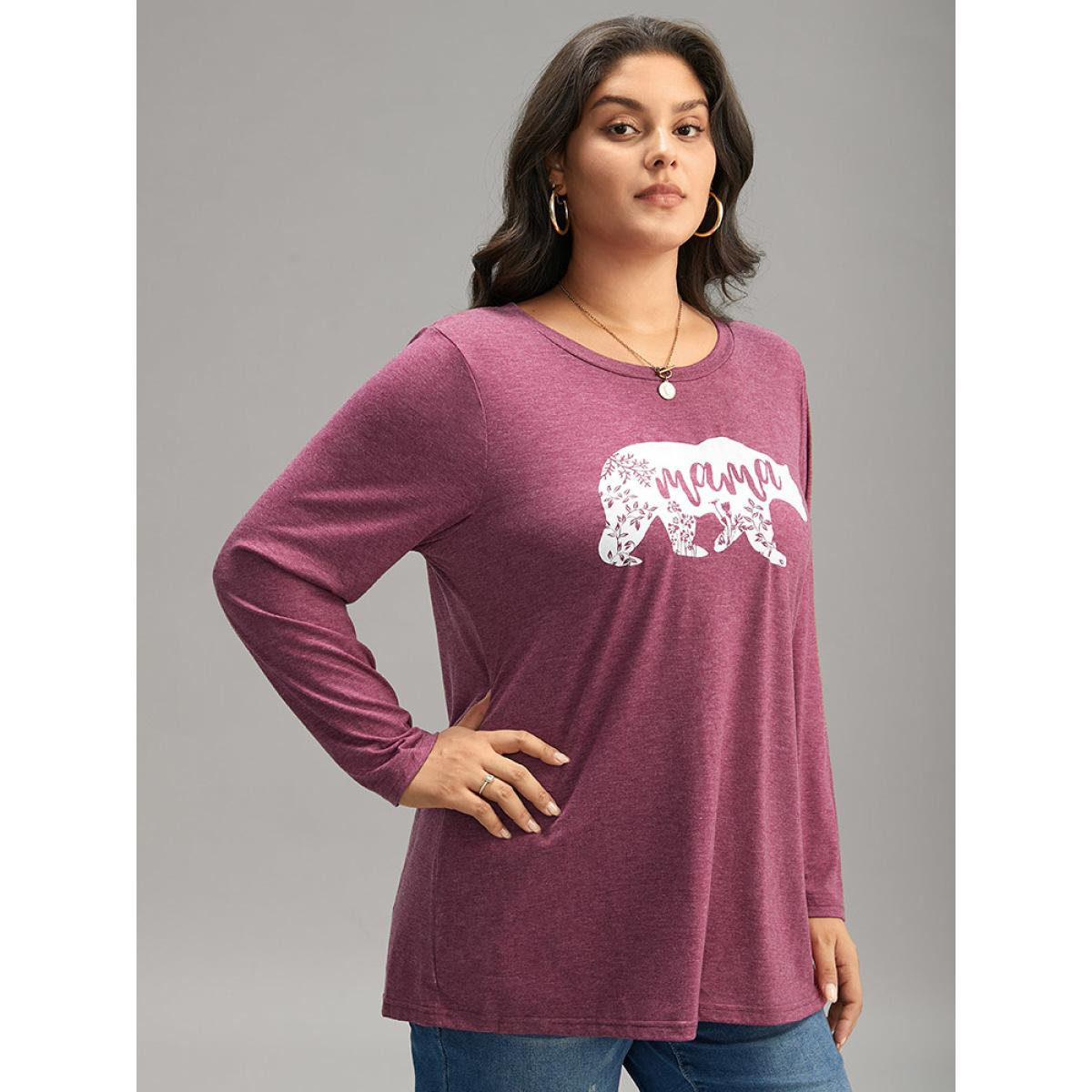 Plus Size Animal & Letter Print Round Neck T-shirt Burgundy Women Casual Printed Occupation Dailywear T-shirts BloomChic 30/6X