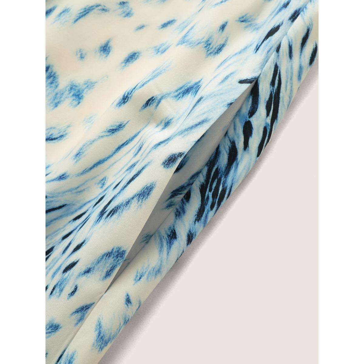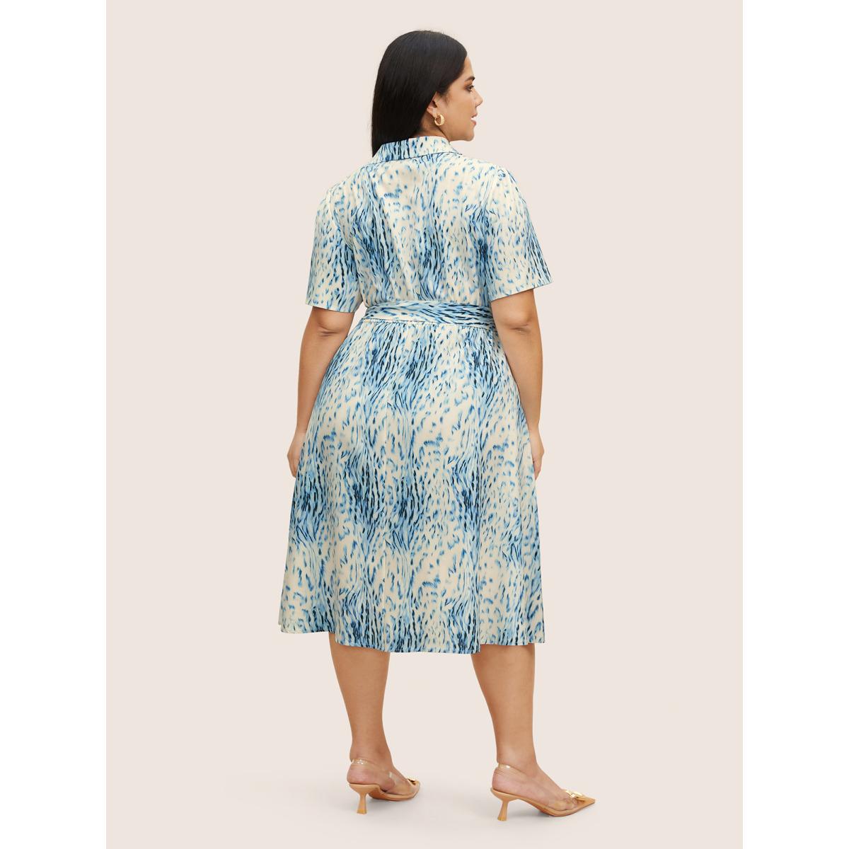 Plus Size Animal Print Shirt Collar Button Up Dress Blue Women At the Office Belted Shirt collar Short sleeve Curvy BloomChic 12/L Product Image