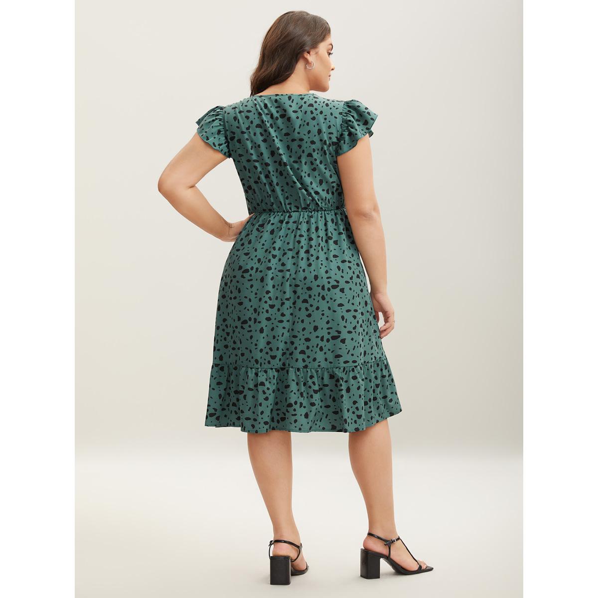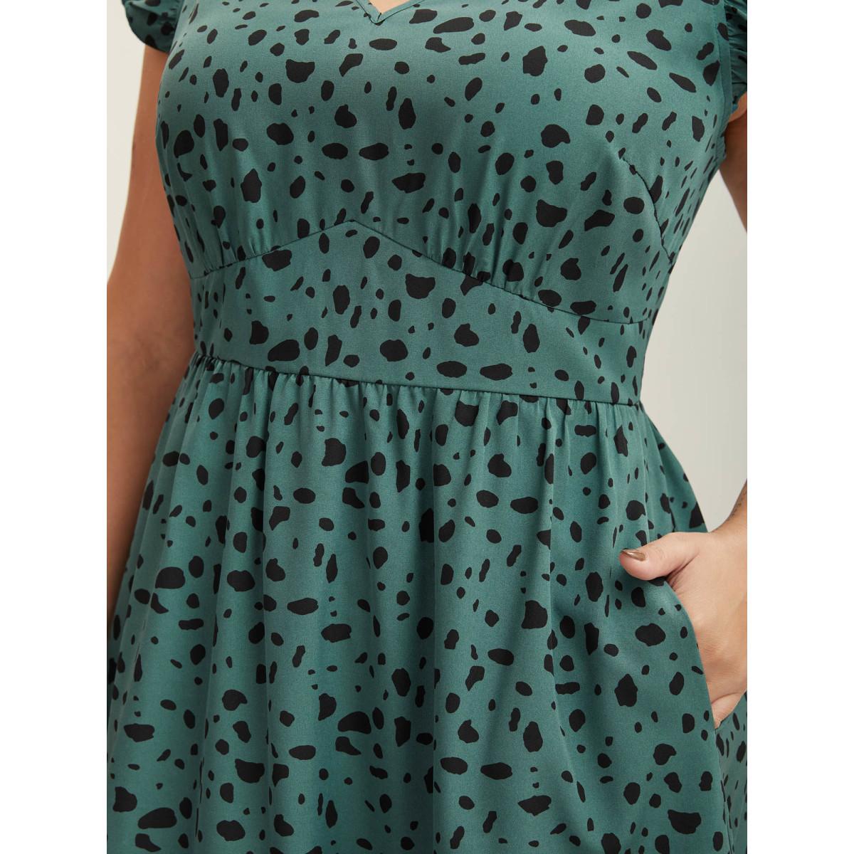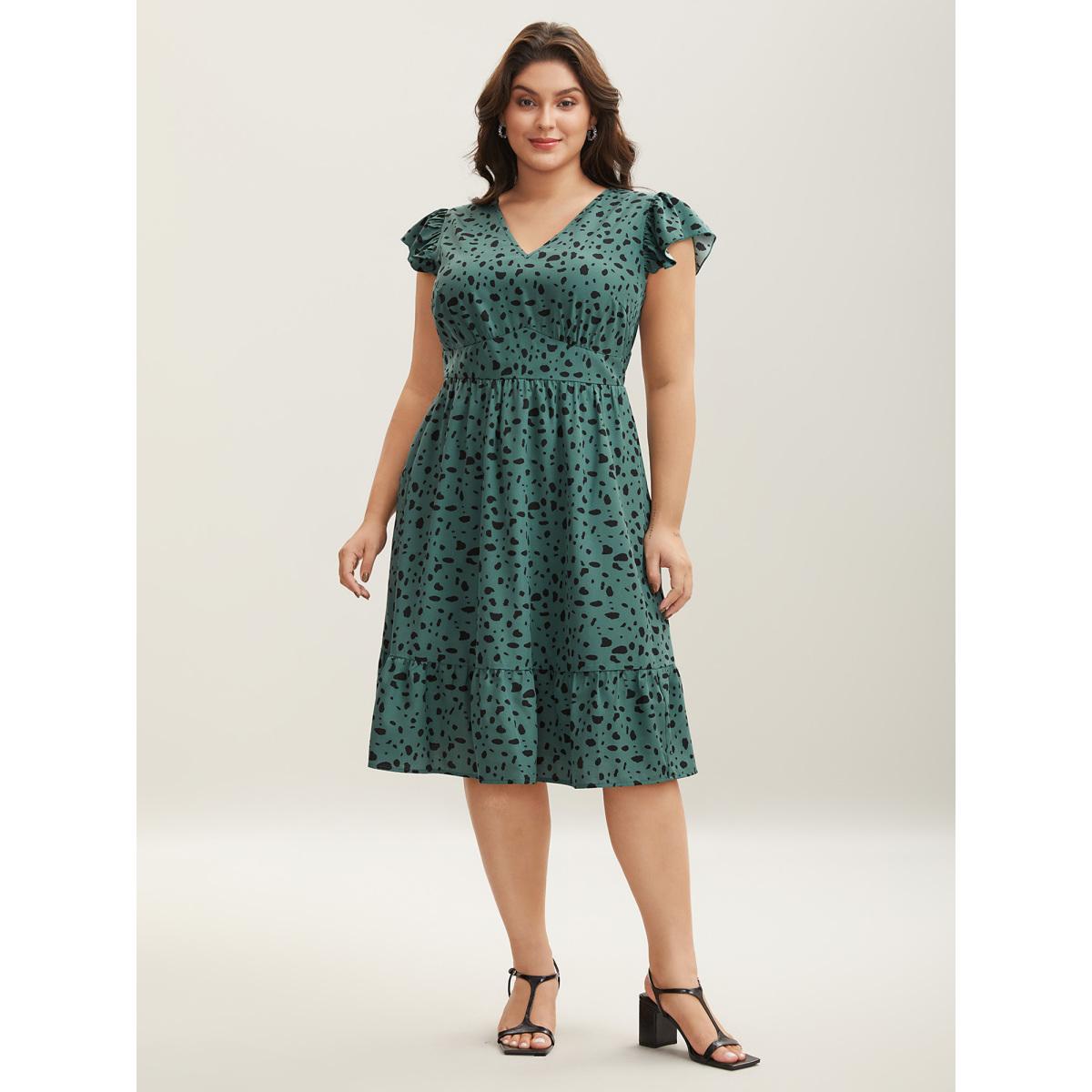 Plus Size Animal Print Waist-Defining Midi Dress Emerald Women V-neck Cap Sleeve Curvy BloomChic 14-16/1X