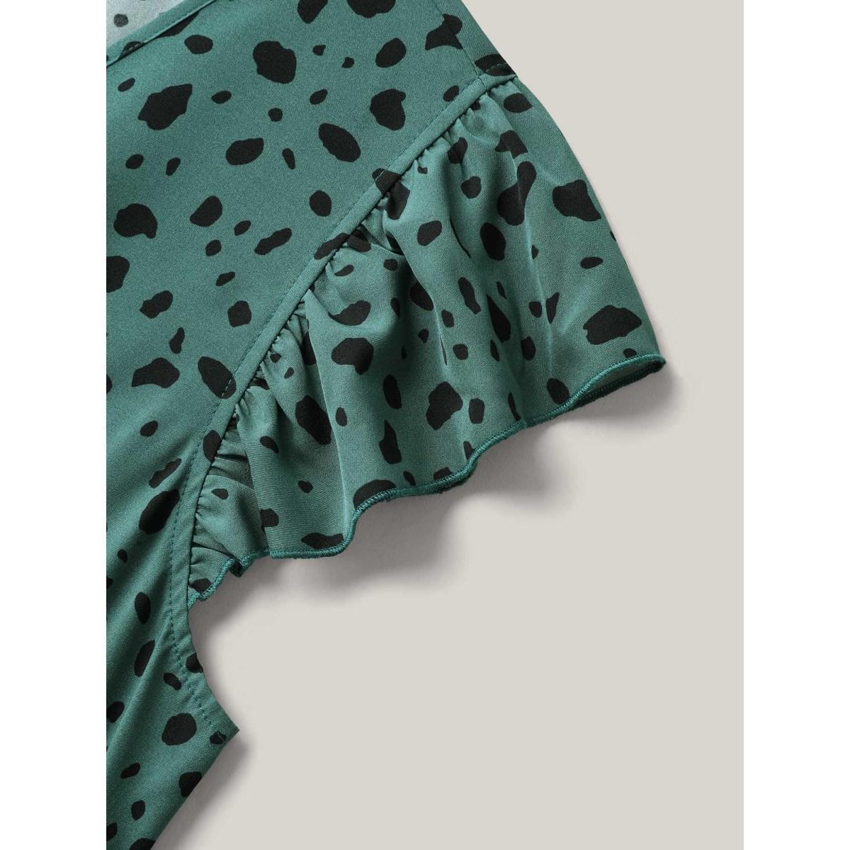 Plus Size Forest Print Waist-Cinched Surplice Neck Dress Emerald Women Elegant Non Overlap Collar Half Sleeve Curvy BloomChic 10/M