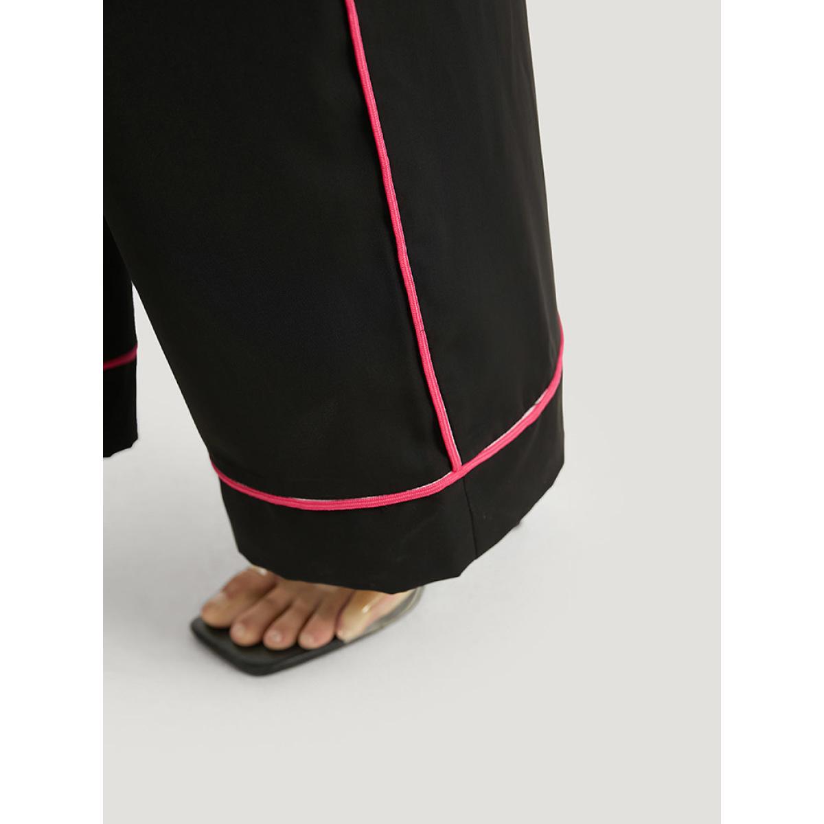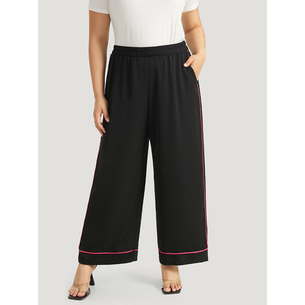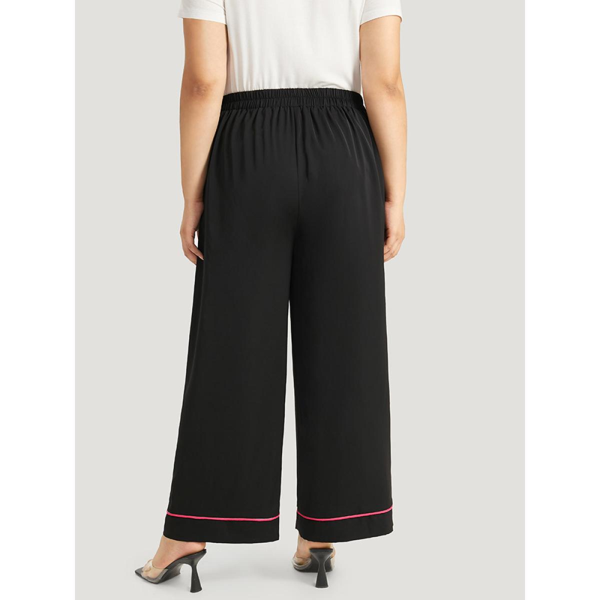 Plus Size Anti-Wrinkle Contrast Elastic Waist Seam Detail Loose Pants Women Black Office Wide Leg High Rise Office Pants BloomChic 12/L