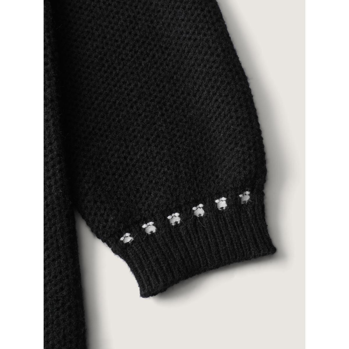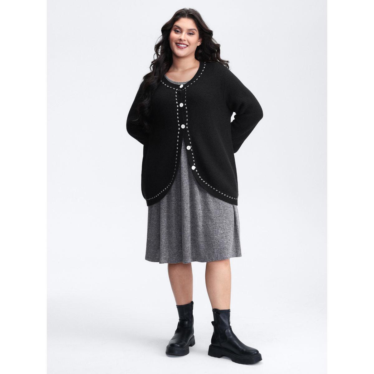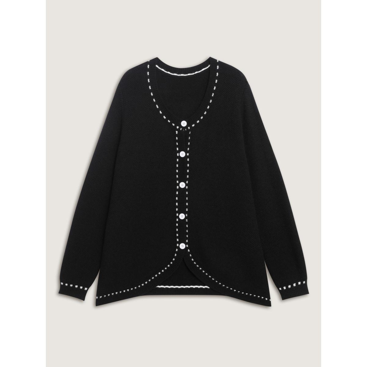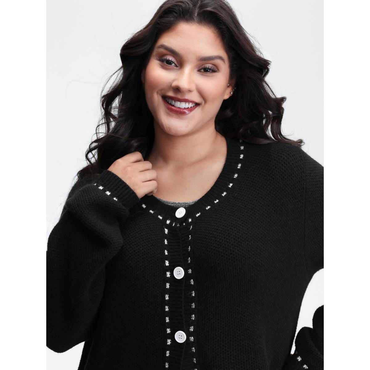 Plus Size Arc Hem Textured Color Contrast Knit Cardigan Black Women Leisure Loose Long Sleeve Casual Cardigans BloomChic 30/6X