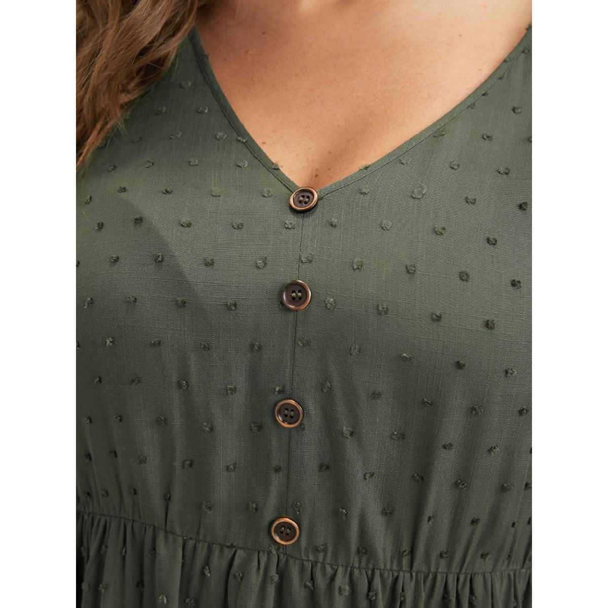 Plus Size ArmyGreen Polka Dot Flutter Button Detail Lantern Sleeve Blouse Women Leisure V-neck Casual Blouses BloomChic 30/6X Product Image