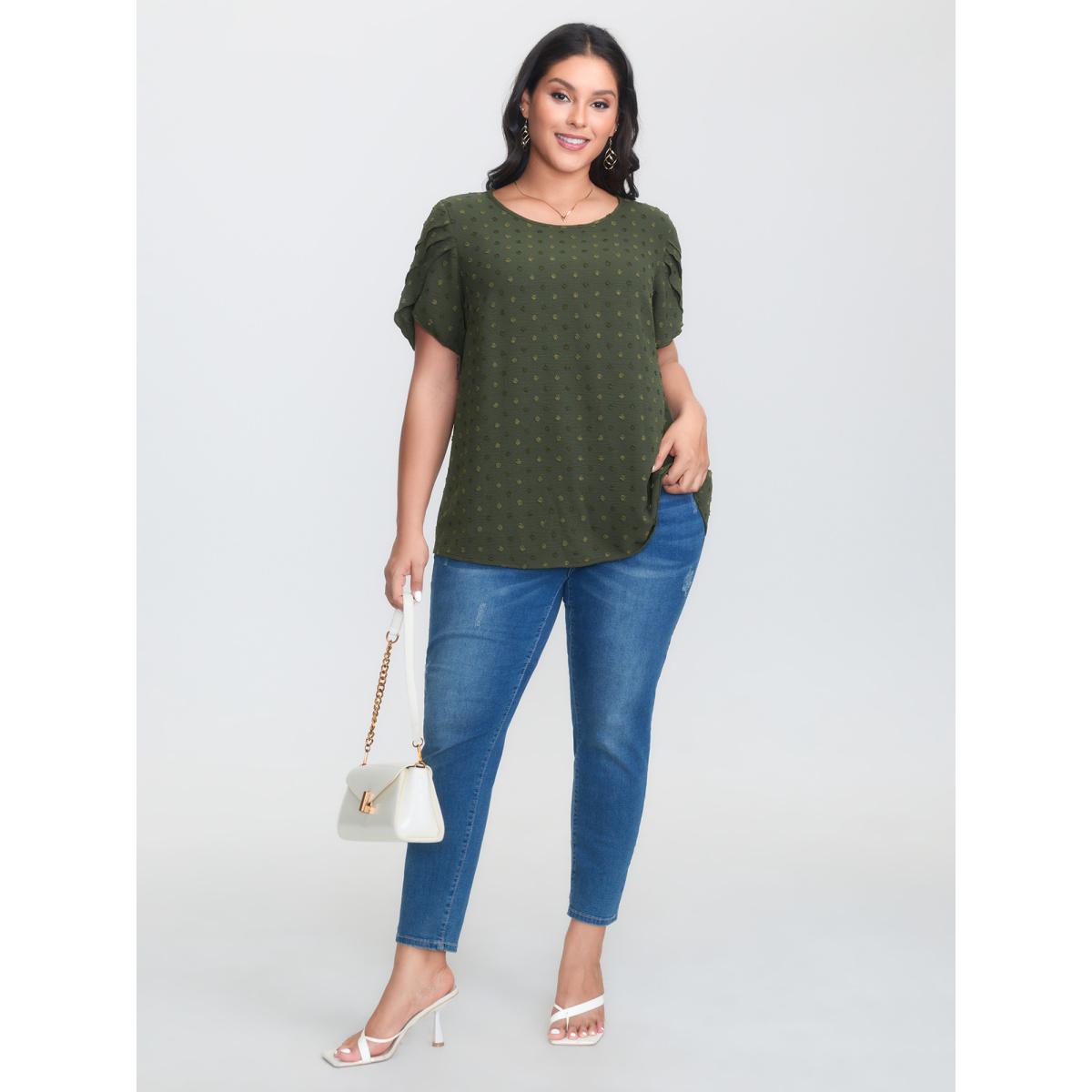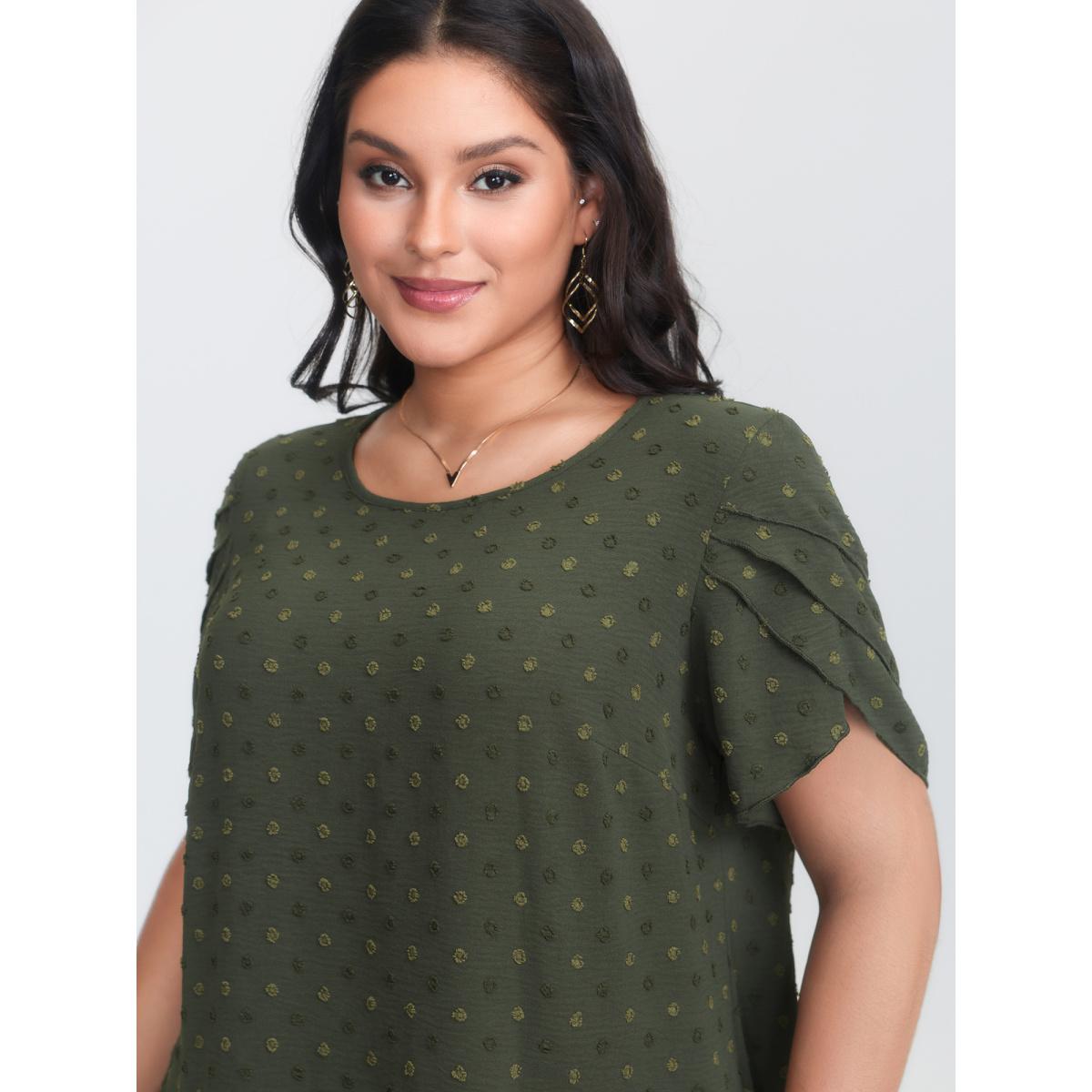 Plus Size ArmyGreen Textured Color Contrast Petal Sleeve Blouse Women Timeless Short sleeve Round Neck Elegant Blouses BloomChic 22-24/3X