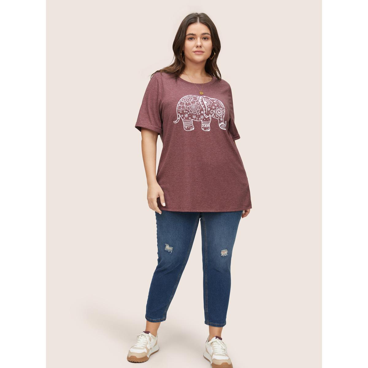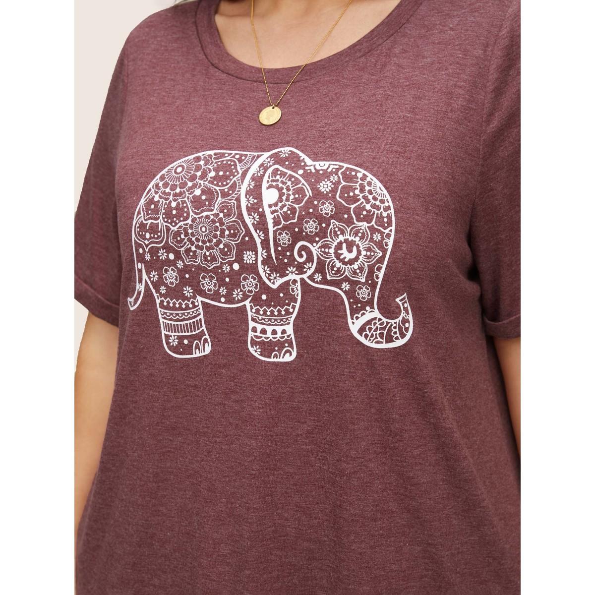 Plus Size Art & Design Elephant Print T-shirt Russet Women Leisure Non Art&design Round Neck Casual T-shirts BloomChic 28/5X Product Image