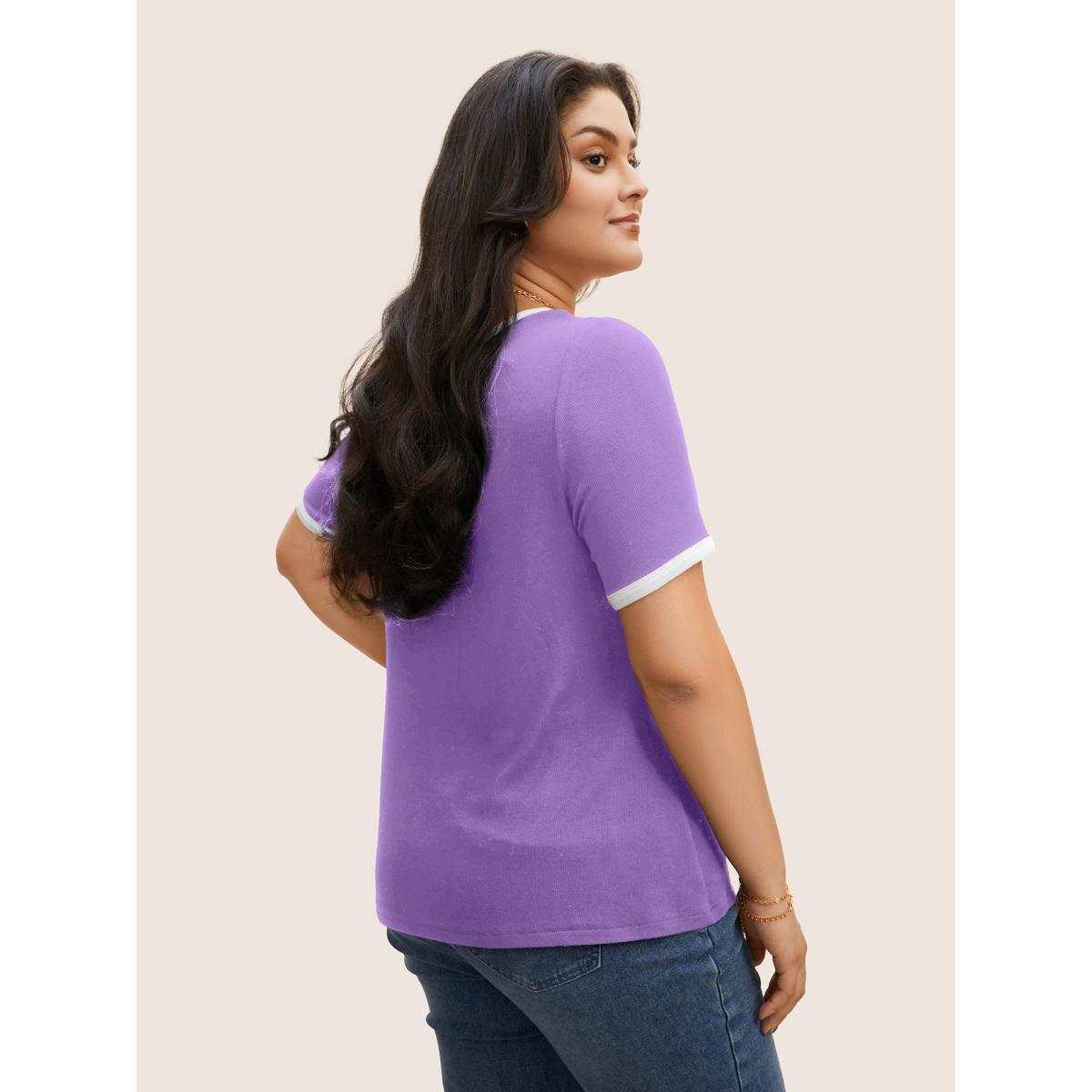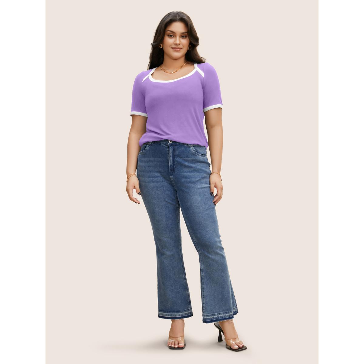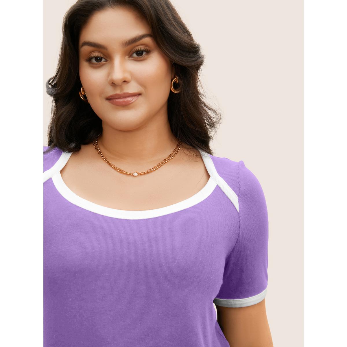 Plus Size Asymmetrical Neck Contrast Trim Pit Strip T-shirt Lilac Women Elegant Contrast Asymmetrical Neck Bodycon Everyday T-shirts BloomChic 12/L