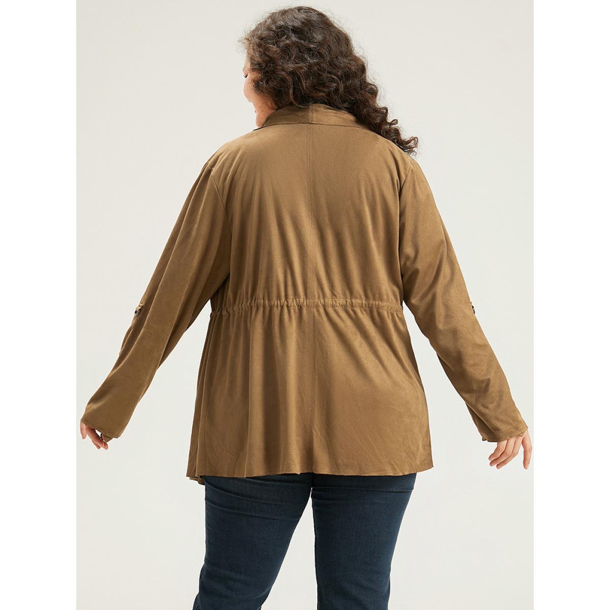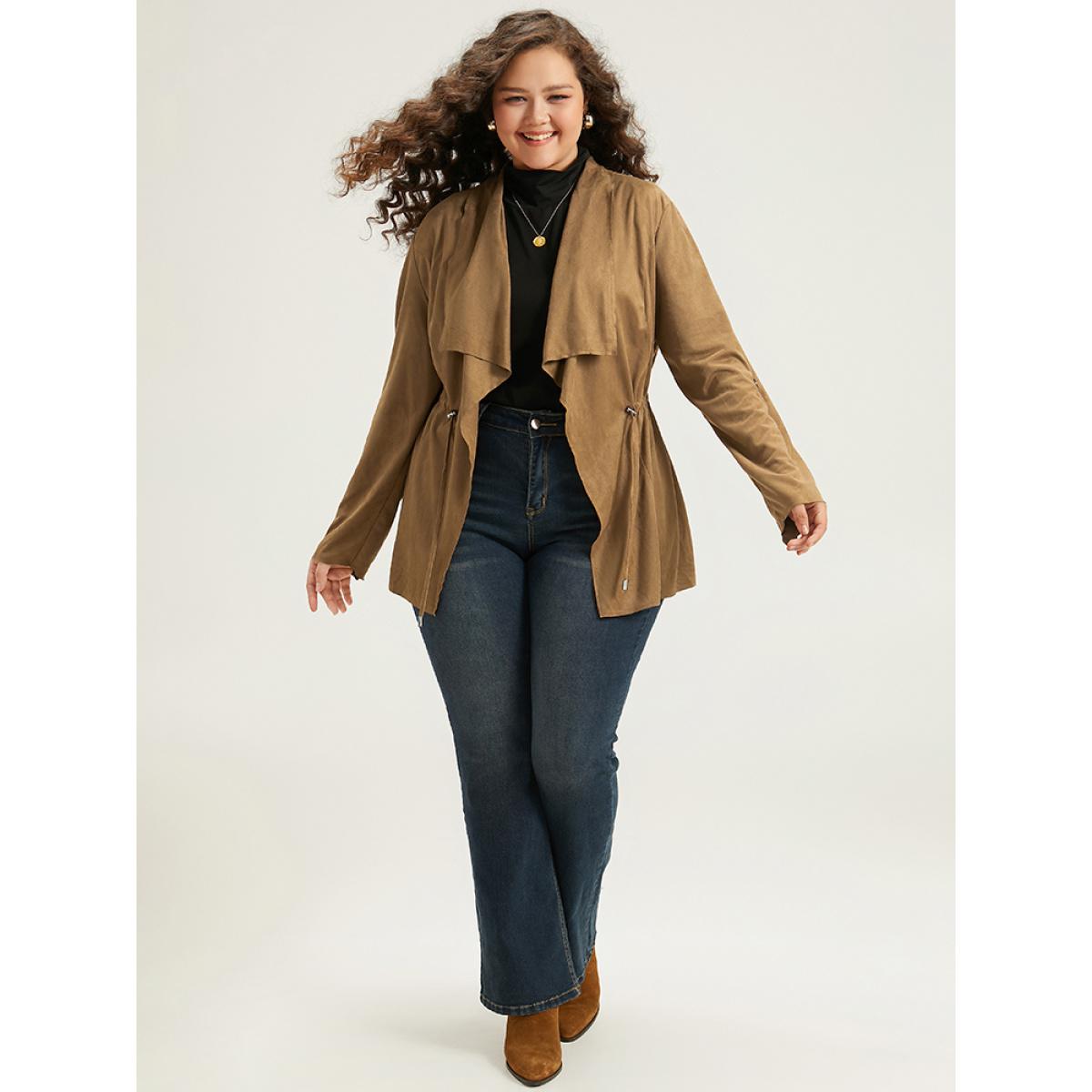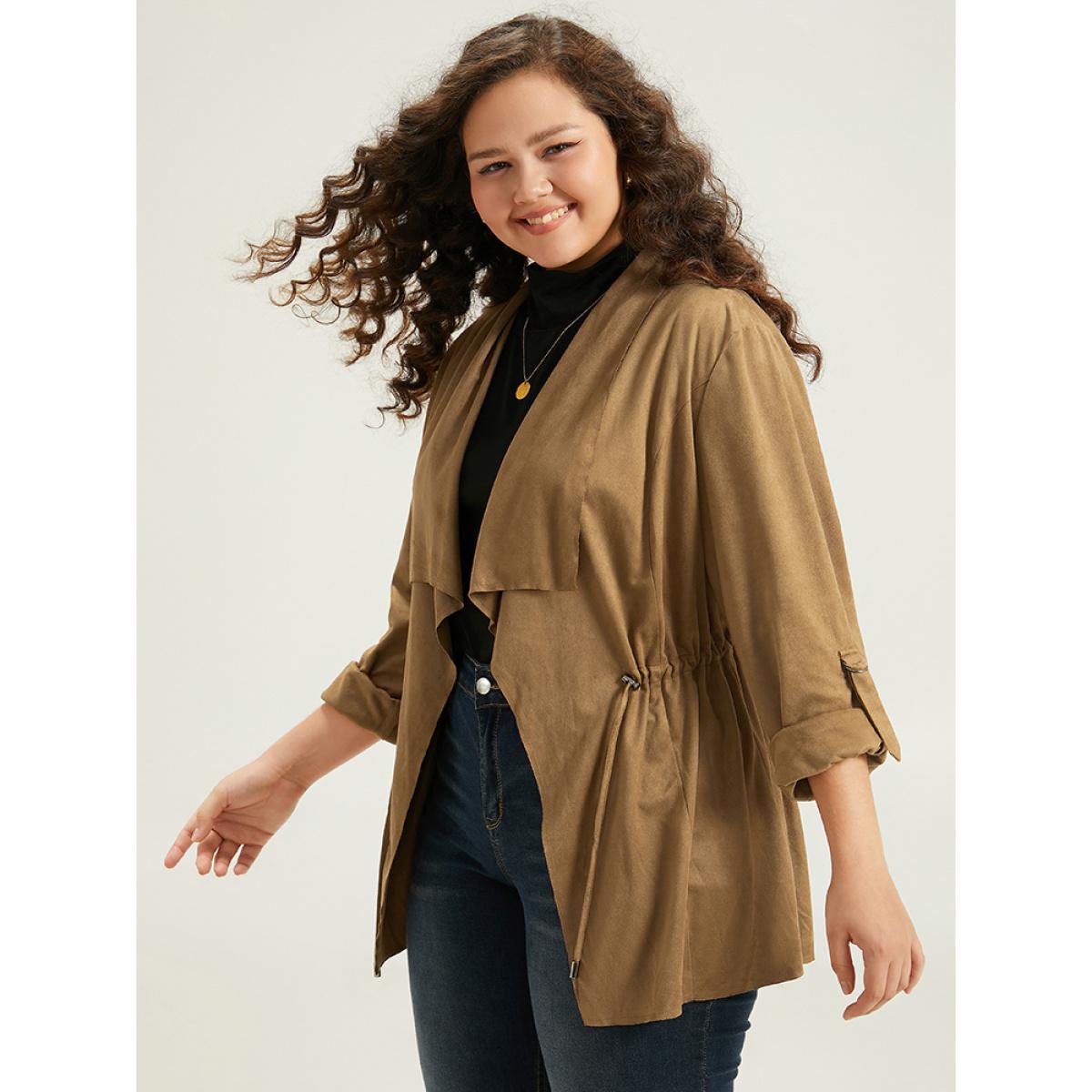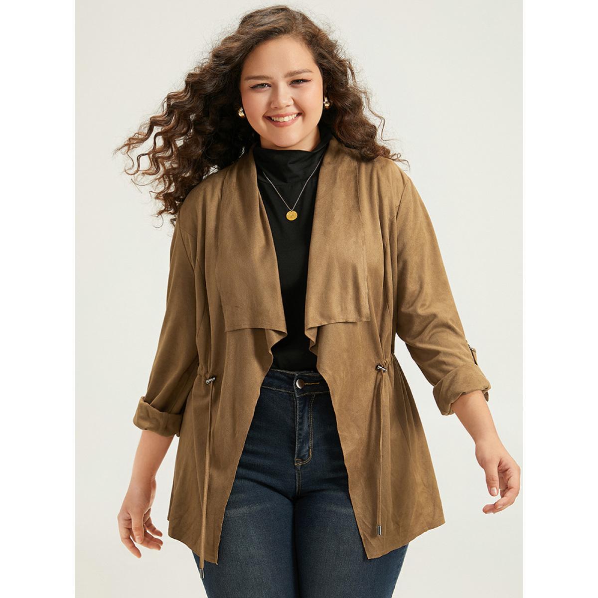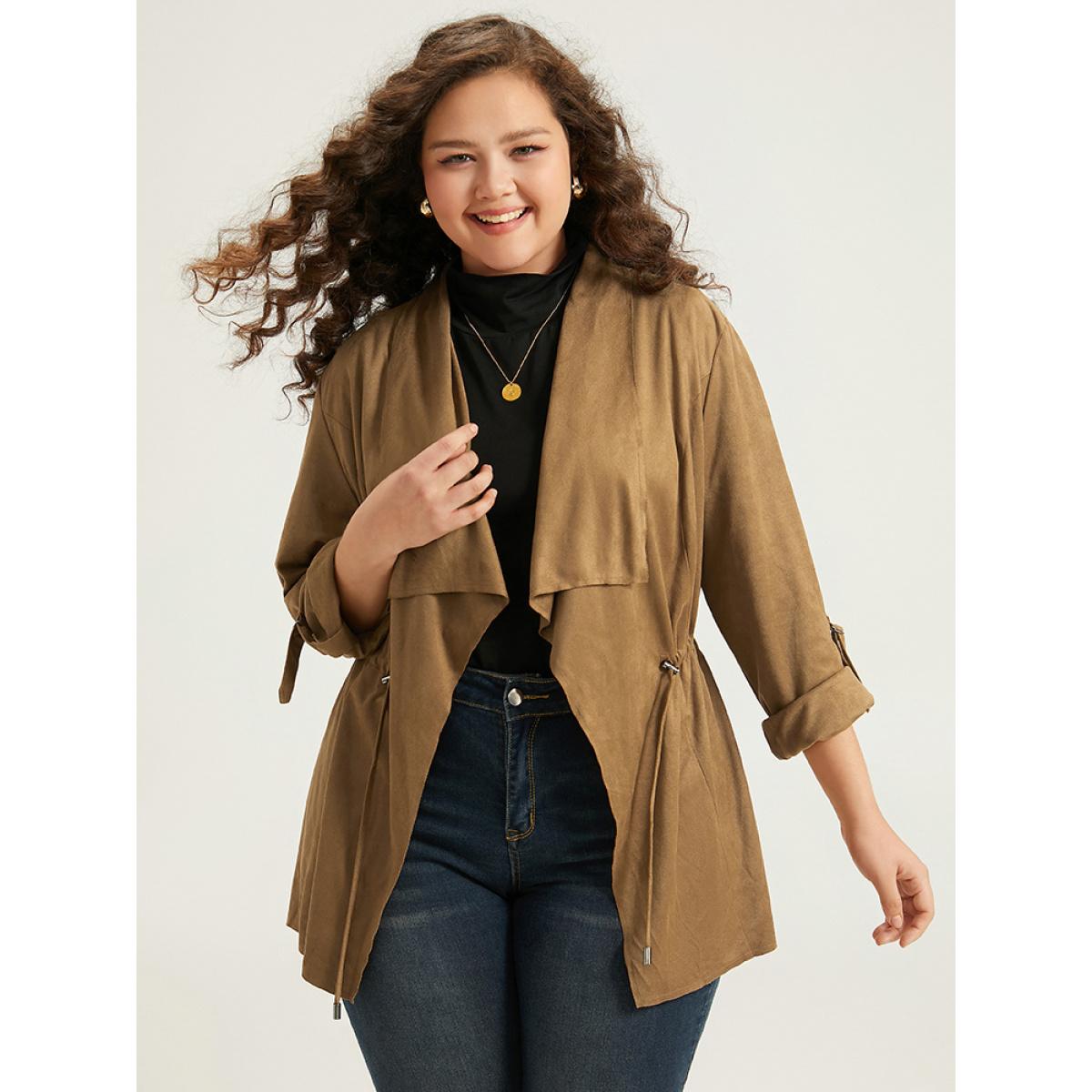 Plus Size Asymmetrical Neck Drawstring Tab Sleeve Coat Women Tan Casual Drawstring Ladies Everyday Winter Coats BloomChic 14-16/1X