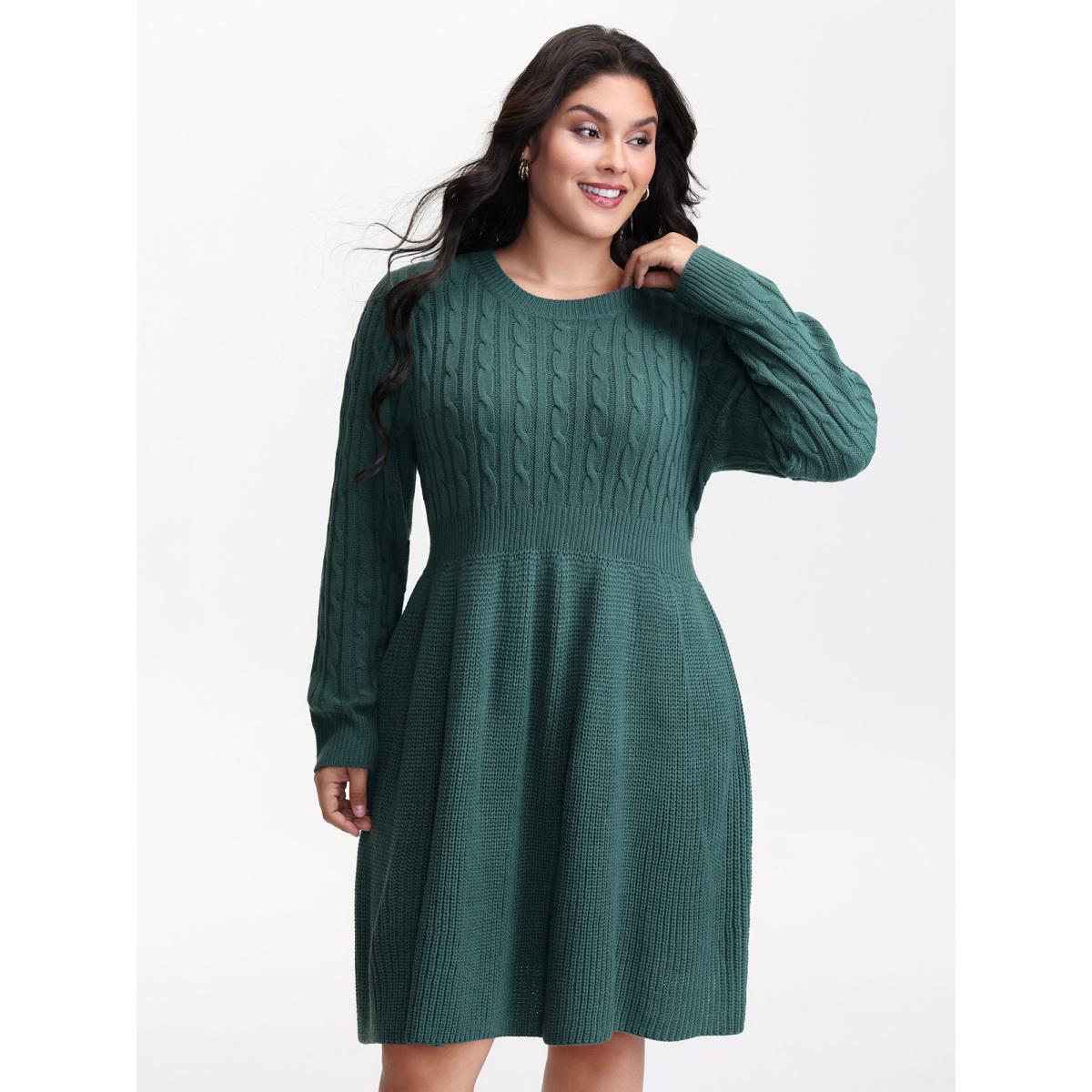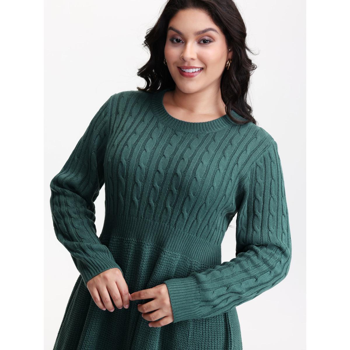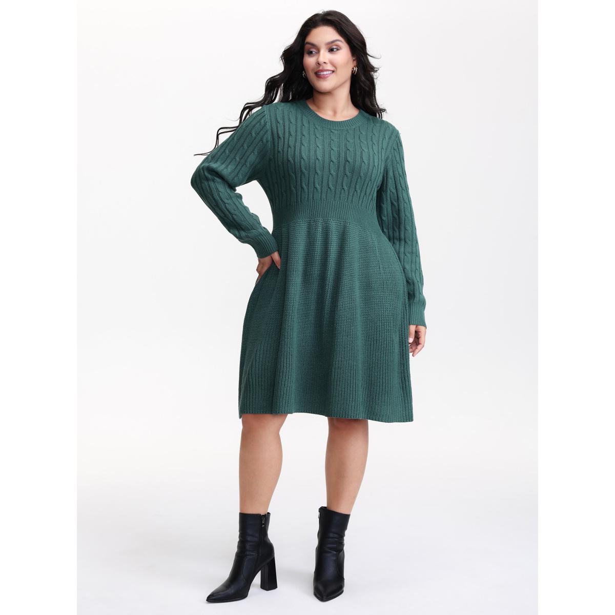 Plus Size Back Cut Out Bows Cable Knit Sweater Dress DarkSlateGray Women Leisure Bodycon Long Sleeve Casual Sweater Dresses BloomChic 28/5X