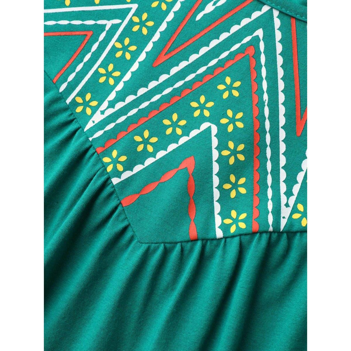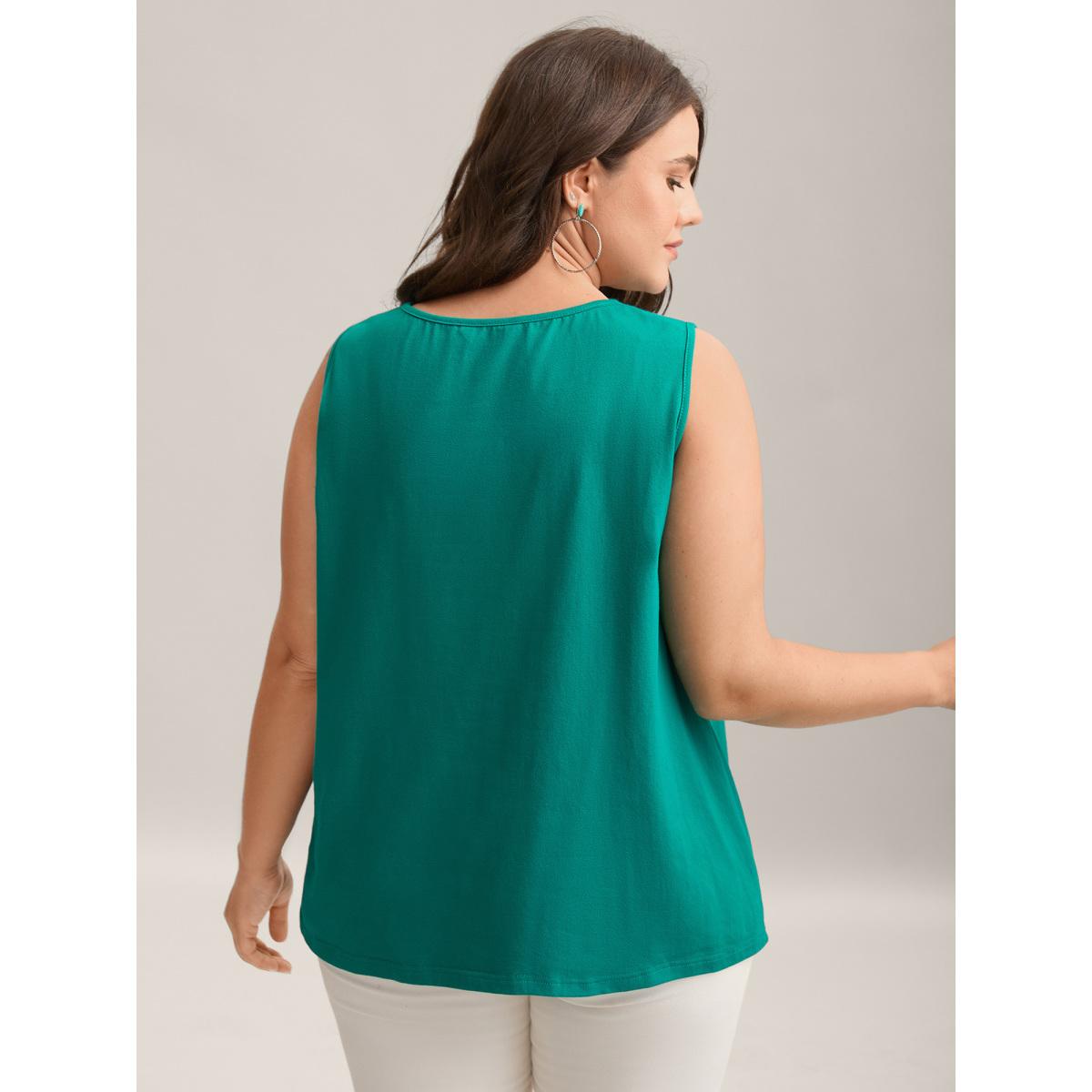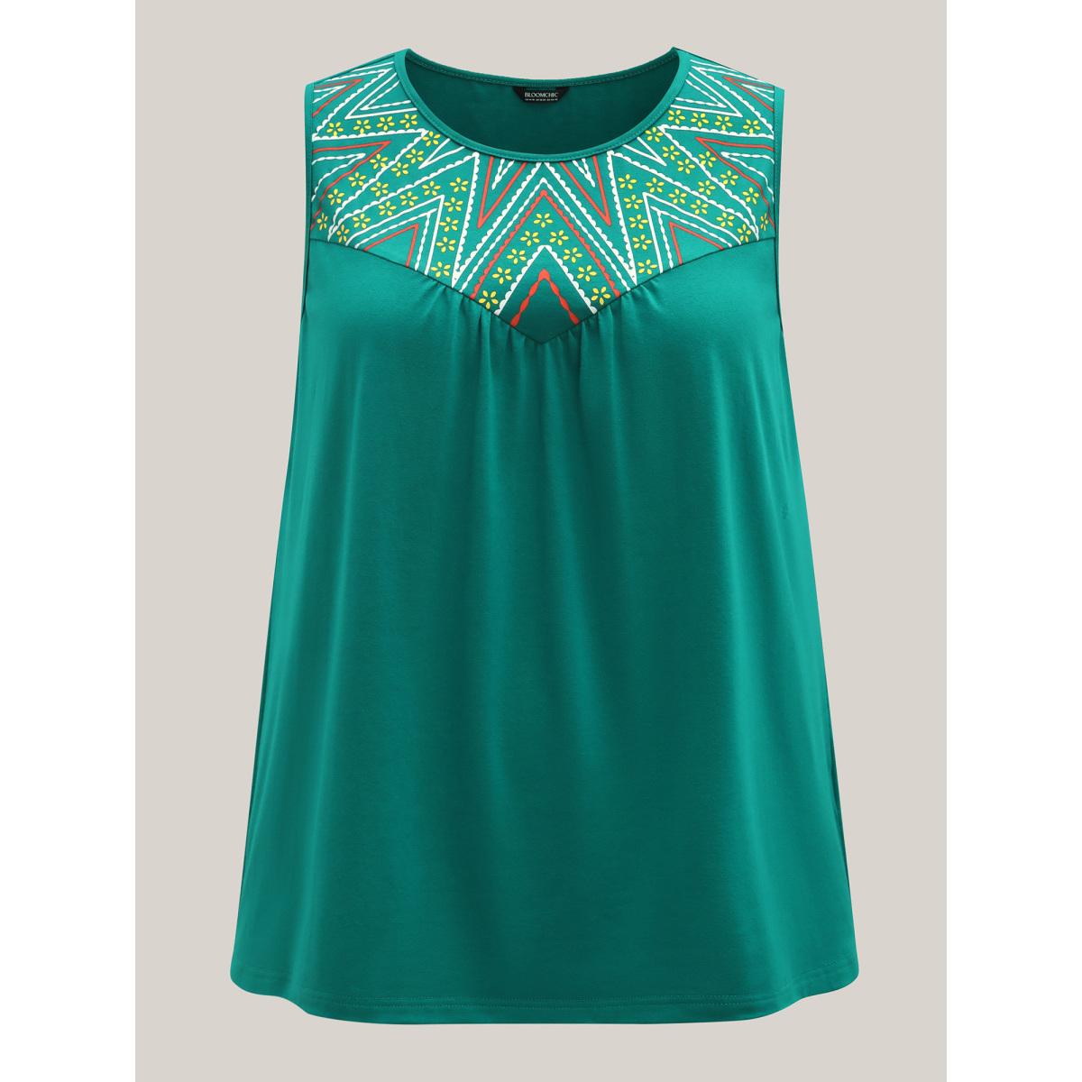 Plus Size Bamboo Cotton Stretchy 3D Print Tank Top Women Teal Gathered Round Neck Vacation Tank Tops Camis BloomChic 18-20/2X Product Image