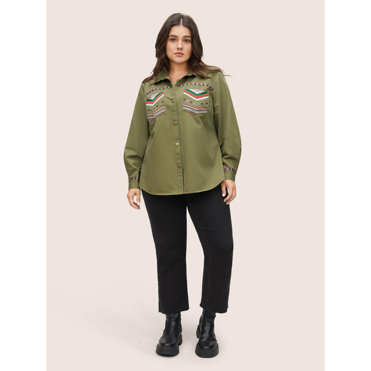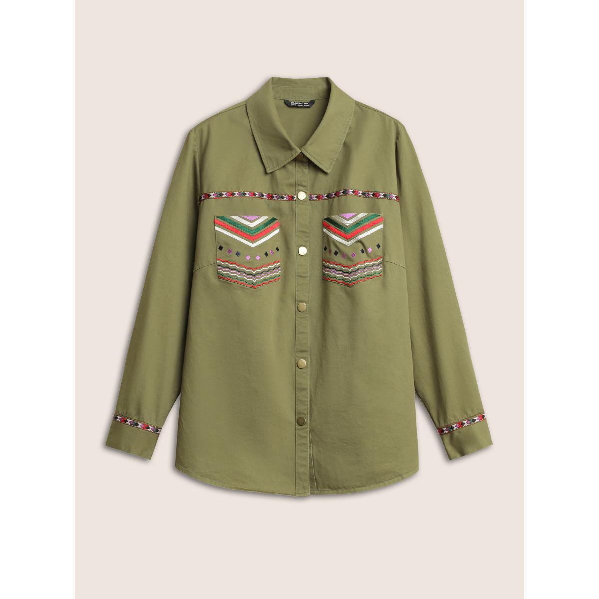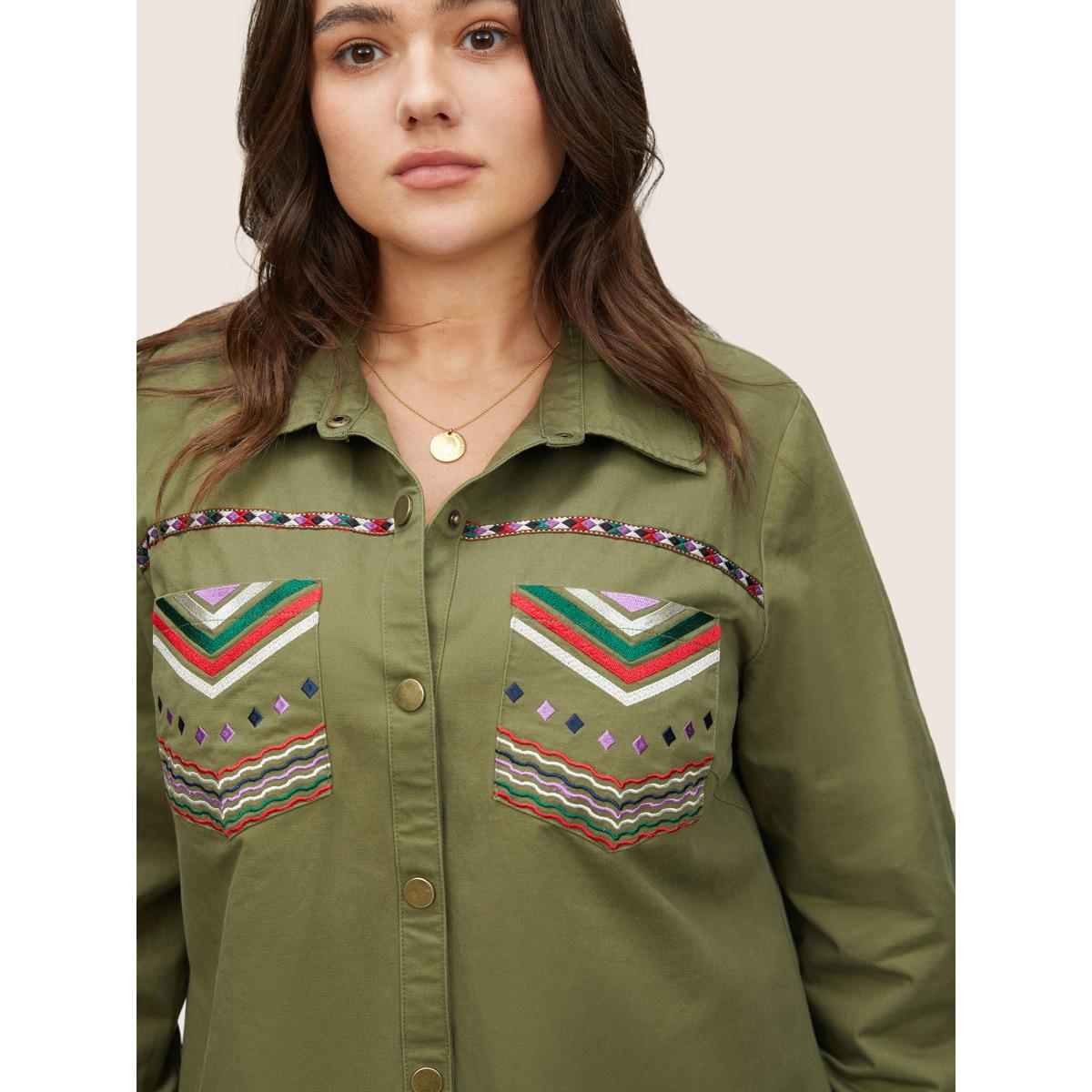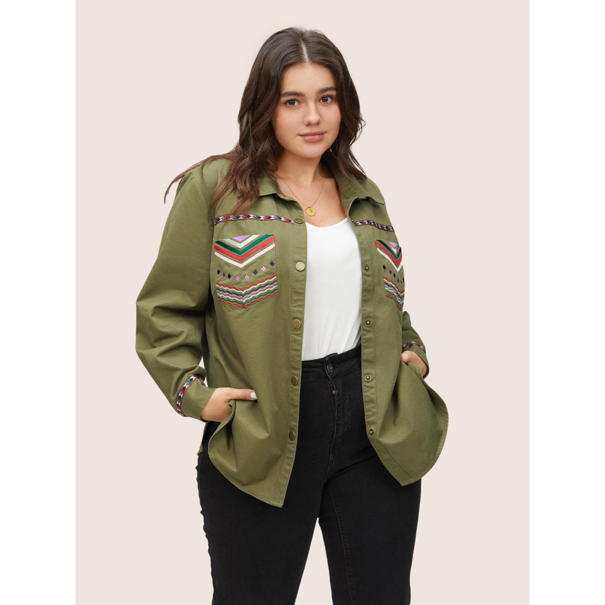 Plus Size Bandana Embroidered Patched Pocket Jacket Women ArmyGreen Non Patch pocket Everyday Jackets BloomChic 10/M