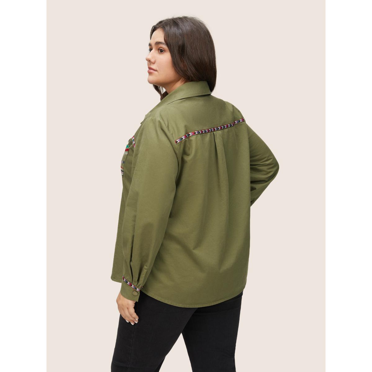 Plus Size Bandana Embroidered Patched Pocket Jacket Women ArmyGreen Non Patch pocket Everyday Jackets BloomChic 10/M Product Image