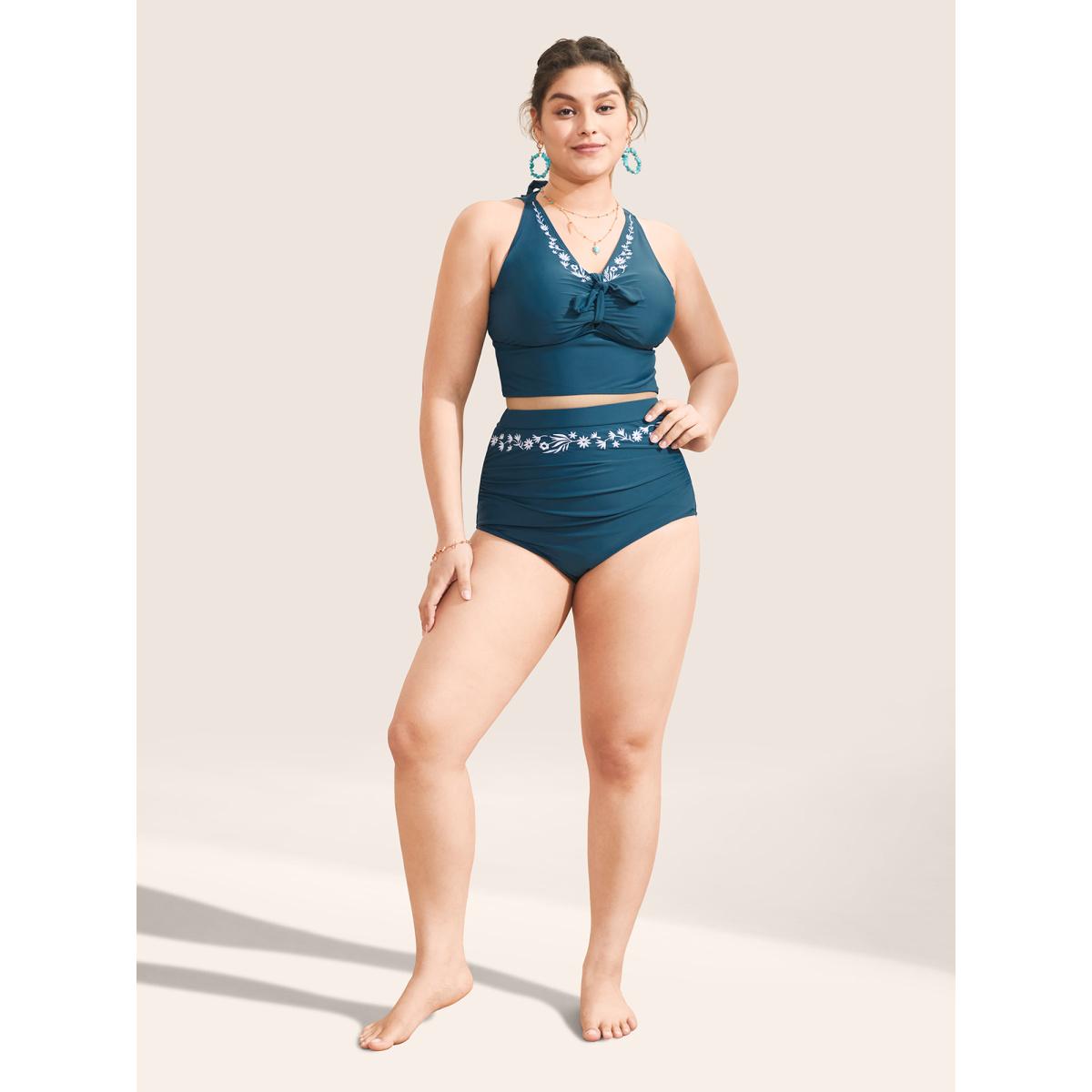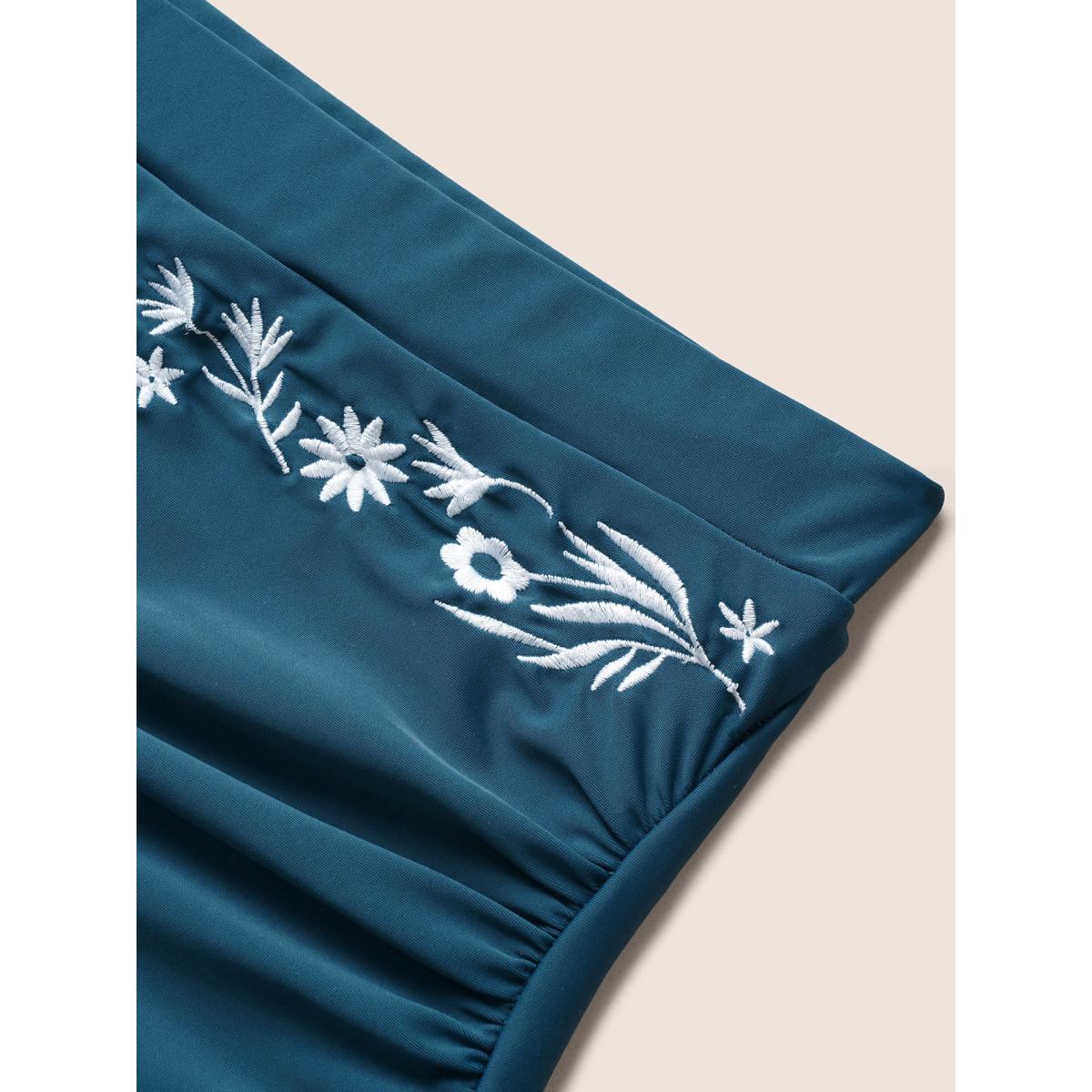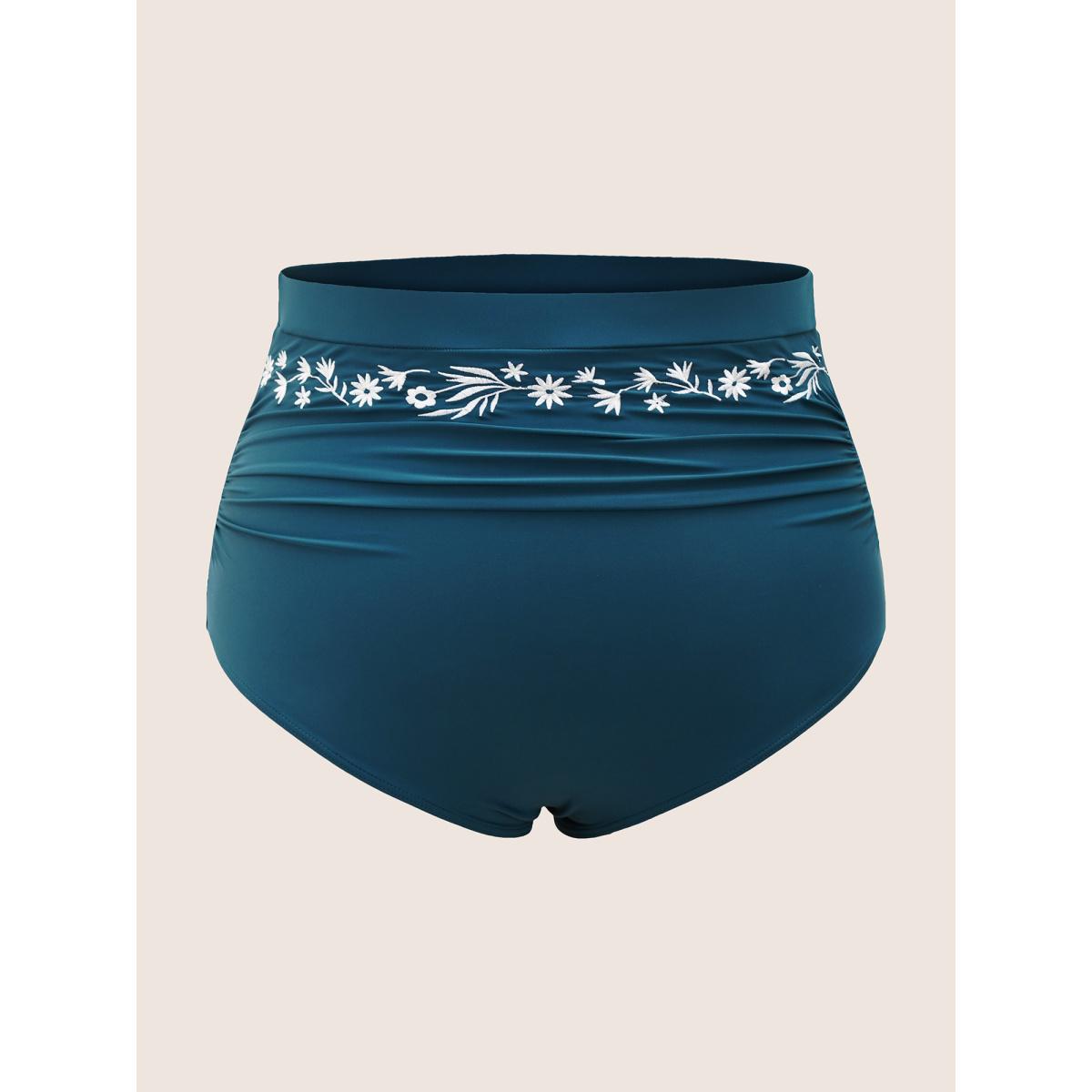 Plus Size Bandana Floral Embroidered High Rise Swim Bottom Women's Swimwear Cyan Beach Gathered High stretch Skinny High Rise Curve Swim Bottoms BloomChic 10/M