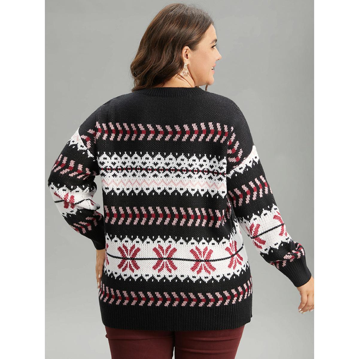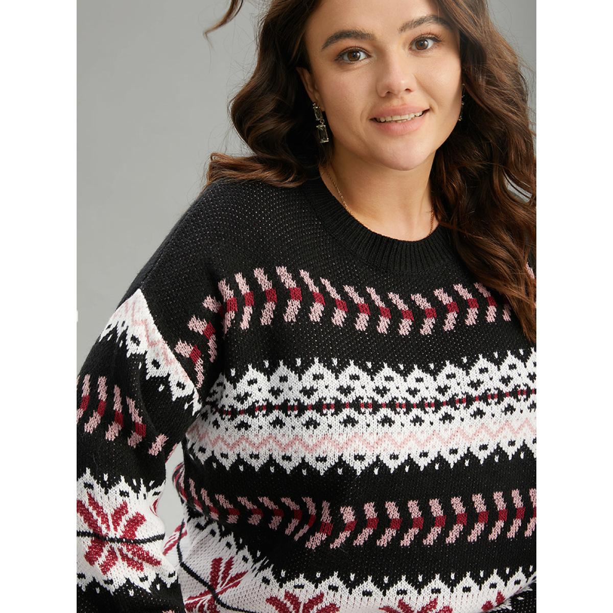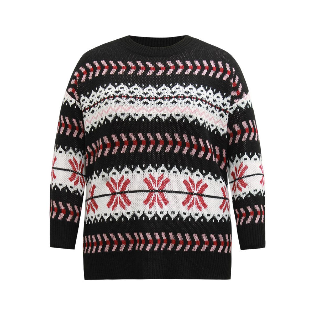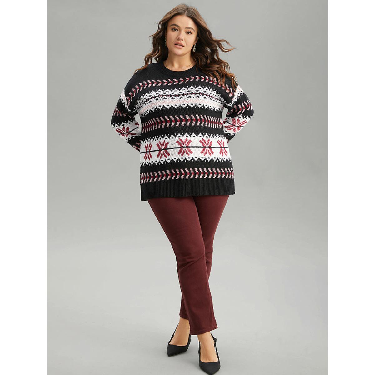Plus Size Bandana Geo Print Drop Shoulder Pullover Multicolor Women Casual Loose Long Sleeve Round Neck Dailywear Pullovers BloomChic 28/5X