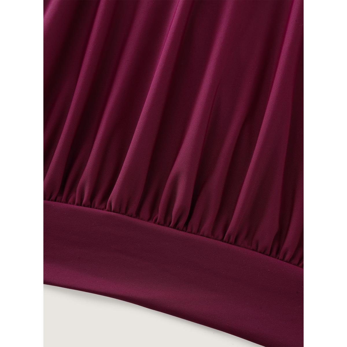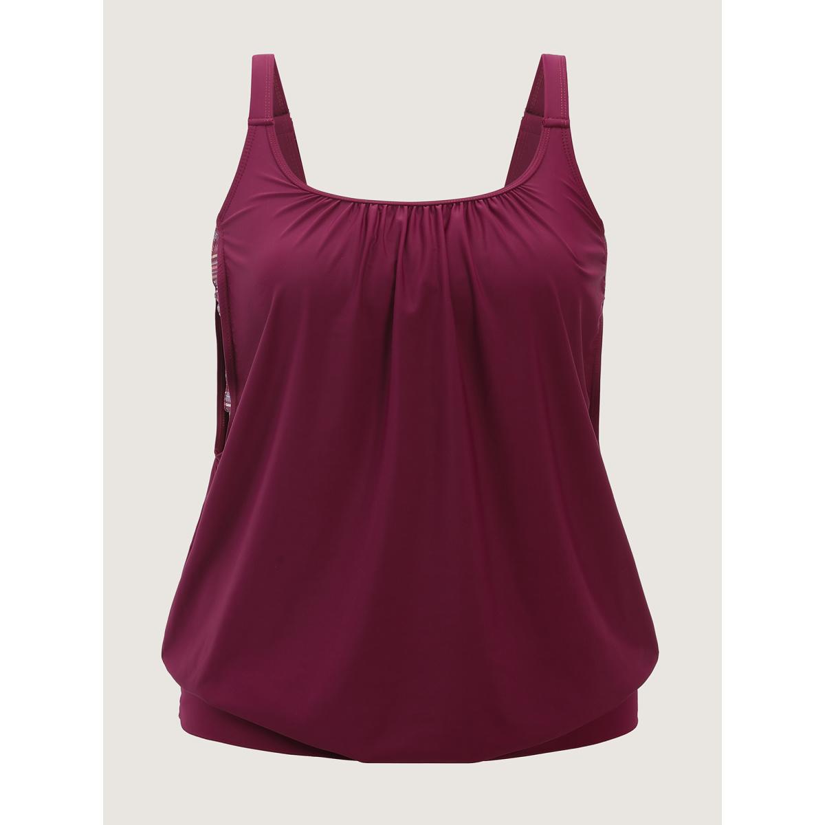 Plus Size Bandana Patchwork Contrast Gathered Cut Out Tankini Top Women's Swimwear RedViolet Resort Non High stretch Bodycon U-neck Curve Swim Tops BloomChic 28/5X