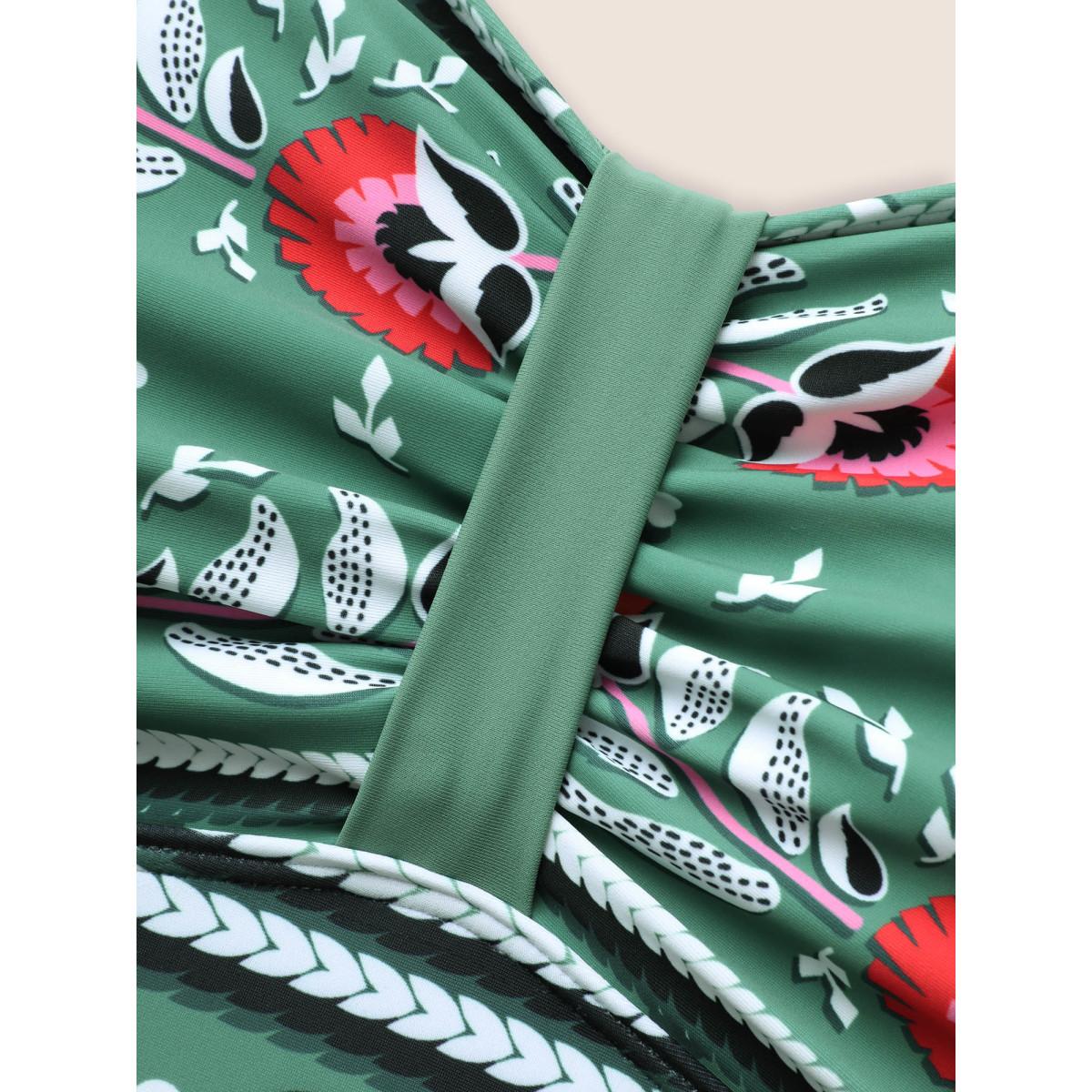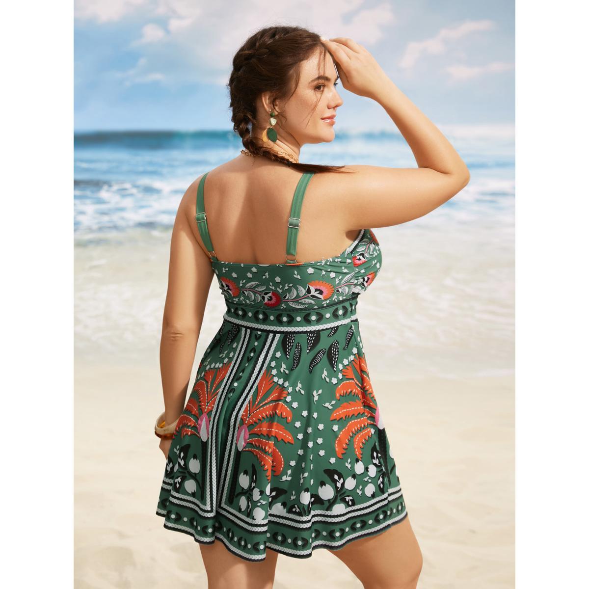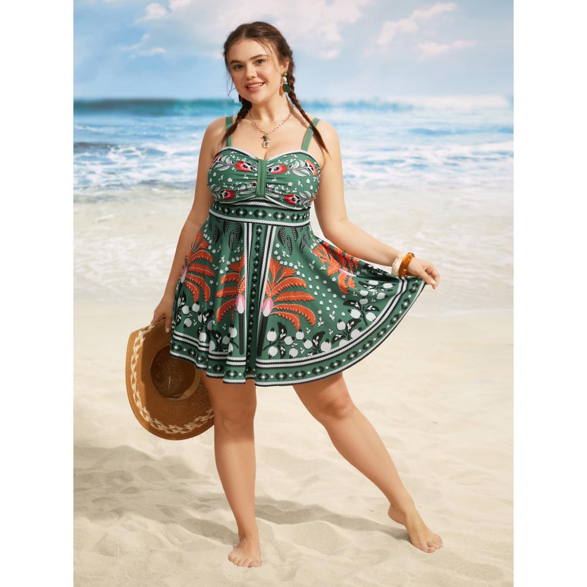 Plus Size Bandana Print Heart Neckline Gathered Swim Dress Women's Swimwear Palemauve Beach Bodycon Heart neckline High stretch Curve Swim Dresses BloomChic 22-24/3X
