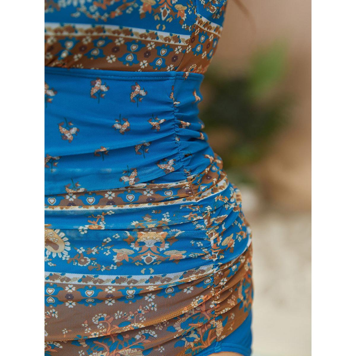 Plus Size Bandana Print Sculpt Waist Wrap One Piece Swimsuit Women's Swimwear Multicolor Skinny Overlap Collar High stretch Curve Swim Dresses BloomChic 10/M