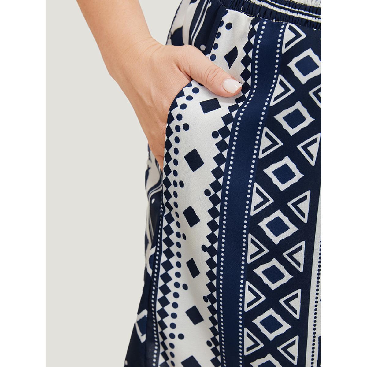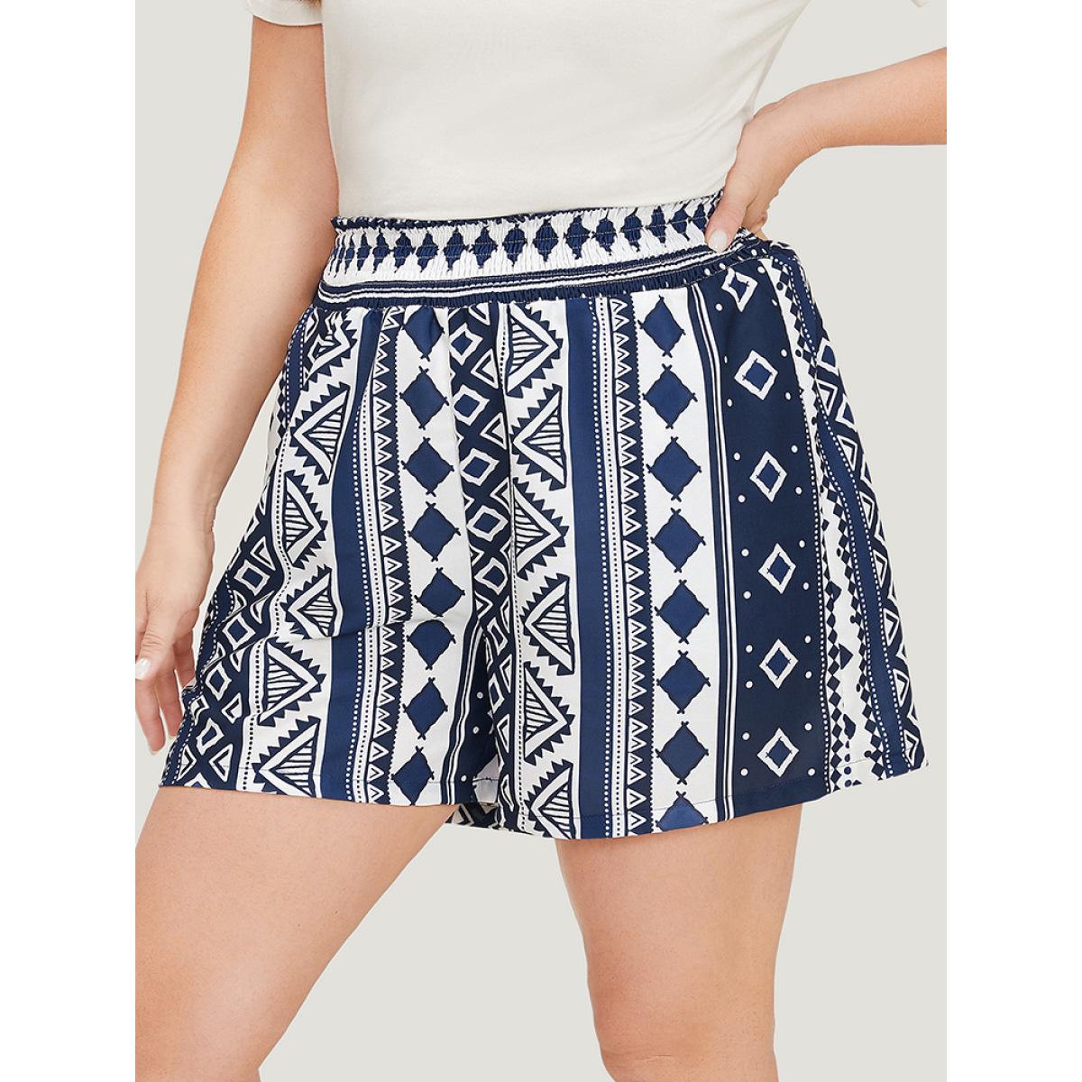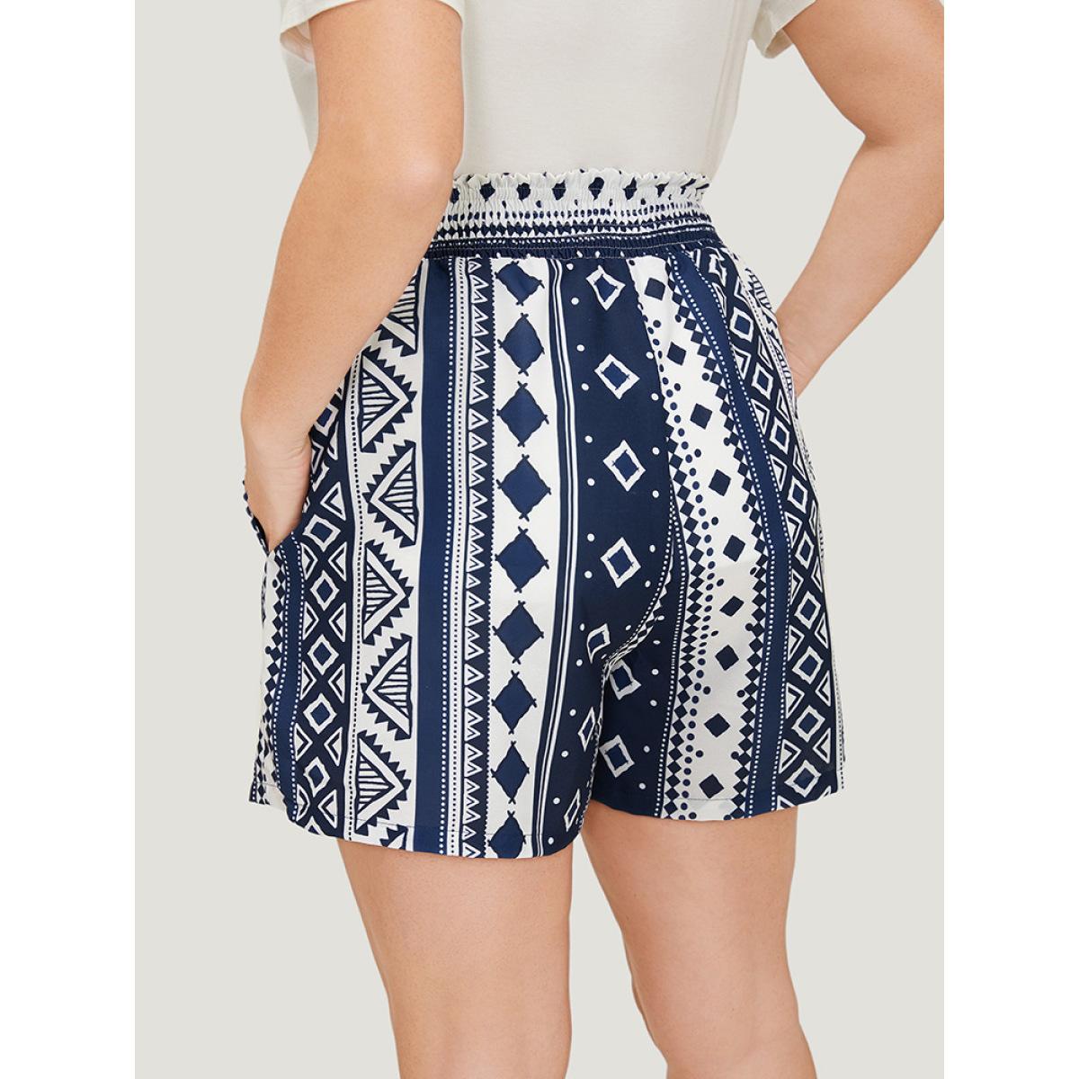 Plus Size Bandana Shirred Waist Pocket Shorts Women Blue Vacation Pocket Dailywear Shorts BloomChic 28/5X Product Image