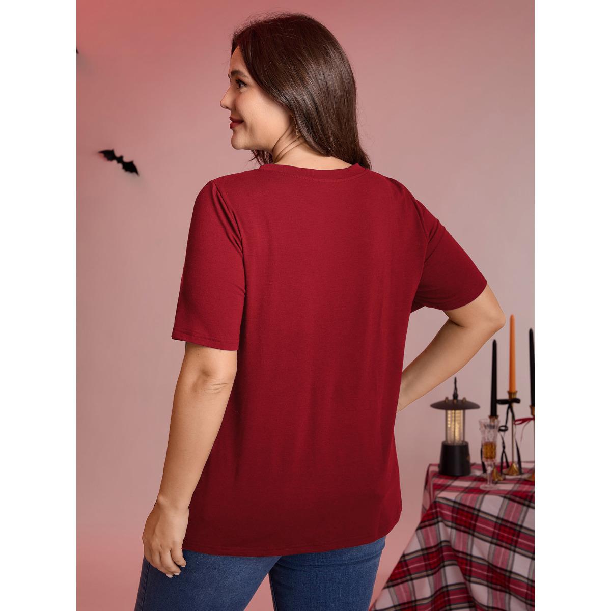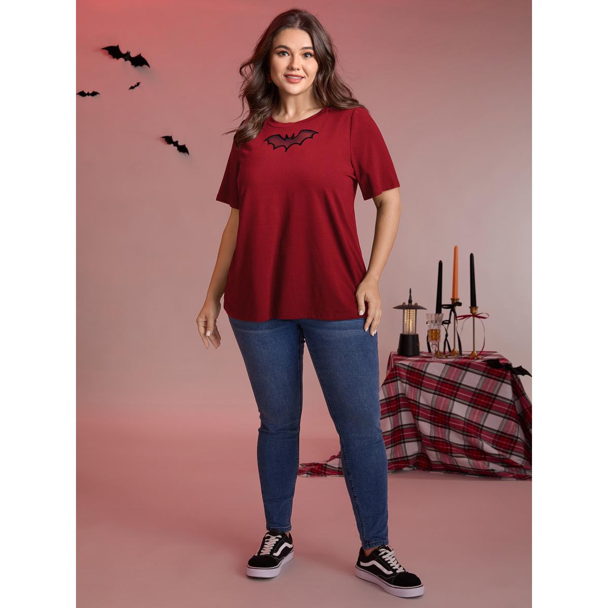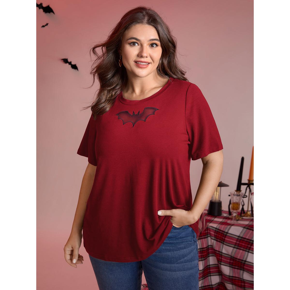 Plus Size Bat Neck Cut-Out Stretchy Embroidered T-Shirt Scarlet Women Playful Broderie anglaise Round Neck Casual T-shirts BloomChic 10/M