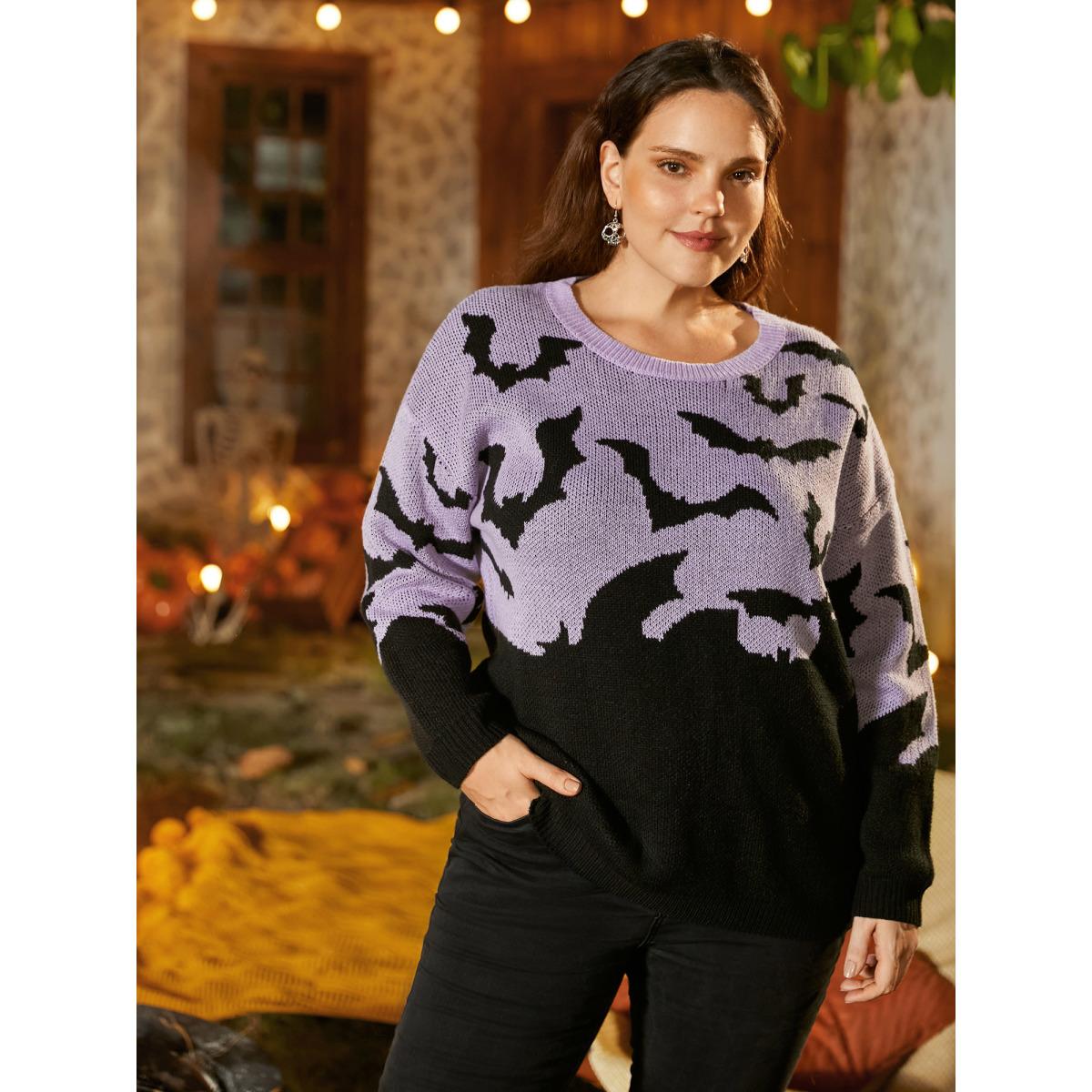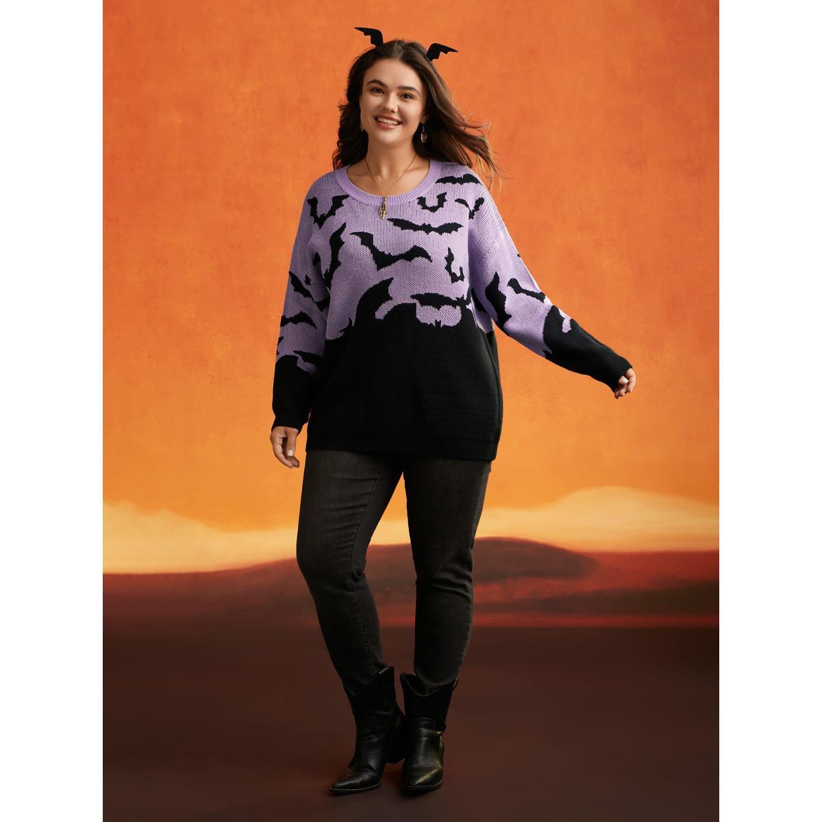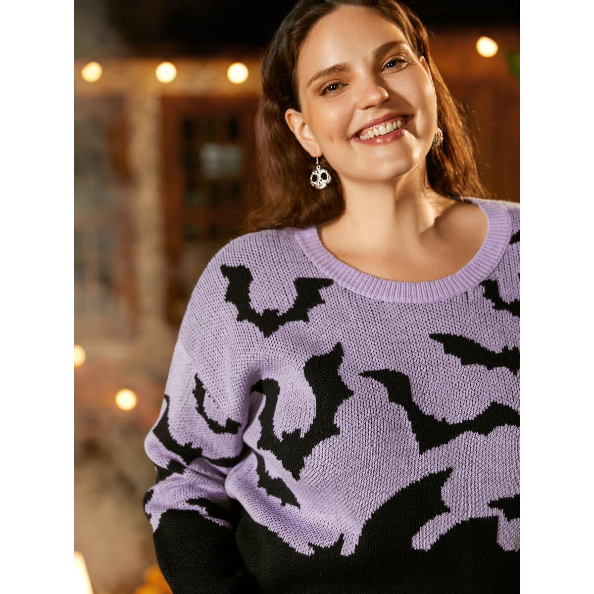 Plus Size Batty Basics Crew Neck Pullover Lilac Women Playful Loose Long Sleeve Round Neck Casual Pullovers BloomChic 12/L