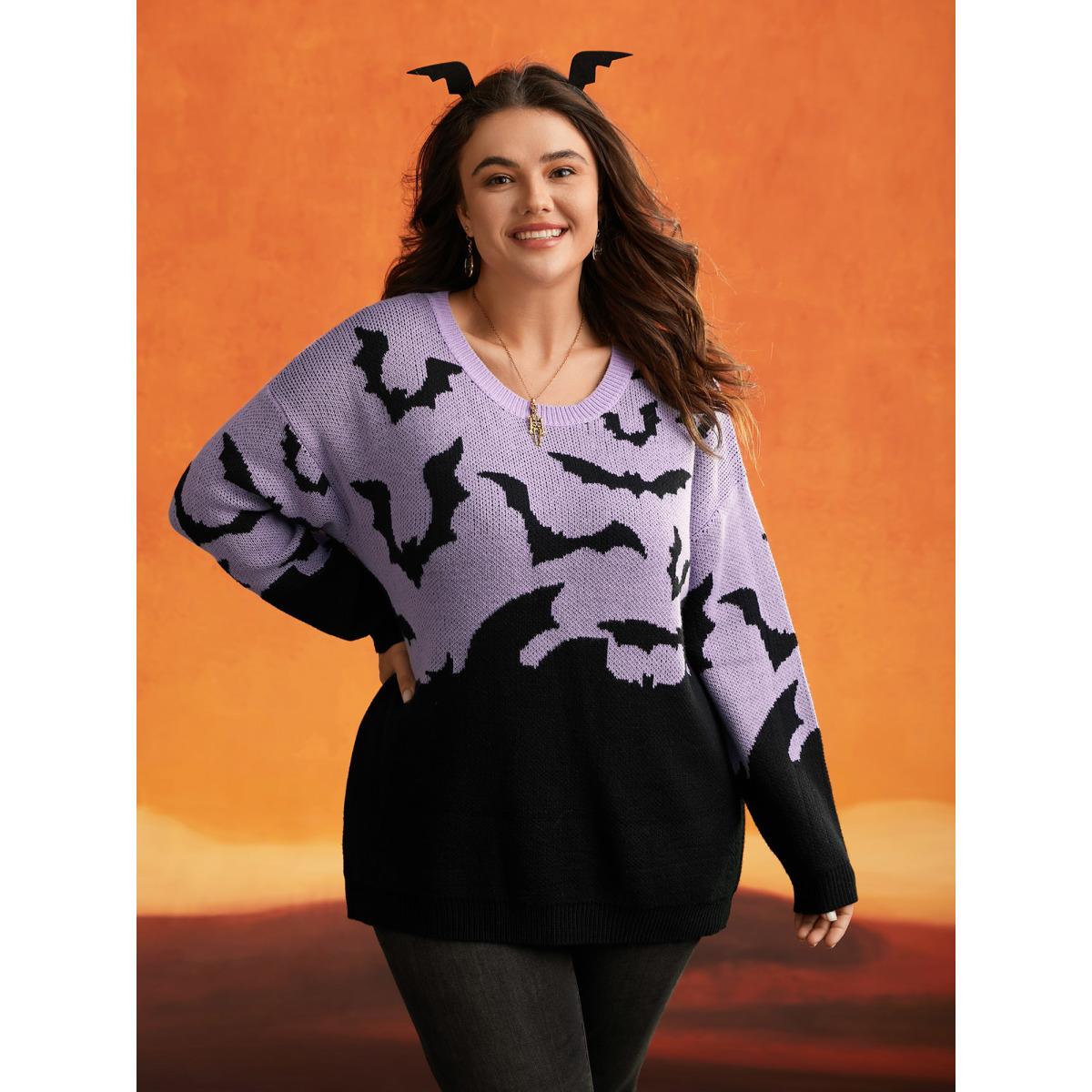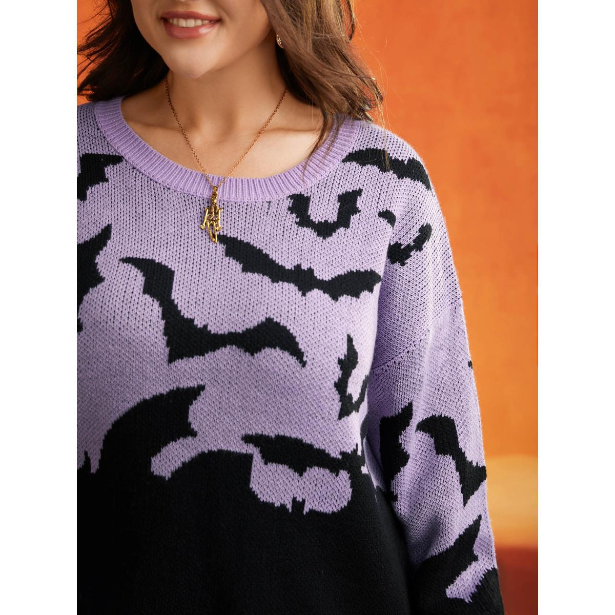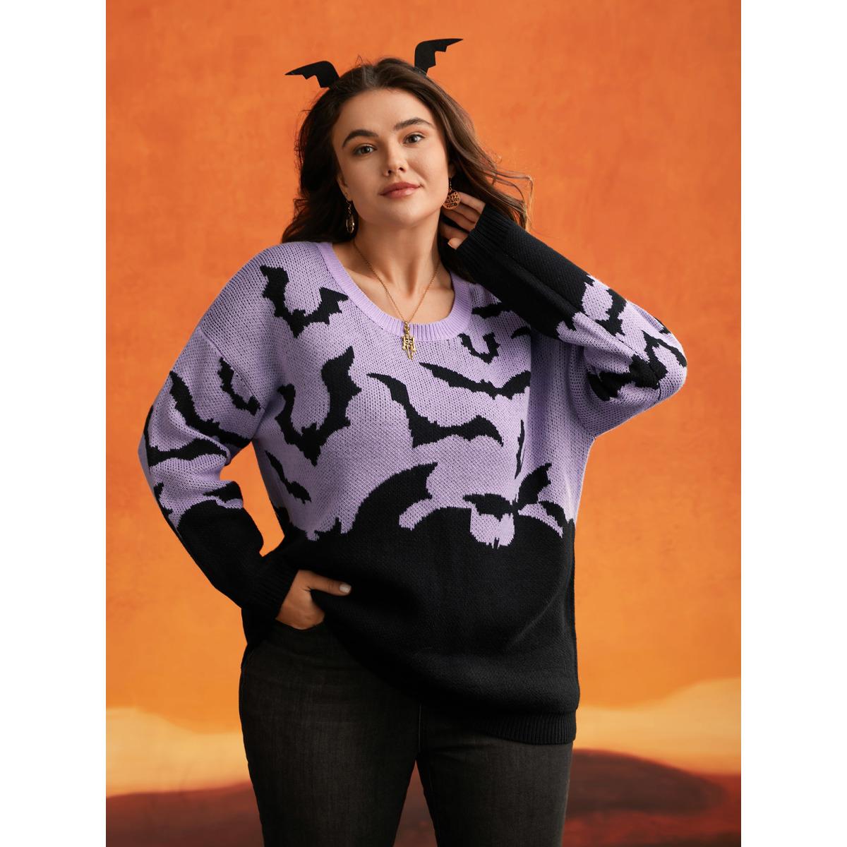 Plus Size Batty Basics Crew Neck Pullover Lilac Women Playful Loose Long Sleeve Round Neck Casual Pullovers BloomChic 12/L