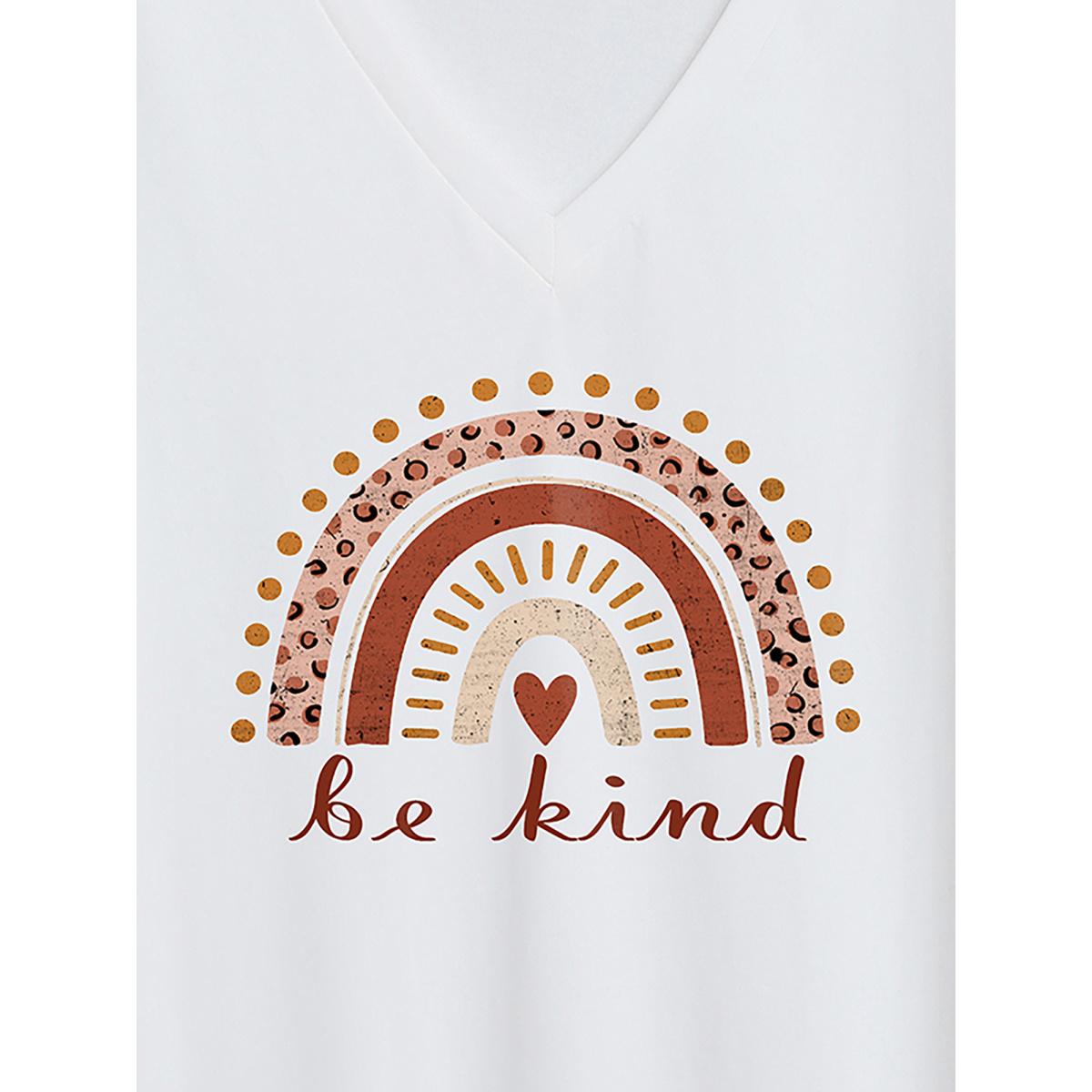 Plus Size Be Kind Deep V-Neck T-Shirt Originalwhite Women Non Rainbow V-neck Everyday-Casual T-shirts BloomChic 14-16/1X