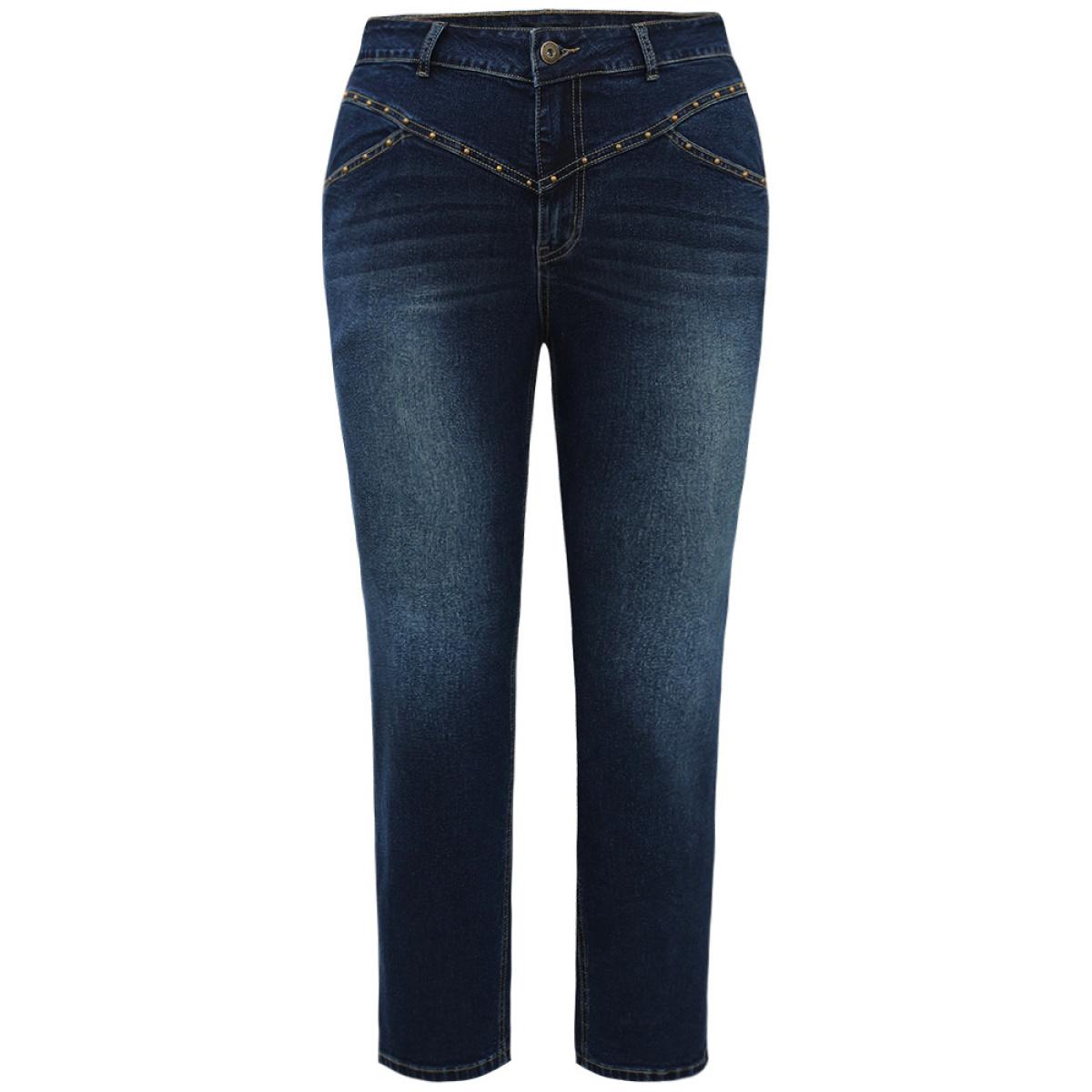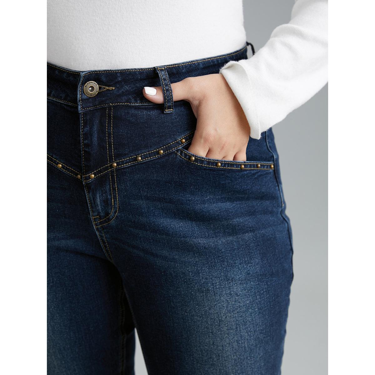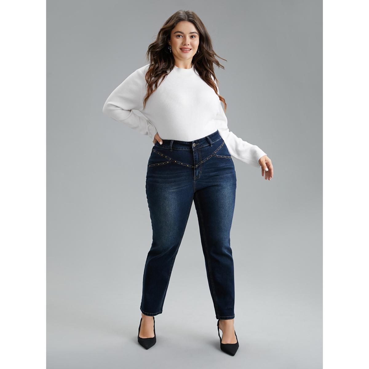 Plus Size Beaded Detail Full Length Pocket Straight Leg Jeans Women DarkBlue Casual Plain Beaded High stretch Pocket Jeans BloomChic 10/M