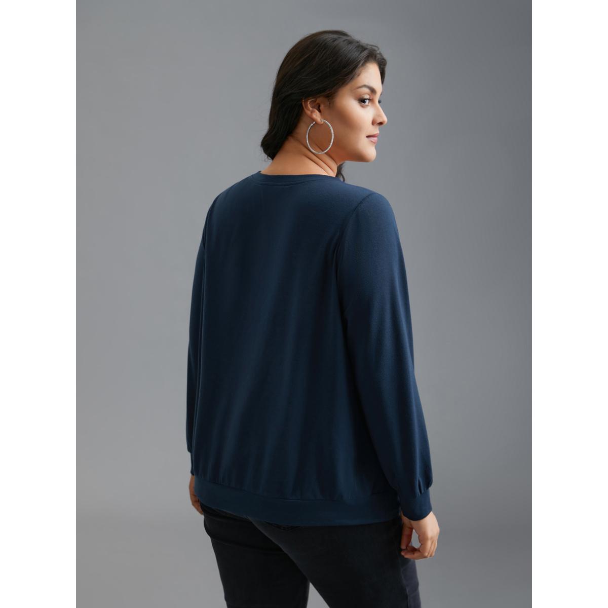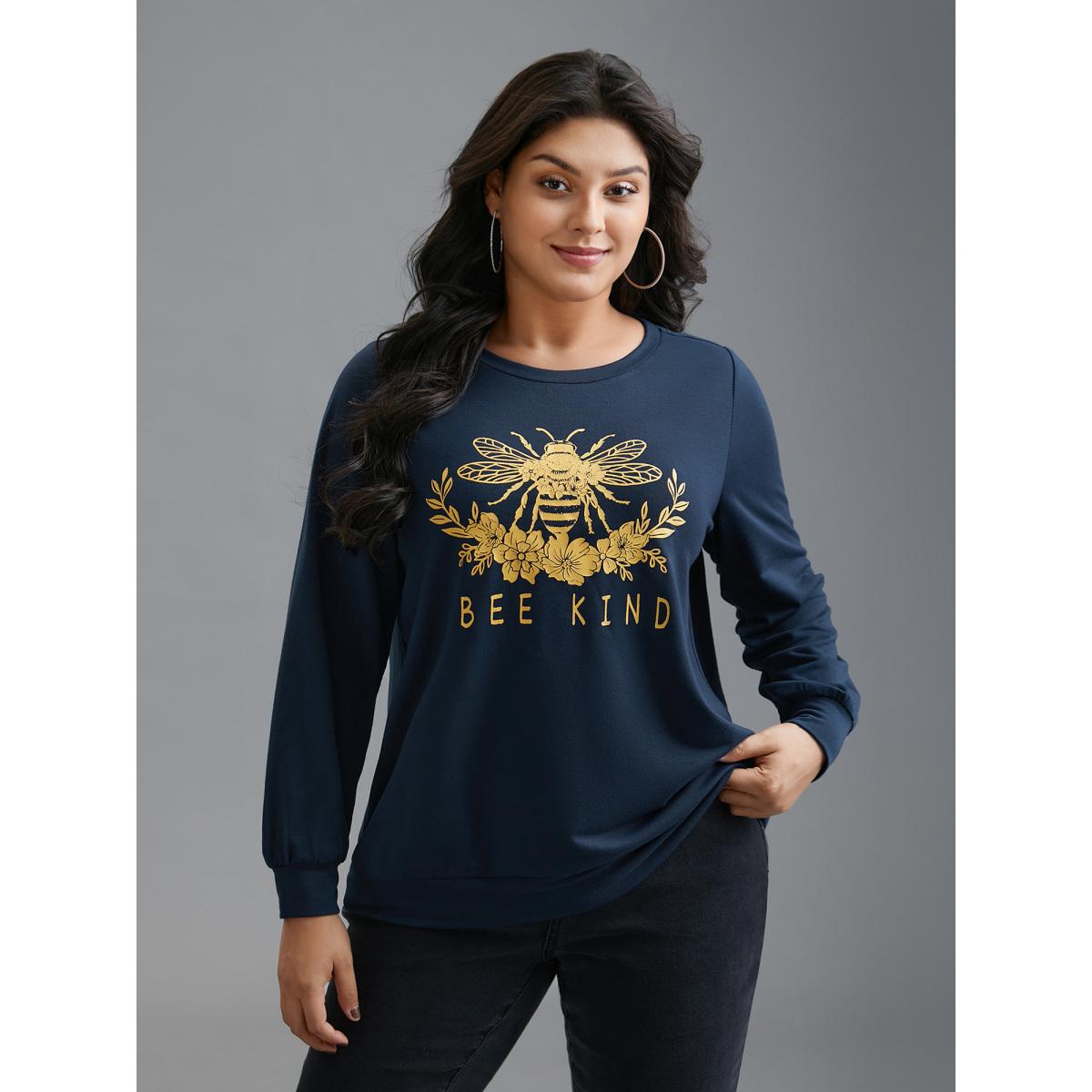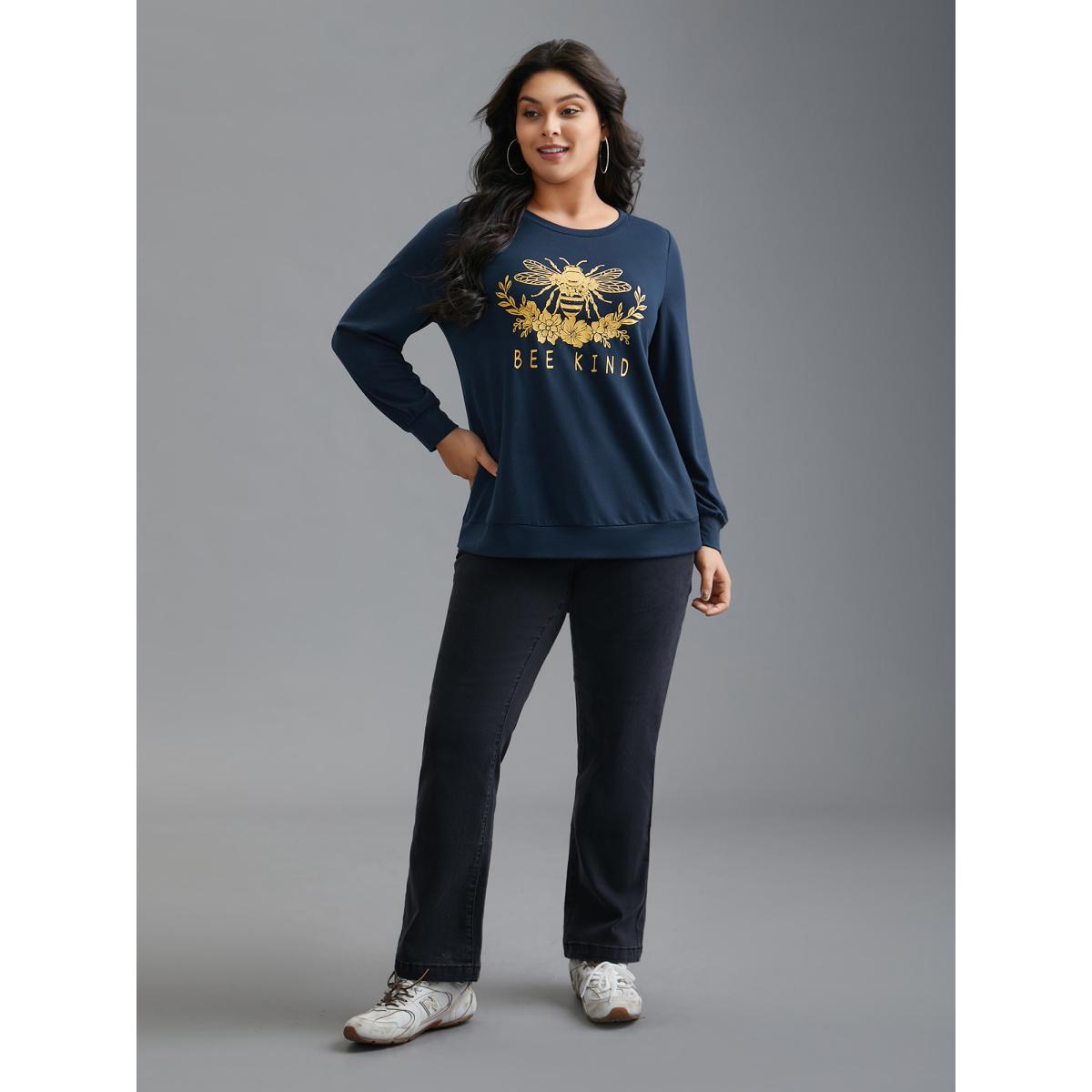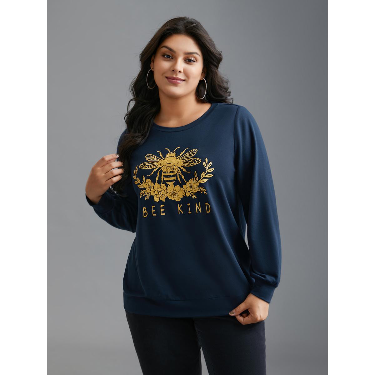 Plus Size Bee Kind Motif Round Neck Sweatshirt Women Midnight Casual Non Round Neck Everyday Sweatshirts BloomChic 10/M
