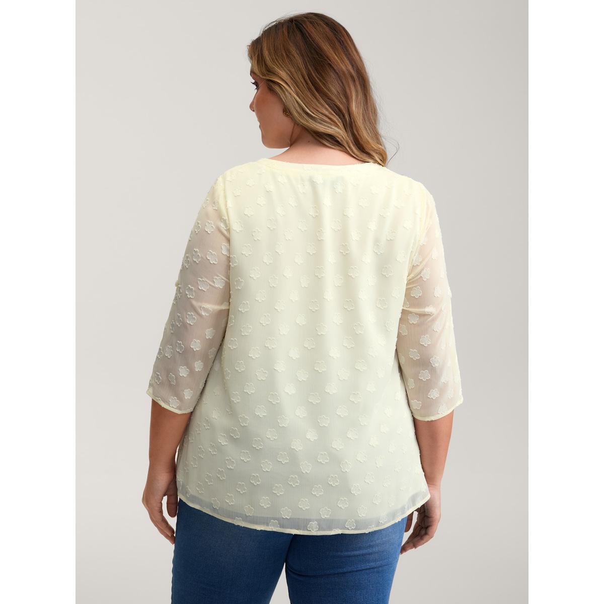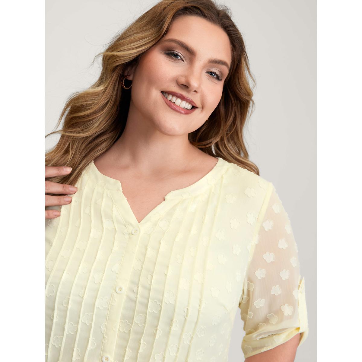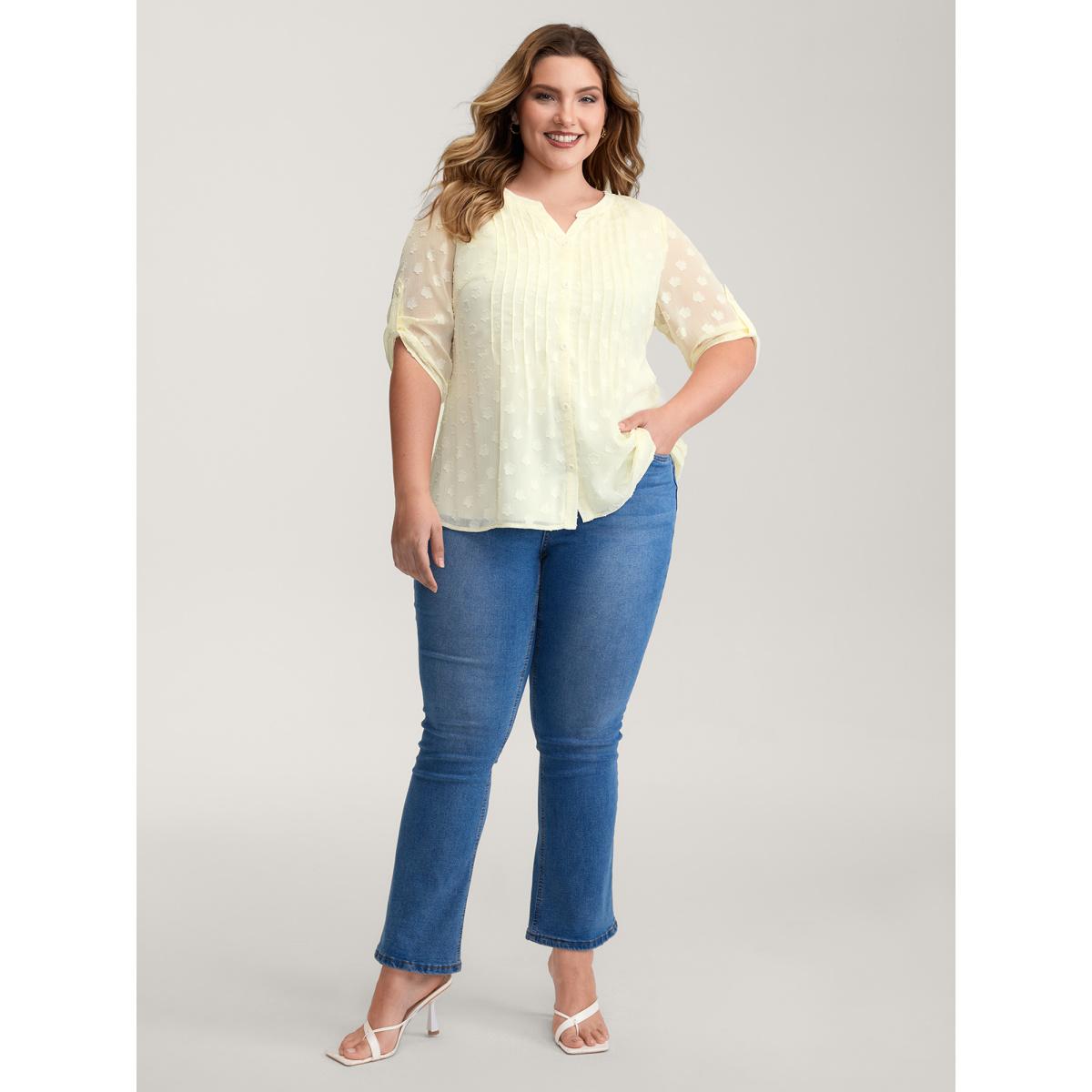 Plus Size Beige Color Contrast Button Placket Blouse Women Romantic Elbow-length sleeve Flat collar with V-notch Elegant Blouses BloomChic 22-24/3X