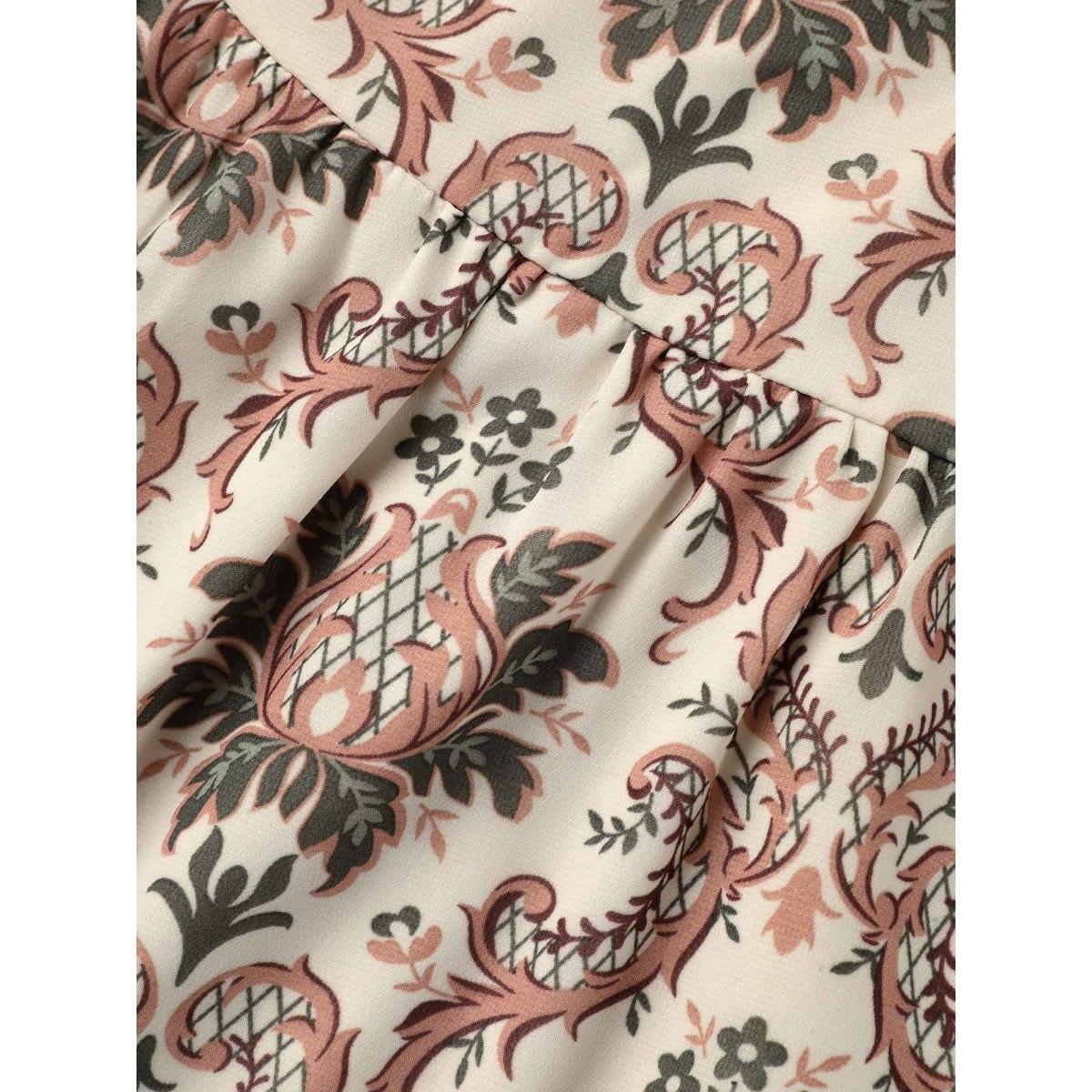 Plus Size Beige Boho Print Pleated Button Detail Tie Neck Blouse Women Resort Elbow-length sleeve Notched collar Vacation Blouses BloomChic 14-16/1X