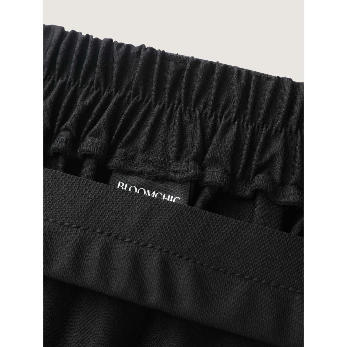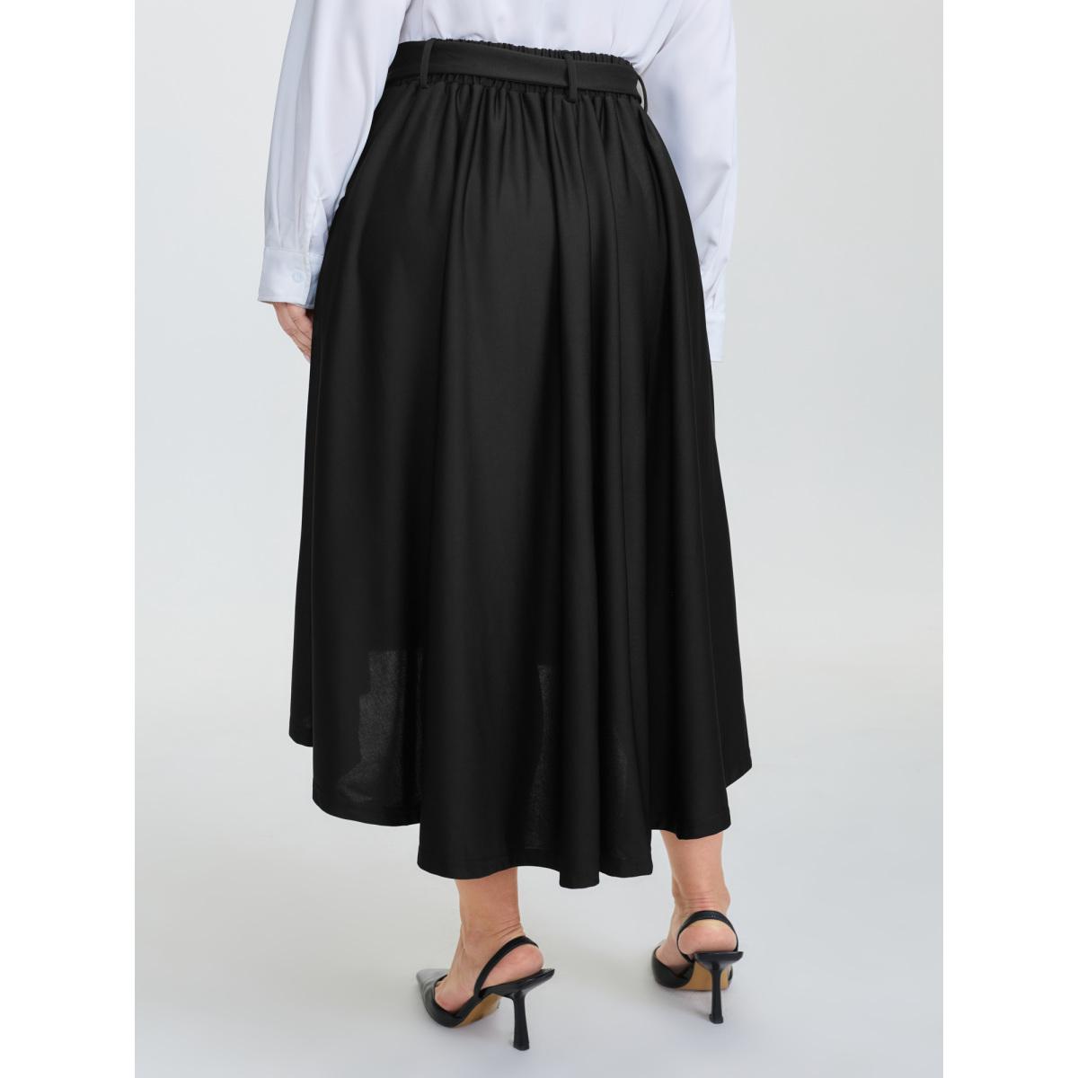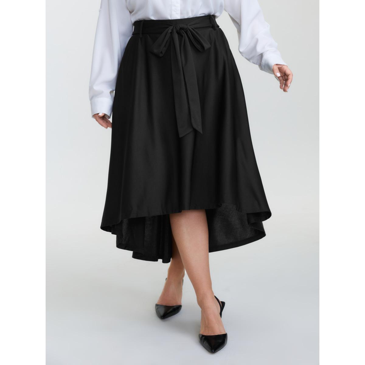 Plus Size Belted Waist High-Low Hem Midi Skirt Women Black Office Tie knot Bodycon Low stretch Slanted pocket Belt Office Skirts BloomChic 22-24/3X