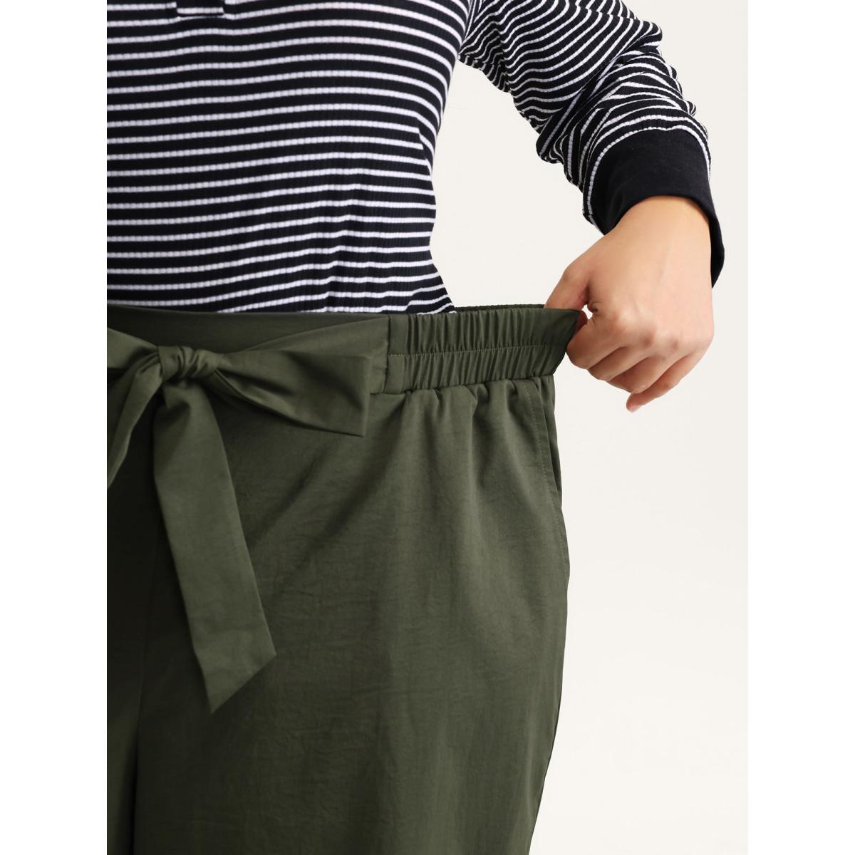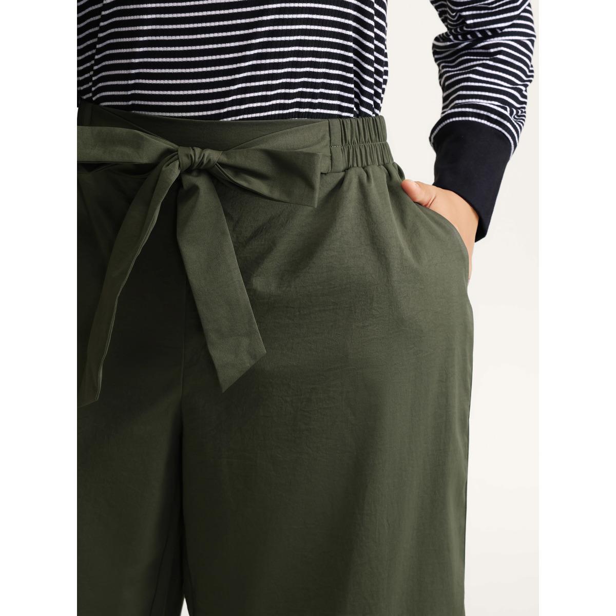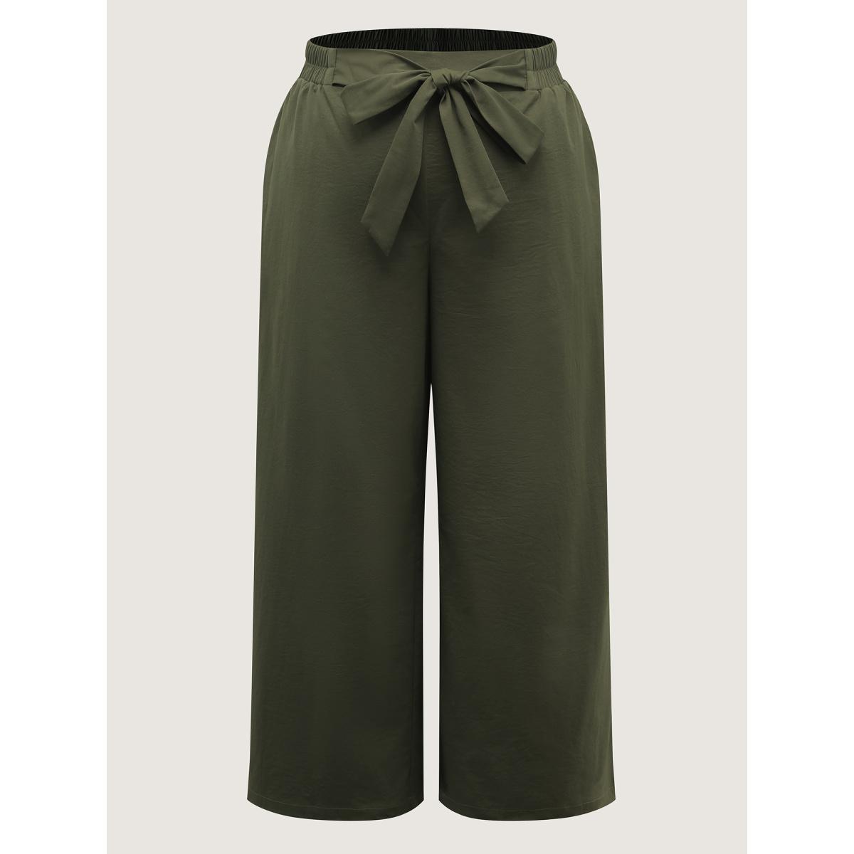 Plus Size Solid Elastic Waist Pocket Ties Pants Women ArmyGreen Casual Straight Leg High Rise Dailywear Pants BloomChic 18-20/2X
