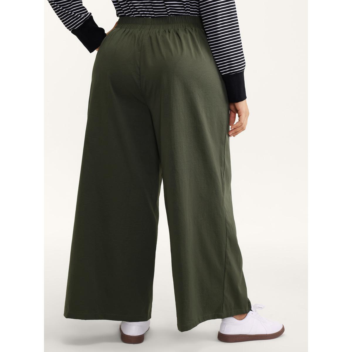 Plus Size Solid Elastic Waist Button Detail Pocket Loose Pants Women ArmyGreen Casual Loose High Rise Office Pants BloomChic 10/M