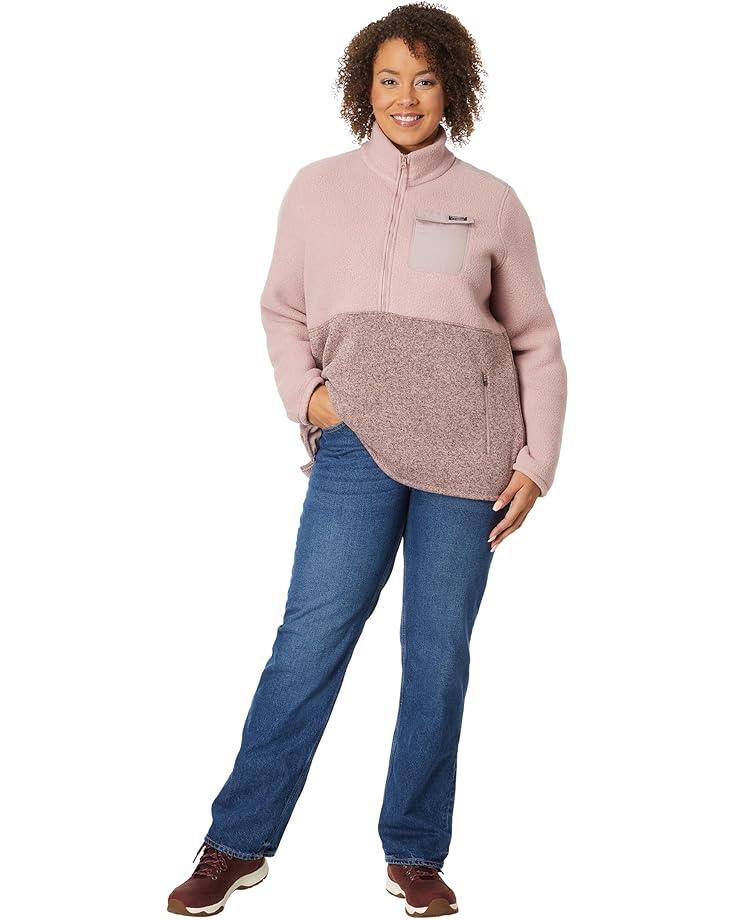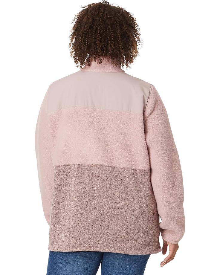 Feel the soft plush texture of the the L.L.Bean™ Plus Size Sweater Fleece Sherpa Hybrid Color-Block every day of the season. It features a stand collar, front quarter zip closure, and rugged stripes. The sweater has long sleeves.